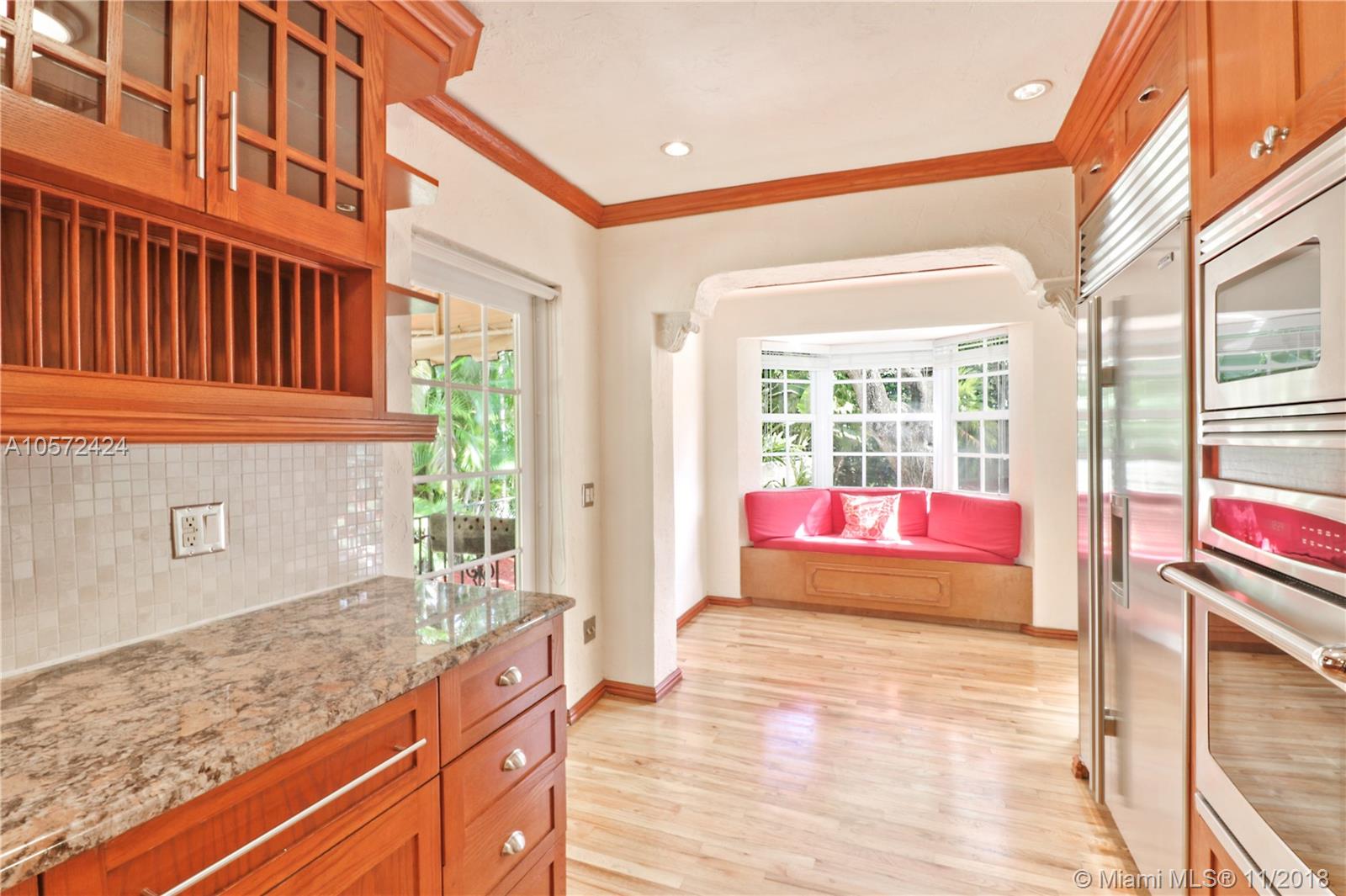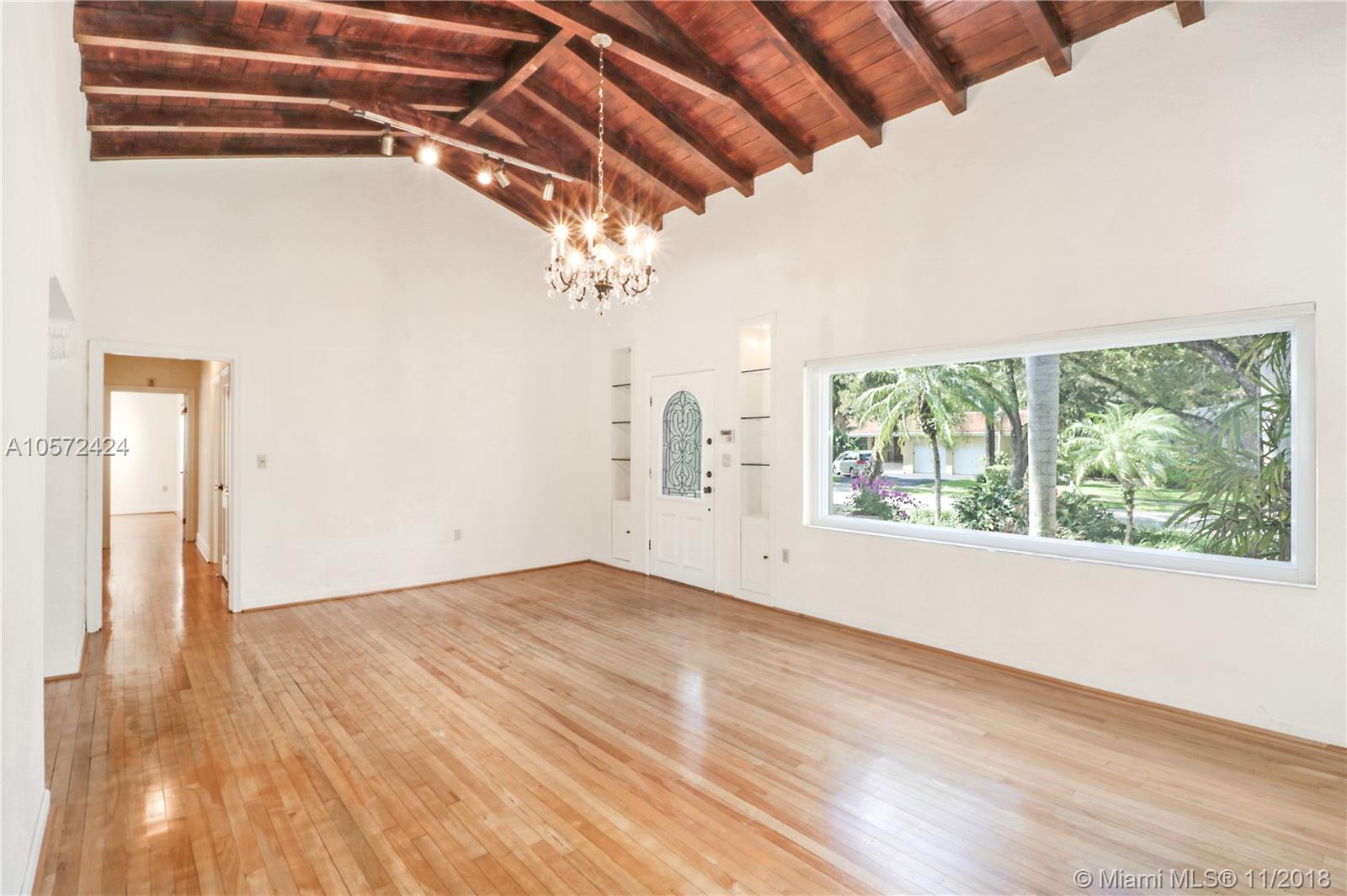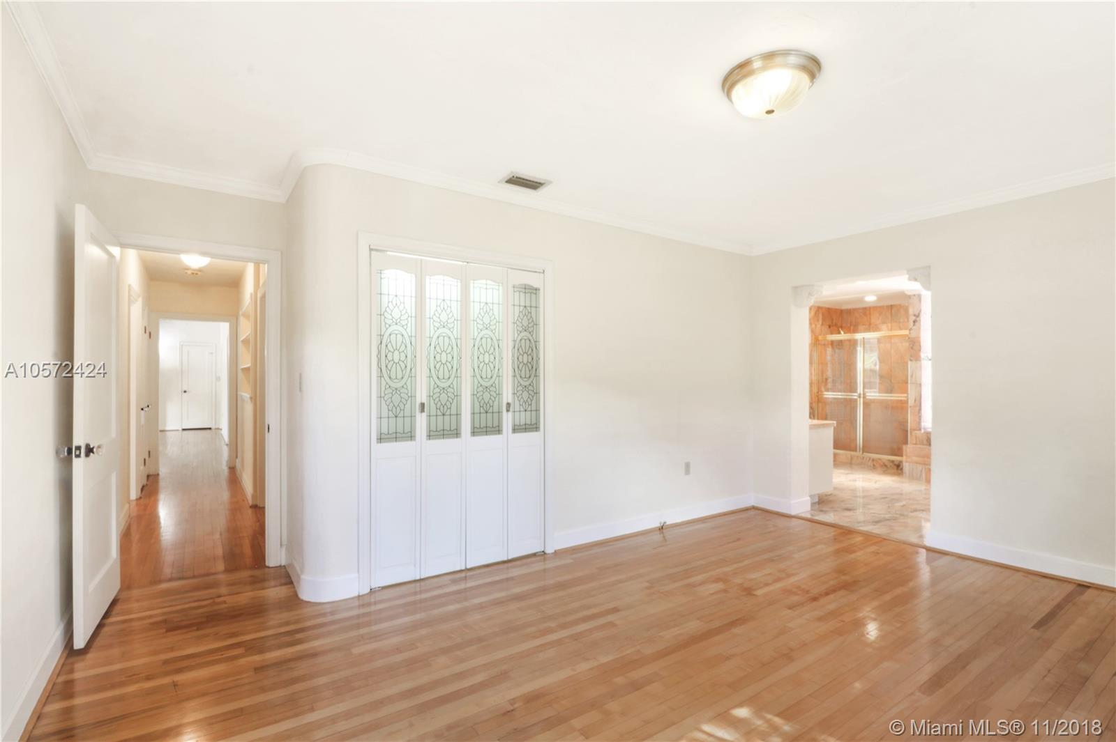 Prime Location! Charming and spacious 3 bed 3 bath pool home with 1 car garage sitting on an oversized Coral Gables lot (13,100 sq ft). Features formal living room with vaulted ceilings and exposed wood beams, adding to the character of this beauty. Formal dining and family room, a beautiful eat-in kitchen nook overlooking the large backyard and patio areas leading out to a good size salt-water pool; perfect for entertaining! Impact windows throughout give natural bright light, good size bedrooms w/ walk-in closet in master, and the wooden floors further accentuate the Coral Gables Charm. Conveniently located less than a mile away from The Biltmore Hotel and the newly refined Streetscape of Miracle Mile, for all your fine dining and shopping/entertaining experience. Truly a must see.