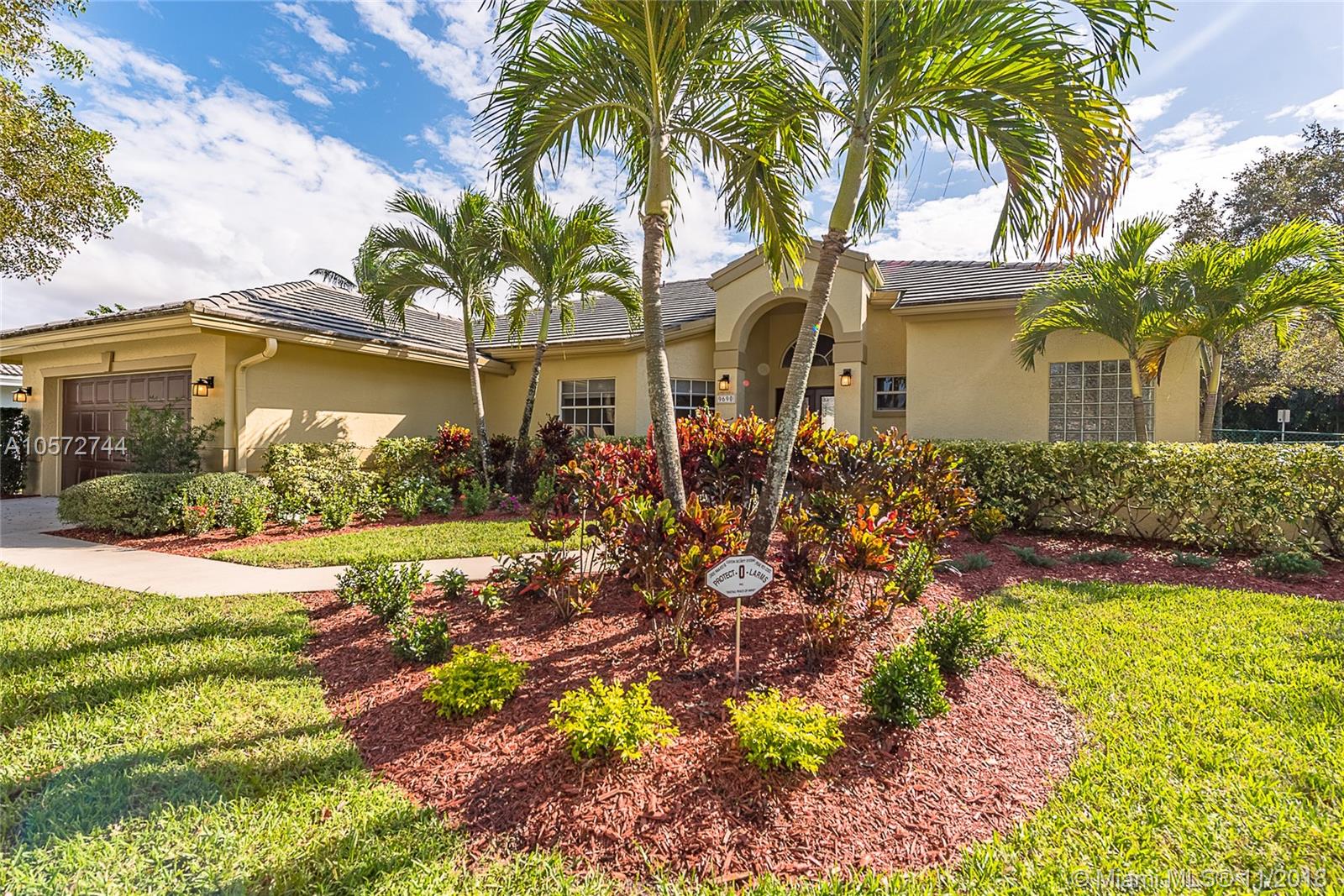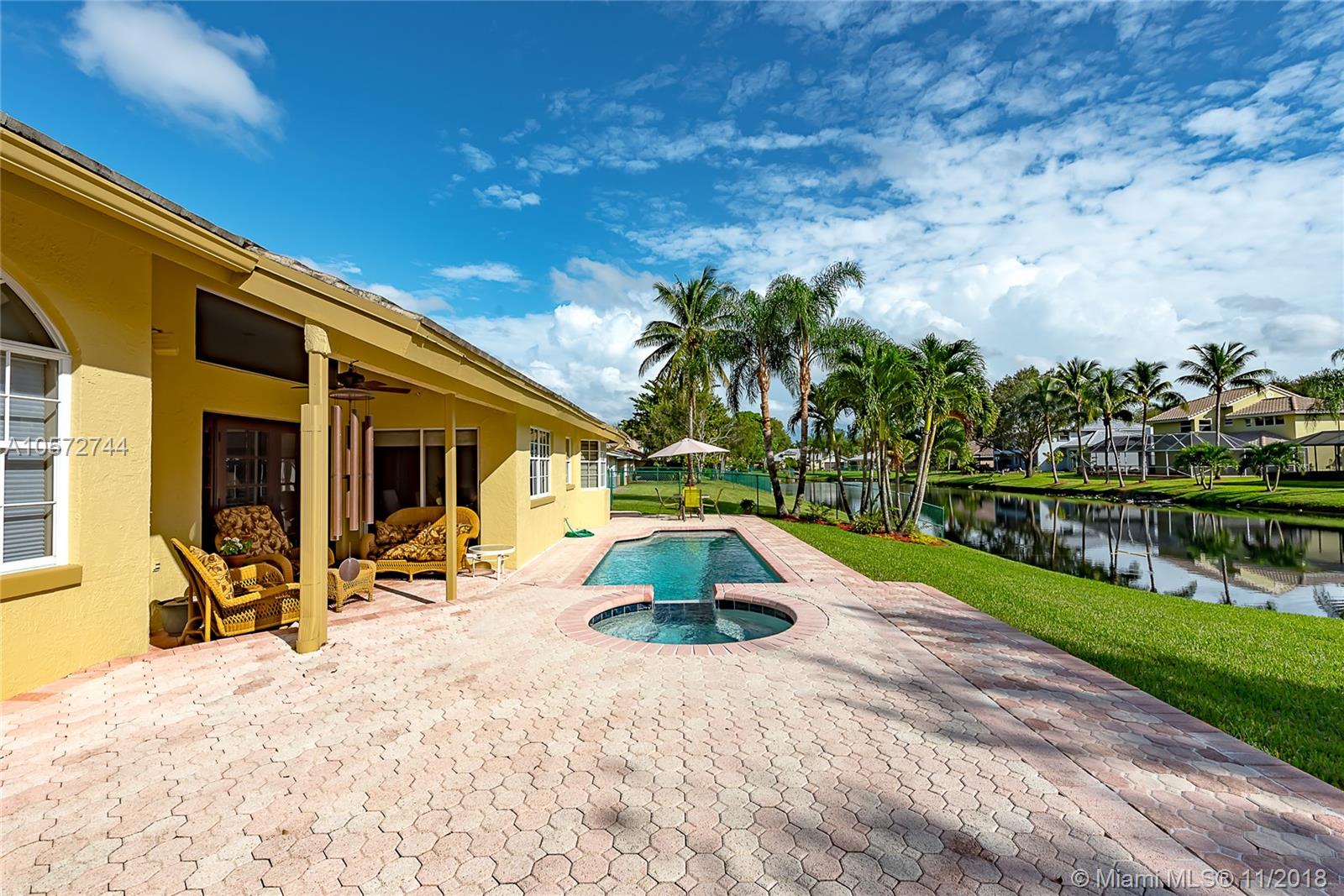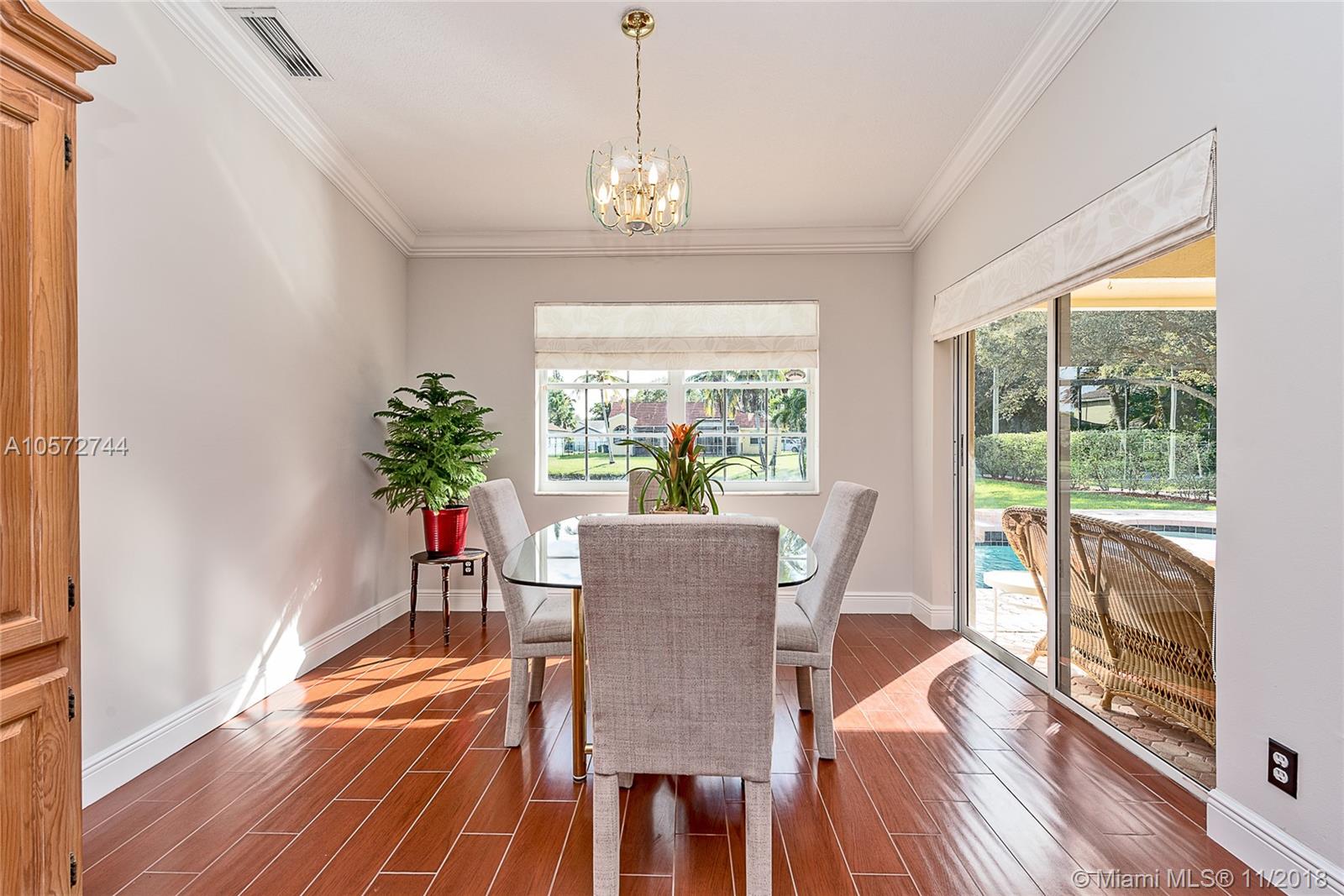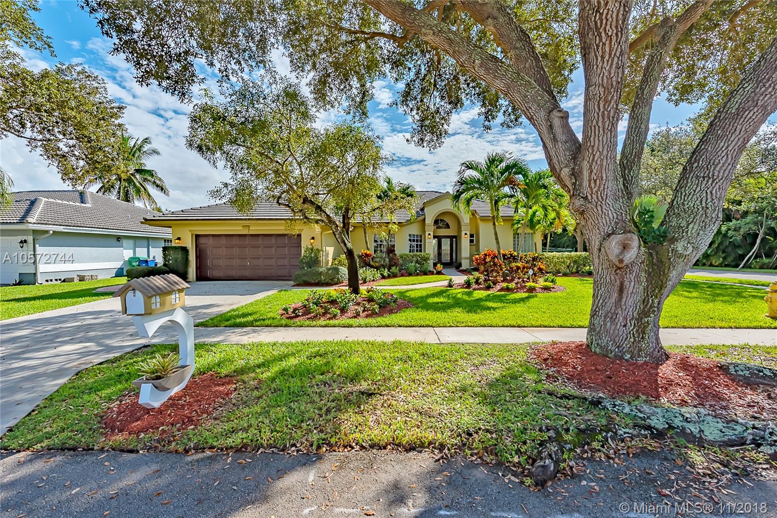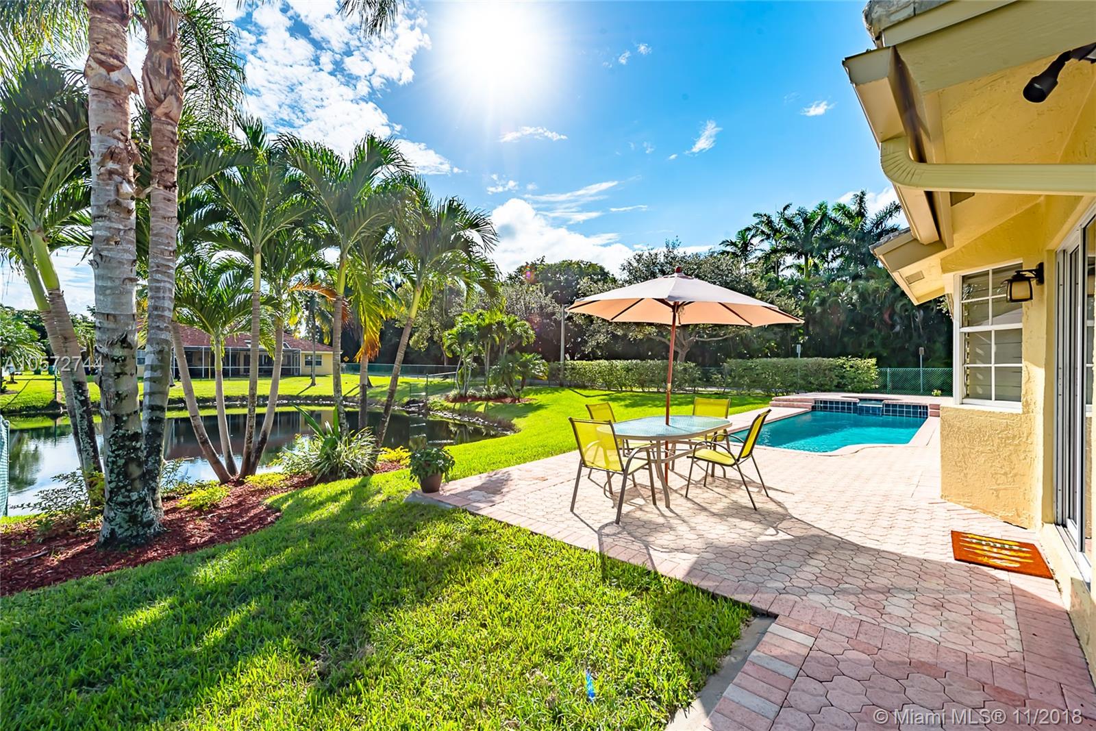 Rare Find!One story pool home in the heart of Cooper City.This 4 Bedrooms 2.5 Bathroom home Located in the small community of Stirling Village on a quiet no-through street. Beautiful corner lot with lovely pool/patio and spacious yard on a peaceful lake. New ceramic wood-like tile in main living areas and master suite, updated master bath with wood cabinets, granite counters, separate shower and roman tub. Floor plan features a split bedroom design, formal living-dining area, kitchen opens to family room, Large kitchen for easy entertaining. You will love the new Samsung 4 drawer black stainless steel refrigerator! Newer top of the line window treatments. All closets have built ins for great storage. Interior laundry room with sink. Pool diamond bright a year ago. A rated schools.
