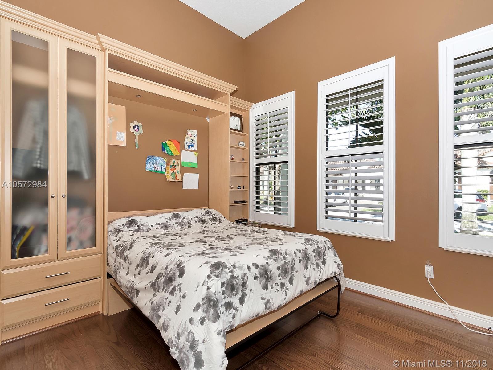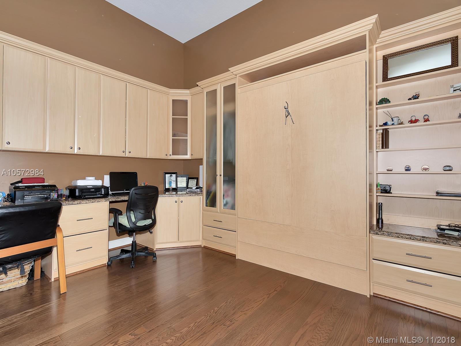 NICELY UPGRADED 4/3 PLUS OFFICE WITH POOL ON OVERSIZED LAKEFRONT LOT. FEATURES INCLUDE IMPACT GLASS WINDOWS / DOORS * LARGE GOURMET KITCHEN W/ 42" CABINETS, GRANITE AND STAINLESS APPLIANCES * 24" PORCELAIN FLOOR IN MAIN LIVING AREA * WOOD FLOORS & CARPET IN BEDROOMS * ALL CLOSETS HAVE BUILT-IN SHELVING * BUILT-IN BUTLER PANTRY W/ WINE RACK * 2-ZONE WINE REFRIGERATOR * RECESSED LIGHTING THRU-OUT * FRONT BEDROOM HAS BUILT IN DESK, CABINETS AND MURPHY BED * MARBLE COUNTER IN ALL BATHROOMS. LOW HOA FEE INCLUDES RESORT STYLE CLUBHOUSE, POOL, TENNIS, SPLASH PARK FOR KIDS, BASKETBALL, FITNESS CENTER, AND DOG PARK. A+ SCHOOLS. HURRY!