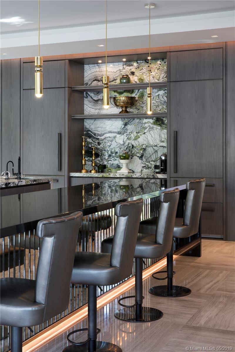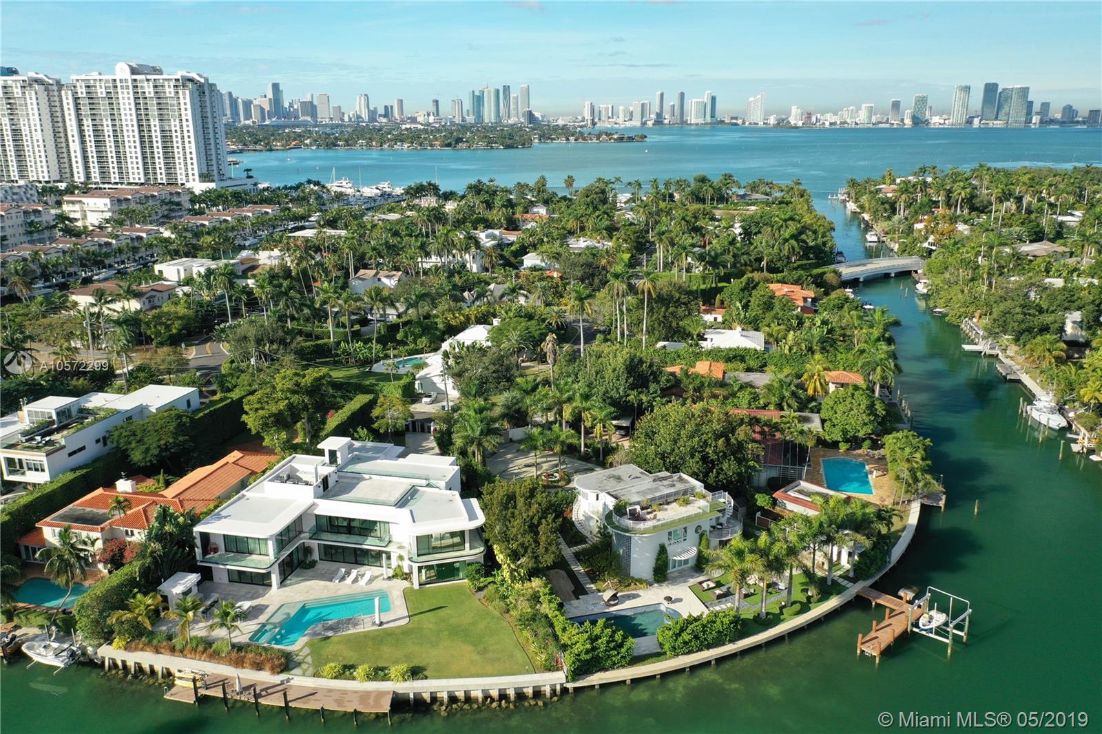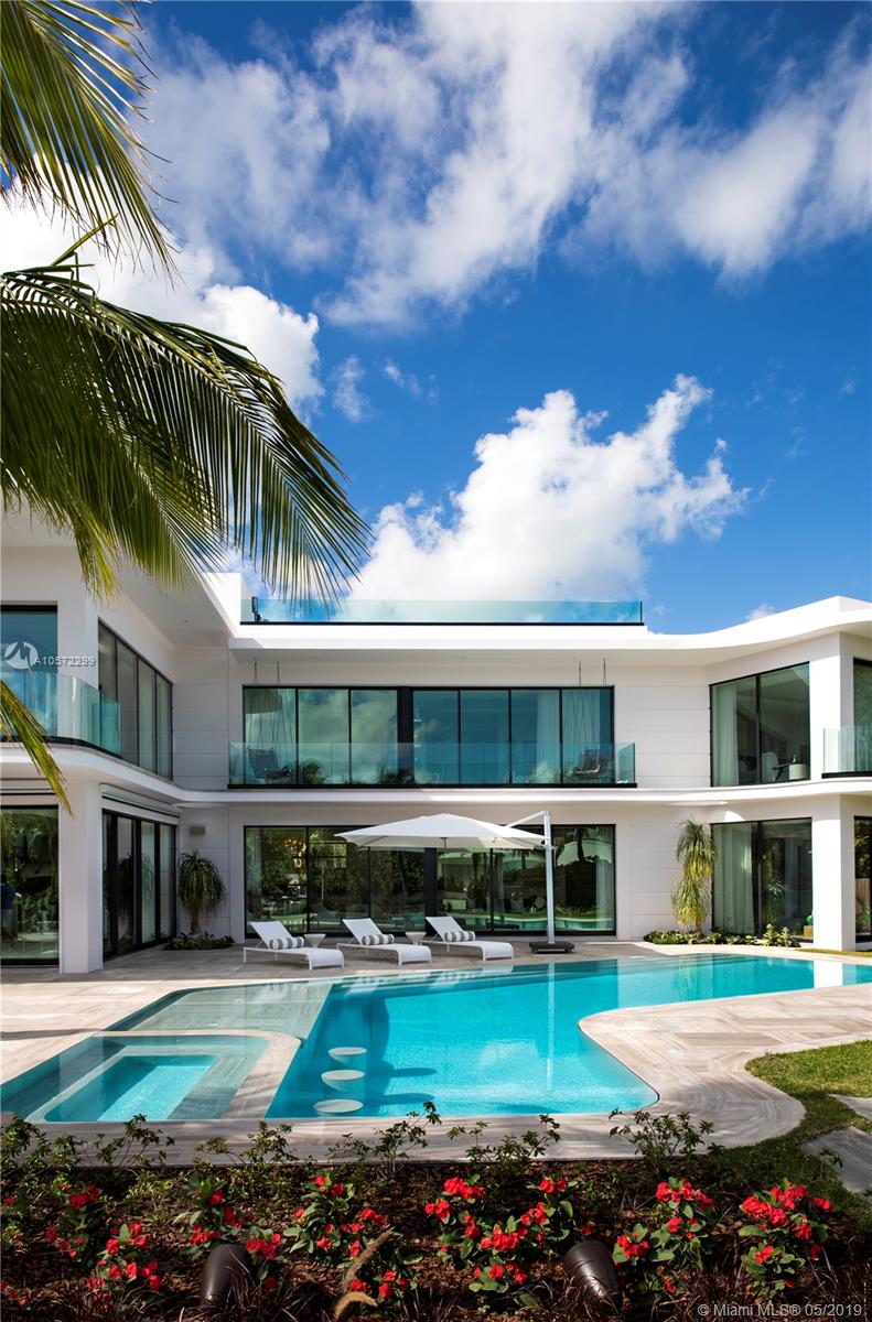A Design Story. Perfectly located, offering safety & privacy on an exclusive island situated just steps away from top shops & restaurants. An elegant & modern masterpiece with its dynamic use of bespoke materials and close attention to detail. As you step through the gates of this new property the view unveils a stunning asymmetrical facade, oversized windows & a unique Art Deco inspired design. Surrounded by lush landscaping, this home is nestled on a large lot & offers 150ft of premium waterfront. The high quality craftsmanship is seen throughout the entire home from its innovative curved glass to its silk georgette marble flooring with inlay bronze metalwork. Experience indoor-outdoor living at its finest with sliding doors that open to an expansive pool deck overlooking the water.