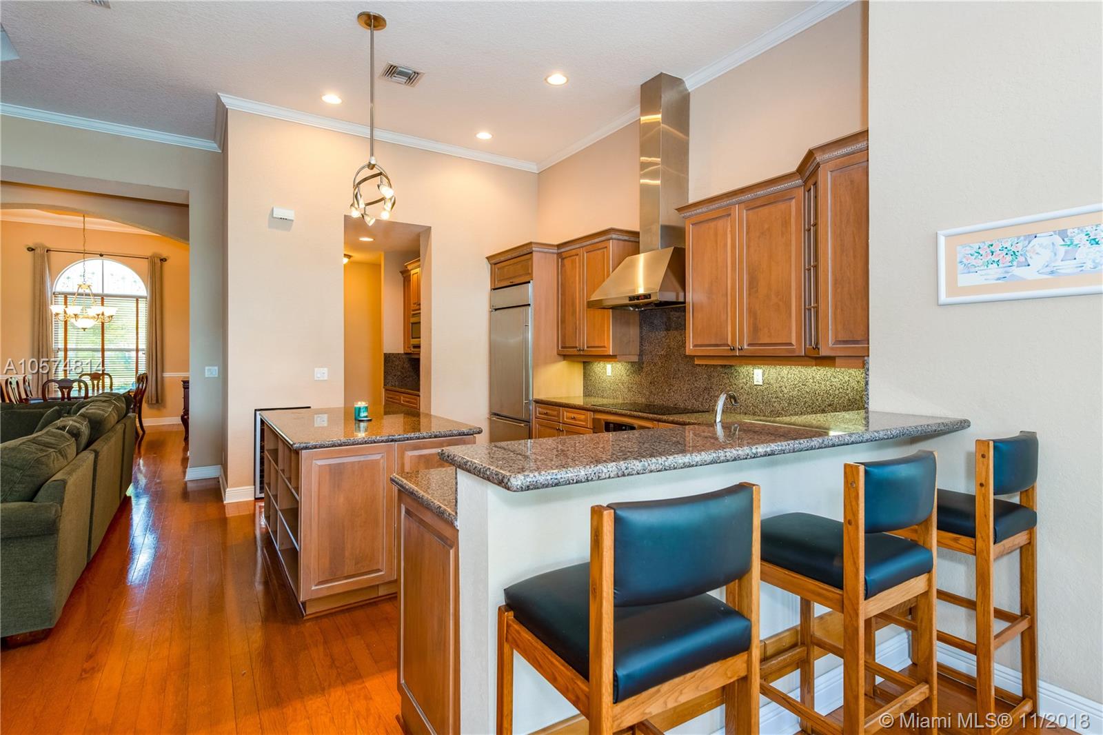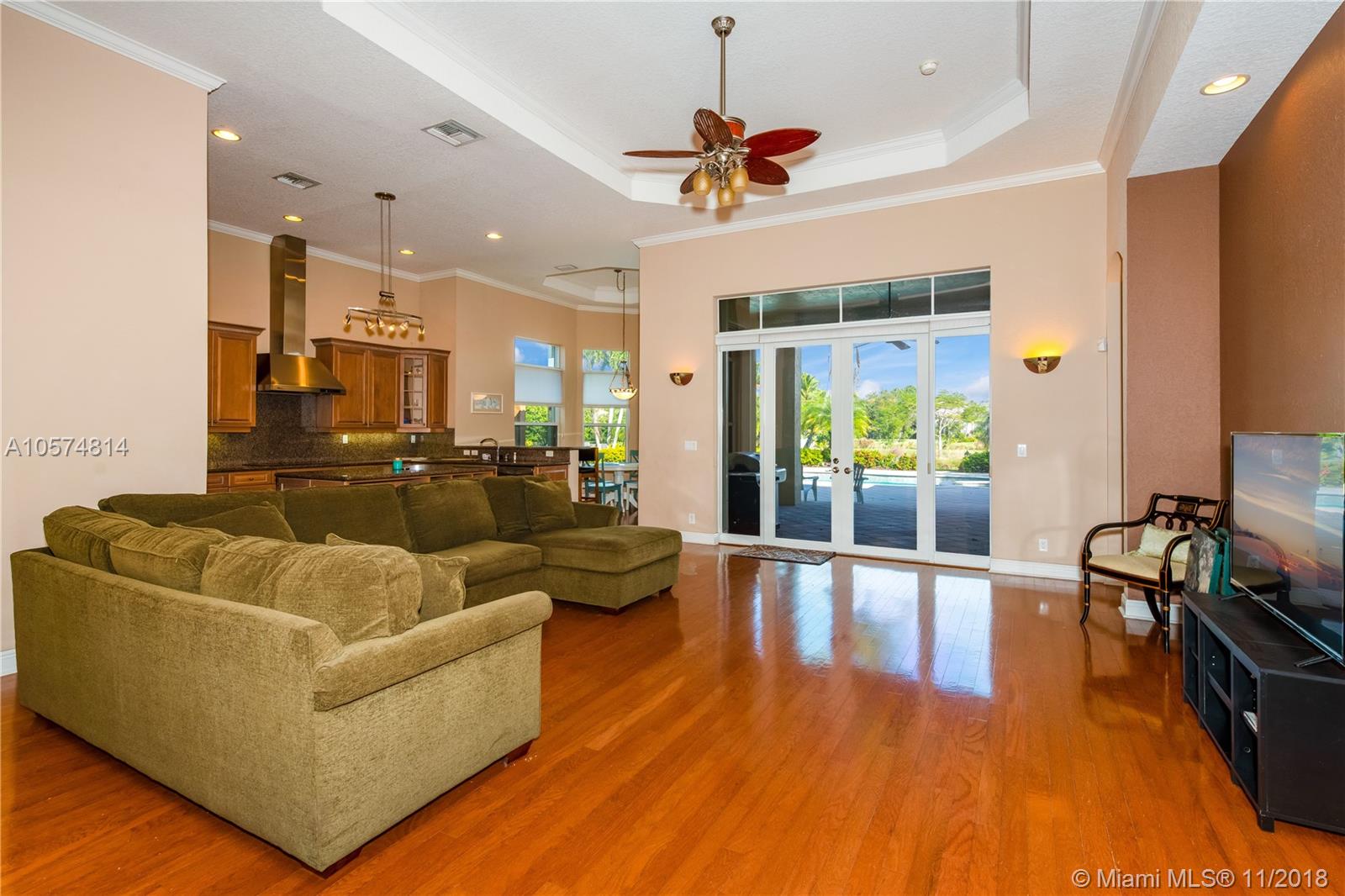 Perfectly priced by this motivated seller. Large 5 bedroom home in Davie's well established gated community of Saddlebrook. Open concept with HUGE great room with BIG open kitchen. Split bedrooms. Gorgeous kitchen with all the extras. Grand master retreat with sitting area and sizable private bath. Beautiful hard wood flooring. 2 NEW AC'S. Exterior features saltwater pool with spa. Covered patio and pergola to enjoy the beautiful sunsets on the pristine lake. Builder's acre with plenty of room to roam. Hurricane protection. Wonderful schools and easy access to shopping and highways.