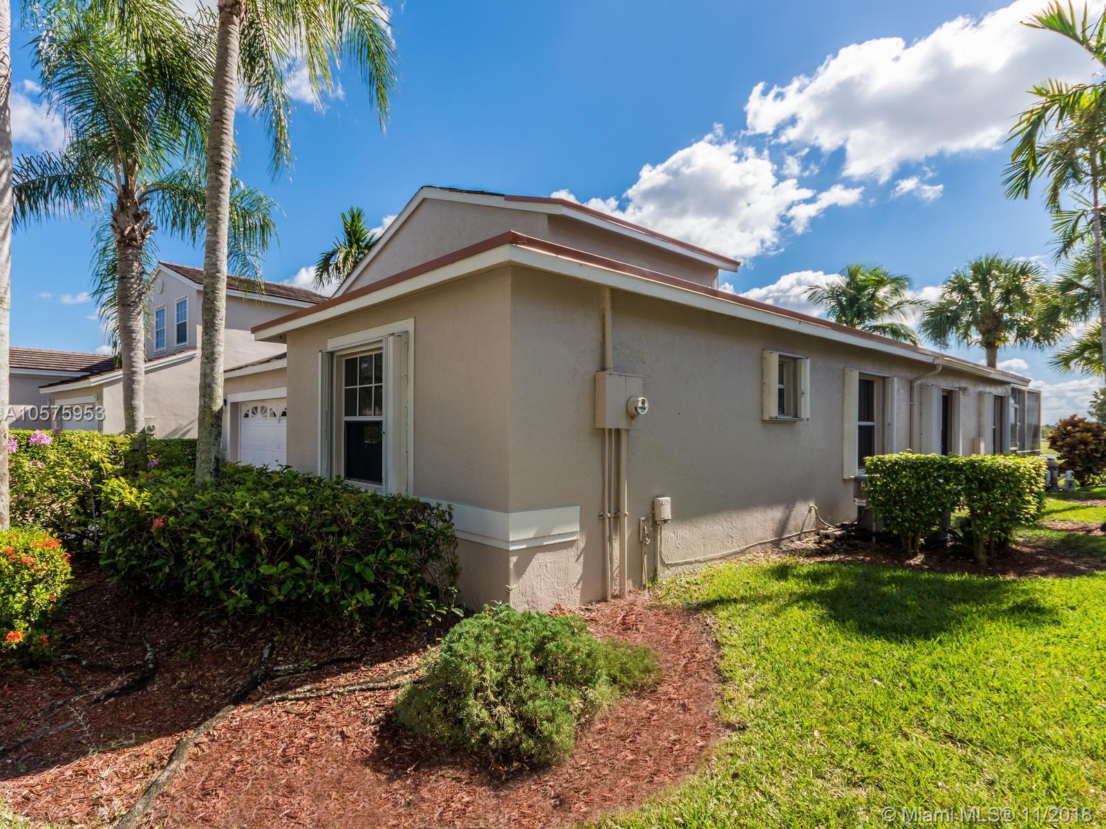 Come to fall in love with this SPECTACULAR HOME with an amazing view!! Impressive Gourmet modern white kitchen with granite top, tastefully designed. SS appliances with an Island open to the family room. Stone walls with wine racks and a gorgeous chandelier. Volume ceilings, new wood tile throughout, Accordion Shutters 3 Bds. with 2 Bathrooms. Master bathroom has dual sinks, tub & shower. "New Roof" A screen terrace with a Jacuzzi overlooking the serene lake and Golf Course. The house is located in the subdivision "Encino" of Grand Palms, Gated community with lots of amenities. The HOA covers Alarm, Cable, community Pool and all the common areas. IDENTICAL HOME LOCATED AT 1529 SW 151 AV CLOSED IN 9/18/2018 FOR $ 430,000