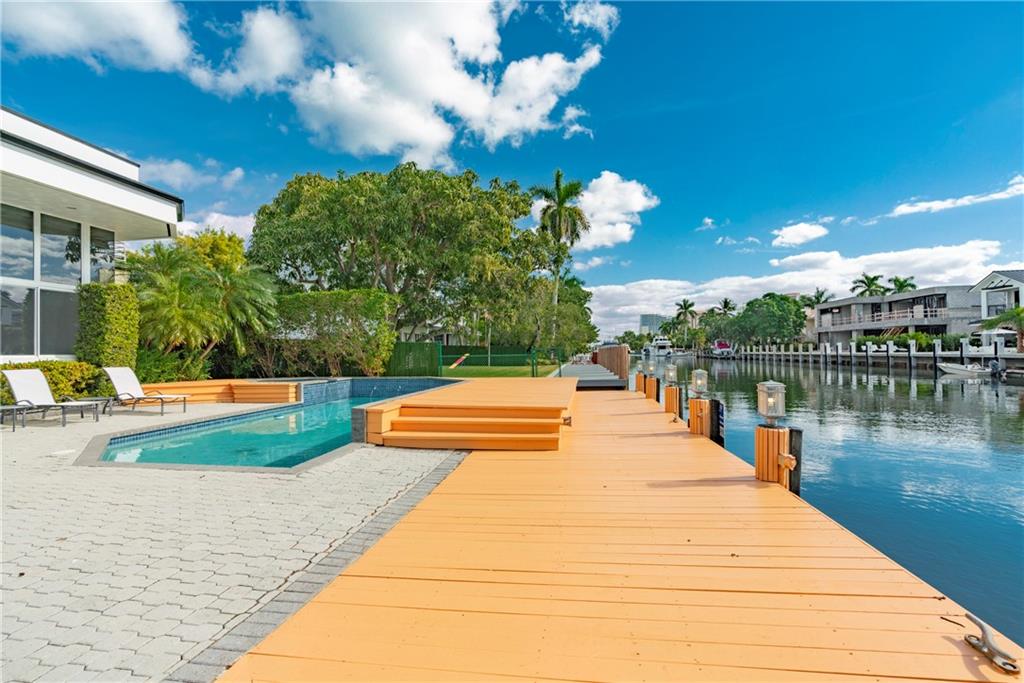 Gorgeous contemporary home w/fabulous finishes, details & features. 76' of deep water frontage, newer dock, just moments by boat to the Intracoastal. Bright & open floor plan, high ceilings, floor to ceiling windows w/water views & wet bar make this wonderful home perfect for entertaining! Gourmet kitchen that opens to the family room, dining room. Staff quarters. Granite & marble floors. Air conditioned garage. Lush tropical landscaping & outdoor lighting. Whole house 45kw generator with aluminum cover. Outstanding Las Olas/Seven Isles location ~ guard house with patrol. Walking distance to the beach, dining & nightlife.