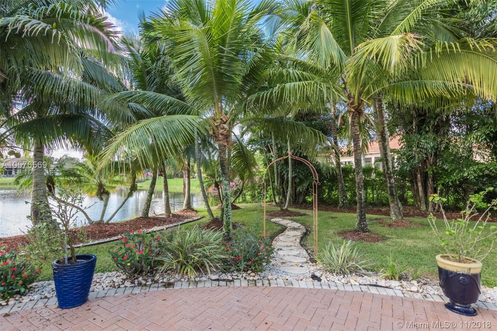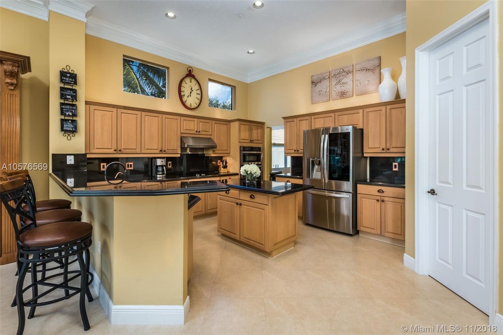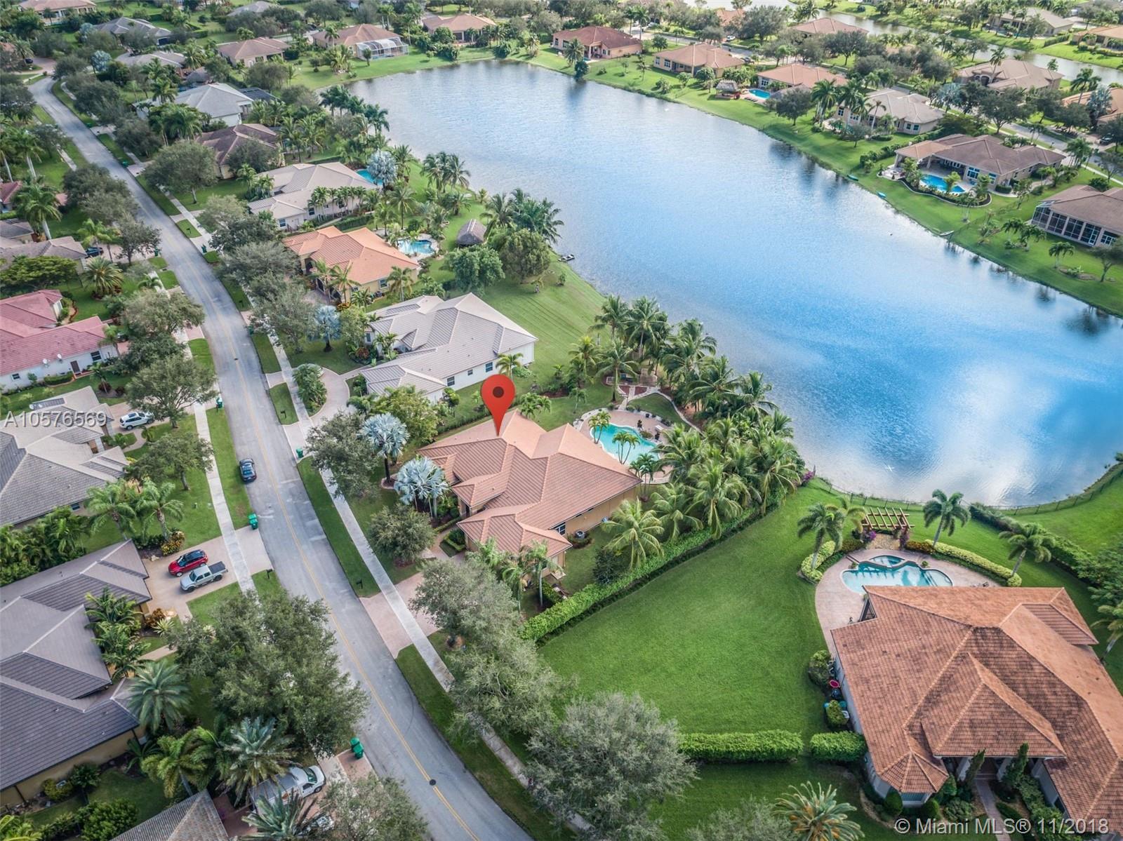 Imagination Farms is a west Davie outstanding community. On the NE corner of I75 and Griffin Rd, major highway access is a huge bonus. "A retreat in the burbs" is situated on a 43,308sf waterfront lot. Imagine your family enjoying this amazing space. Inside, find updates like elegant crown and chair rail moldings, oversized baseboards, neutral porcelain tile and real wood flooring, granite tops/backsplash, newer stainless appliances, cabinetry in pantry and a master closet. Salt system pool with new pump and waterfall. Also alarm, water filtration system, wall unit, all ceiling fans, light fixtures, garage openers and pool equipment stay. Natural light is abundant. Just feels like HOME. Office furniture is negotiable. Take a moment, view the video and photos of this inviting home.
