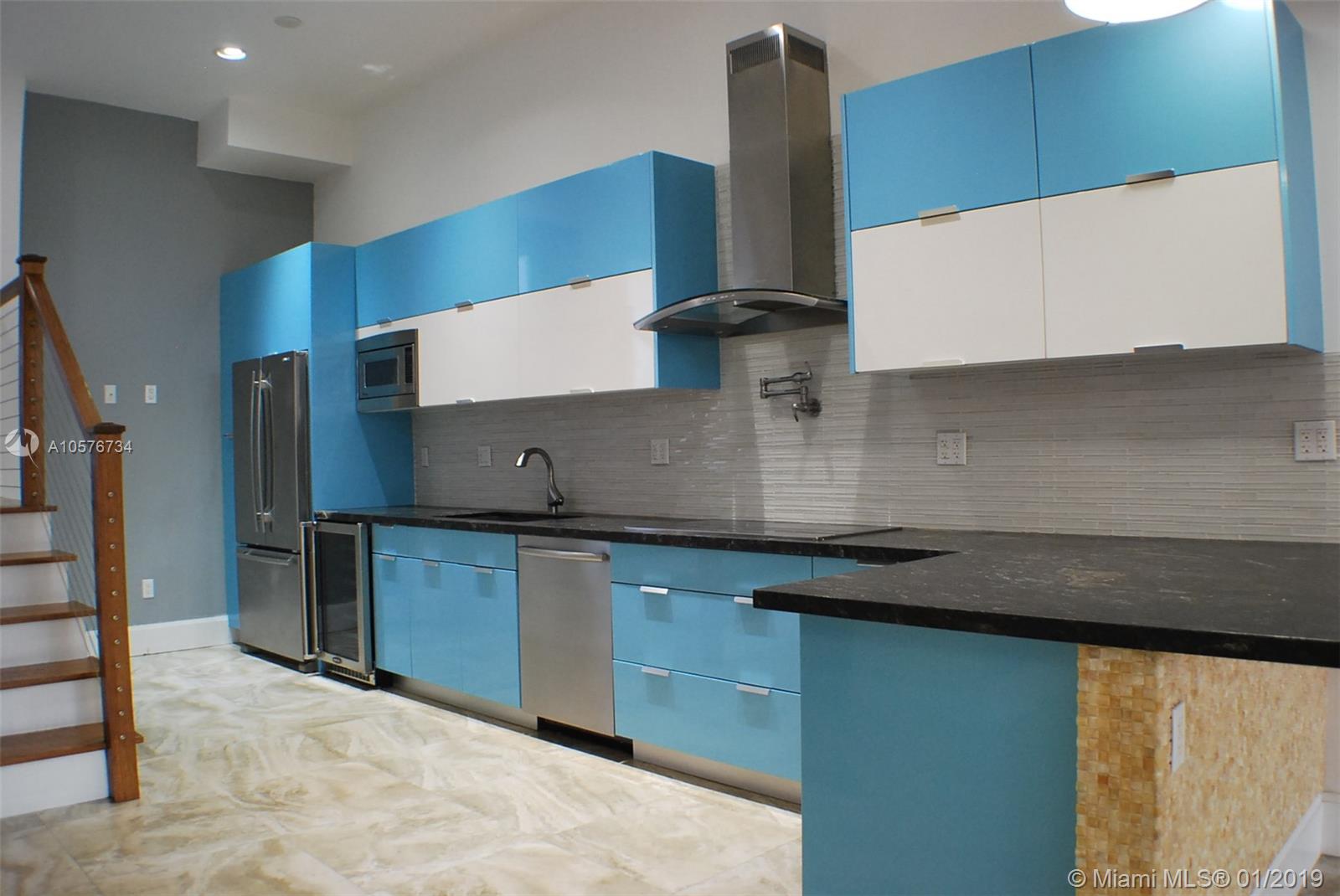 UNIQUE PROPERTY - WATERFRONT 3/3 with garage and 30' dock space in front of the unit. Updated with modern renovation - Multi-level open living space, Italian designed Kitchen. 2/2 top floor with balcony off master suite. New Master bath. 1/1 main level. Impact windows throughout. Open deck with retractable awning with dock access. No fixed bridges to ocean. Short Walk to Arch Creek East Environmental Preserve.