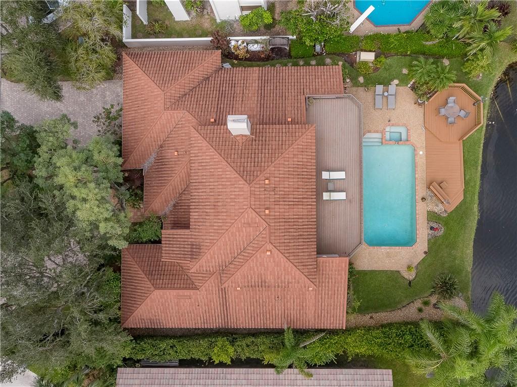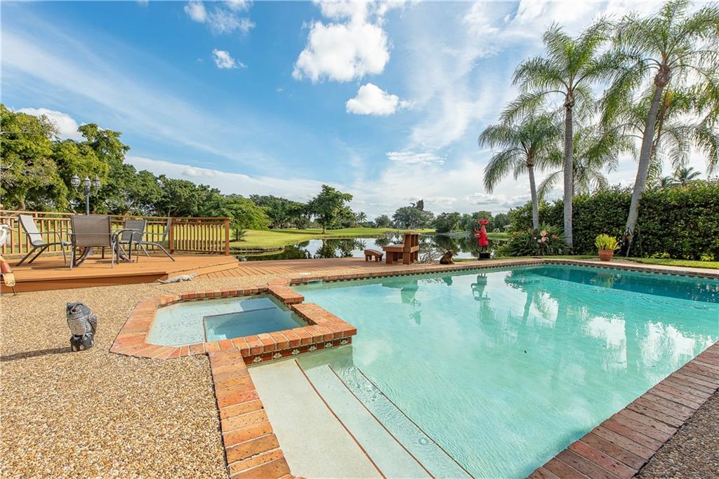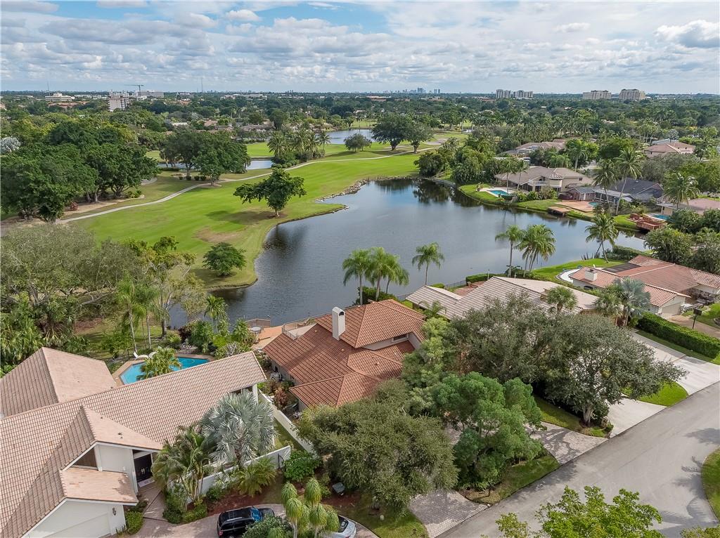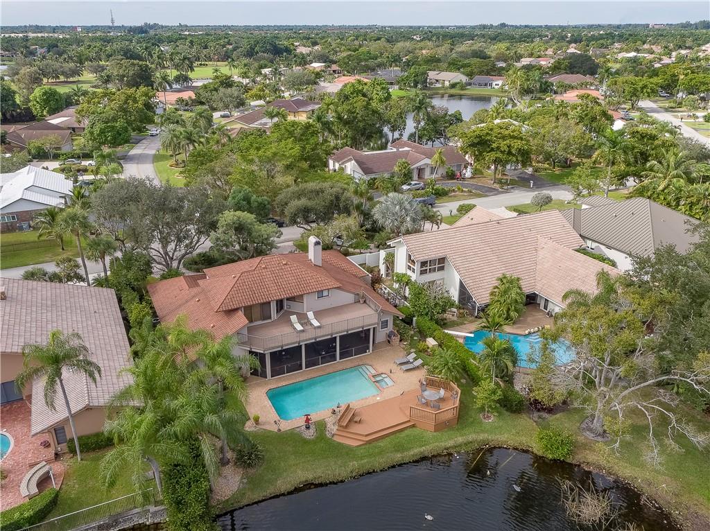 Breathtaking Golf and Sparkling lake vistas! Original owner has updated and maintained this Jacaranda Country Club Gem with a remodeled kitchen, wonderful second floor master retreat featuring wood floors, large newer spa bath,huge walk-in closet and an outstanding deck to star gaze and enjoy the forever views! 3 a/c's,wood burning fireplace,auto generator and accordion hurricane shutters. Home office w/built-ins privately situated off of family room. Great backyard with raised deck area, large patio plus spacious screened room off the living room, kitchen/breakfast area and family room. Mature oak trees canopy over the "paver" circular driveway welcoming you to the warmth and charm of this spectacular home!
