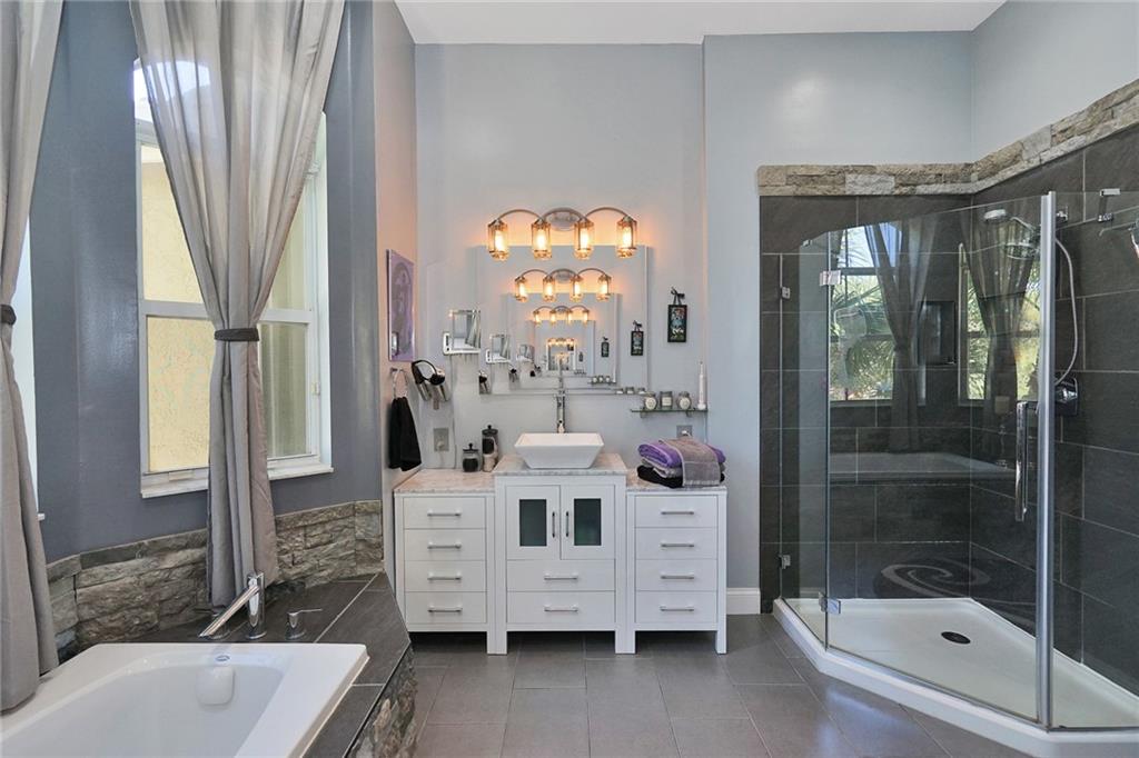 MAGAZINE BEAUTIFUL! FROM OUR DESIGNER COLLECTION! Totally remodeled and magnificent from top to bottom. 5 bedroom 2.5 baths of glam! The kitchen is a work of art, cabinets, built in wine bottle and glass holder built in, under and over counter lighting, granite, GE Profile appliances, island plus walk in pantry. All open to family room. Remodeled bathrooms, all done in today's colors. Gorgeous ceramic first floor, steps and second floor laminate. A/C 2 yrs. Master suite, his/her sink/whirlpool tub and separate shower. Large secondary bedrooms. Your own private back yard resort! Privacy fence, 7-8 person Spa, Fountain, Pergola, Raised flower beds, Fire bowl, Tiki Lamps. Covered patio w/grill area. Security system with cameras/monitor. 3 car driveway. Dream home in perfect condition.