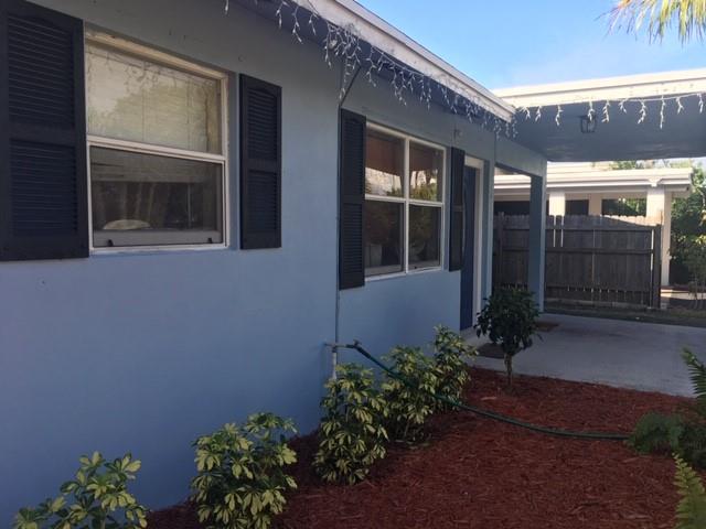 Lowest price in the immediate neighborhood of North Pompano Beach! Crystal clear POOL is professionally cleaned and maintained. Mexican tile patio, completely private rear and side yards with 6-ft wood privacy fence. Central A/C, granite in kitchen, matching newer appliances, updated kitchen cabinetry and bath, interior laundry room w/extra storage, breakfast bar. Super cute home on a quiet street, nice original floor plan and glass door out to the pool. Carport, concrete driveway, newly painted exterior. Excellent 7-year tenant on month-to-month would love to stay. Within walking distance or very convenient to shopping centers, banks, bus stop, grocery stores, elementary school. Ten minutes from the beach. Great house in a GREAT location just west of Federal with no HOA fees! Owner/agent.