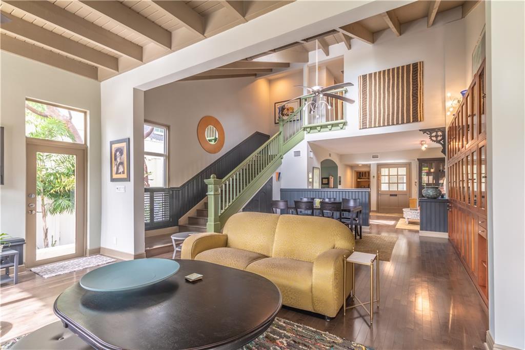 Rio Vista Charmer 4 Bedrooms 3.5 bathrooms, Corner Lot, On the Water, with a pool, boat dock and across the street from the park! Amazing location in desirable Rio Vista! This architect?s personal residence was well designed and built to last! Newer roof, hurricane impact windows, dual zone A/C, natural gas cooking and heating, lush landscaping, paved drive, unique features throughout, sun filled rooms from various windows and sky lights! Priced to sell!