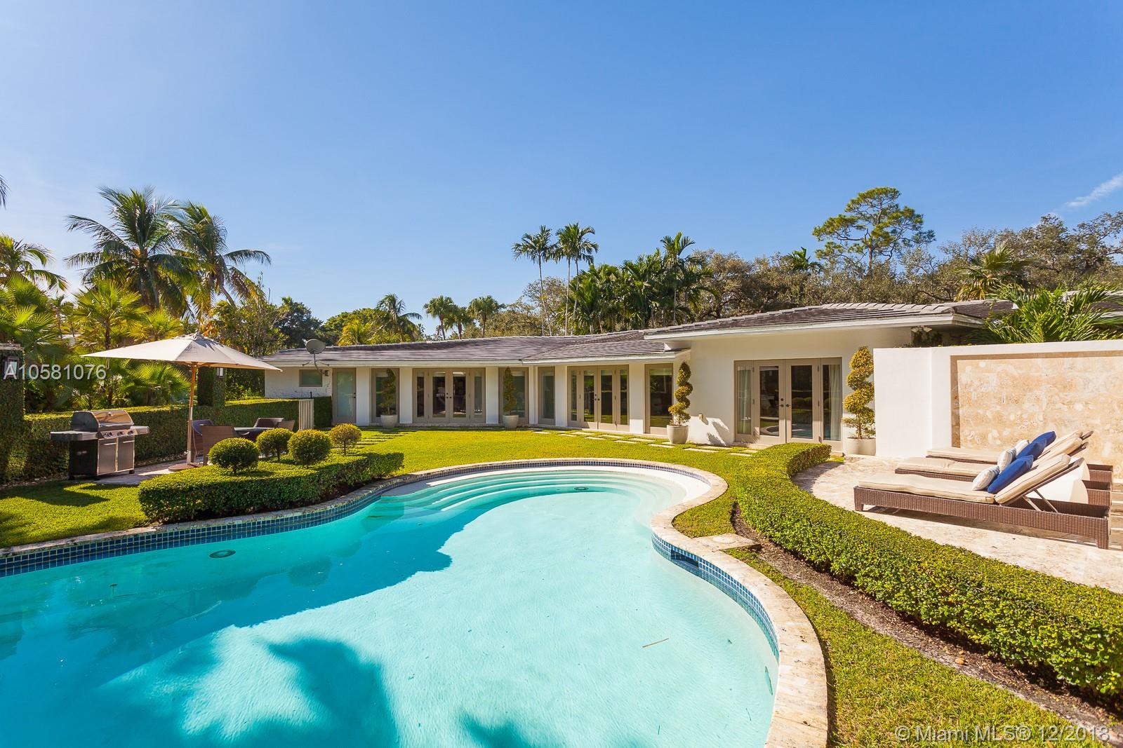 Hollywood glamorous, Palm Beach sophisticated, and South Florida warm and inviting best describes the ambiance of this stand-out residence, completely re-designed and restored to perfection by famed New York designers. Fall in love w/ elegant formal living & dining rooms, an enchanting poolside family room, MiaCucina bistro-style chef's kitchen, distinguished library/office, metropolitan chic bedrooms & baths, and CGI impact resistant windows & doors. Step outside into a private oasis filled w/ exotic palms & flora, divine swimming pool & lounge area, beautiful meditation garden, and glorious ½ acre paradise. This one-of-kind home in Coral Gables' illustrious 'Golden Triangle' is truly inspirational, and will suit the needs & desires of the most discerning Buyer.