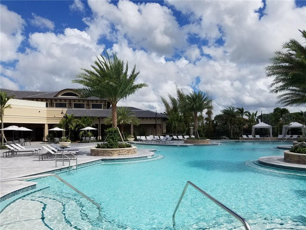 Watercrest Lake view one story House. 3 Bedrooms 2 1/2 Bath plus open Office or formal Dining. Tile Floors with Extended Casual Dining and extended master bedroom. French doors to Lanai. Near Club House and school Bus stop. high impact windows.