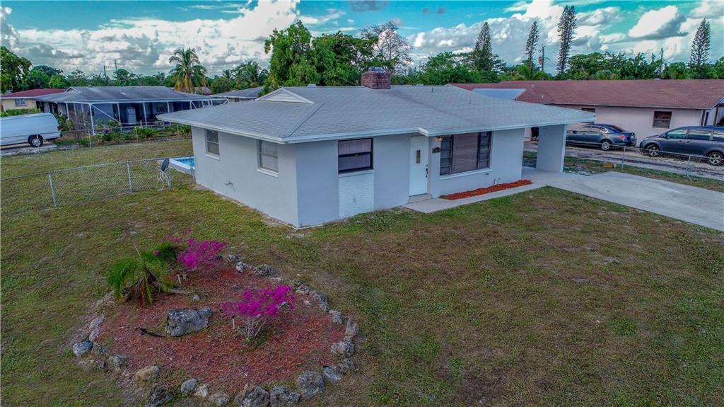 Newly upgraded 3 bedrooms 2 bathrooms home with pool on large corner lot. New kitchen cabinetry, garbage disposal, quartz counter top and tiled kitchen floor. Master bathroom upgraded with new toilet, faucets and vanity. New wood floors in all bedrooms. Newly tiled fireplace. Electrical upgrade with new light fixtures thru out home. Interior and exterior painting recently done. Stainless steel kitchen appliances (range, fridge and microwave) will be provided before closing