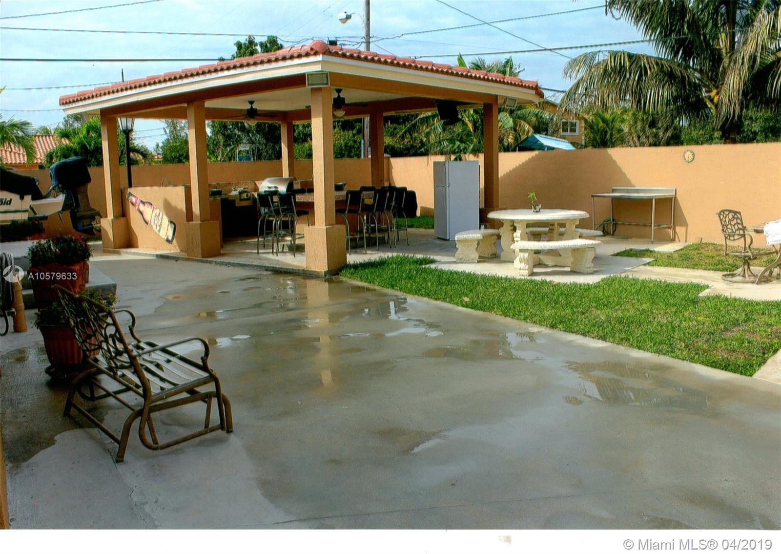 This is a gem! A party House! 4 bedrooms and 2 1/2 bathrooms on a corner lot. Property has a huge family room with a 1/2 bathroom, which is great for entertaining. Circular driveway with automated iron gate. Security cameras throughout. A full size gazebo with a built in bar be que, with double gas burners, sink, a concrete table for dining, everything you need for outdoor fun!!!