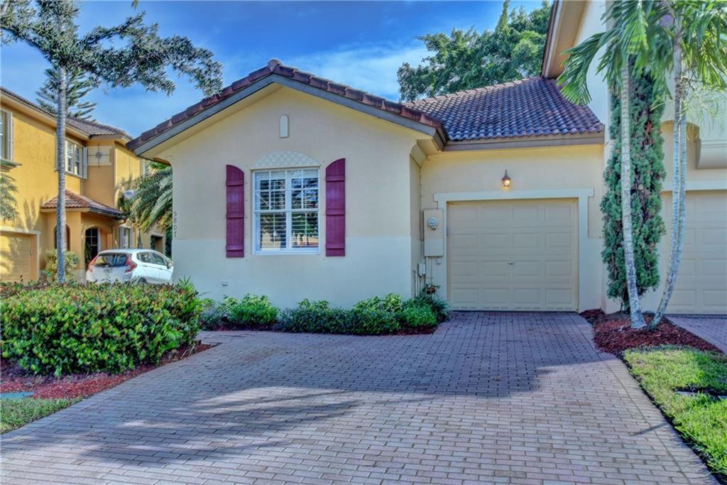 Former model 3 Bedroom, 2 Bath one story villa located on cul-de-sac in Tuscany at Heron Bay! Beautiful wood look plank tile throughout. Upgraded kitchen with 42 inch cabinets and granite counter tops. Other features include Plantation Shutters, crown molding, intercom, central vac, walk-in custom closet in master bedroom, covered patio and one car garage with quest parking nearby. Exterior is maintained by association.