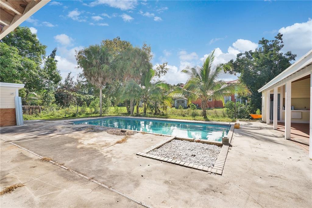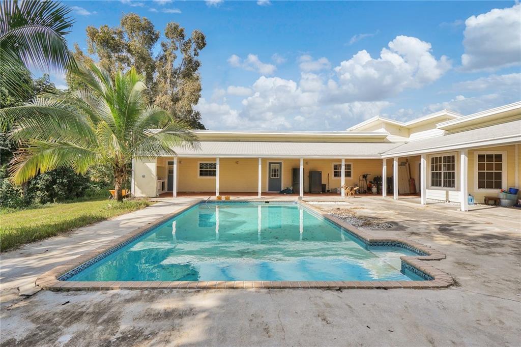 Magnificent Estate Home on approximately 2.06 acres of Land With 3.5 bathrooms, 2 Master Bedroom suites, and two additional bedrooms, this home is anything but small. The property also includes a detached 2/1 guest house that has been renovated completely, also has a cute small patio to sit outside and enjoy the beautiful nights. As you enter the main house you will immediately note the vaulted ceilings & stunning stone fireplace that adorns the formal living room & dining room. The open U shape kitchen has a bay window breakfast area that overlooks the oversized pool and BBQ area. All brand new SS appliances, New washer & dryer inside refinished laundry room with shelves. New pump for well water. This home situated in very quiet & tucked away neighborhood is move in ready! Easy to show.