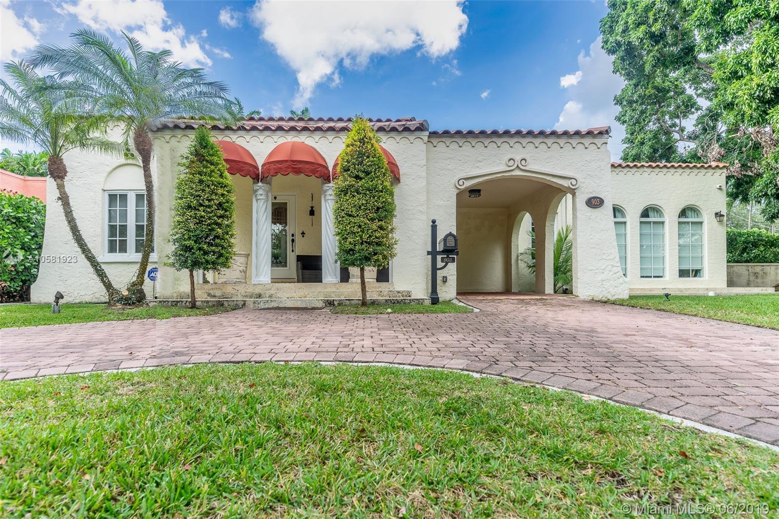 Authentic 1925 Old Spanish! 10,000 SF Lot! All major updates; roof, impact windows & doors, new kitchen & 5 new baths, lrg Familyroom with recessed ceilings, 2 new AC systems; all done without losing the charm of yesteryear! This 3Bdrm/4Ba+ Den/office + 1/1cottage. Living room is accented by a beautiful Fireplace! The new Kitchen has quartz countertops, top of line Stainless Steel appliances, hood & fan, double ovens, refrigerator, dishwasher & an under-mounted sink that will please the gourmet cook! The ample Master addition is accented by French Doors, marble floors, has great privacy, large marble Bath with bidet & large shower. The Den/Office has arched windows & beautiful views overlooking the lawn. Split floor plan that will please most Buyers!