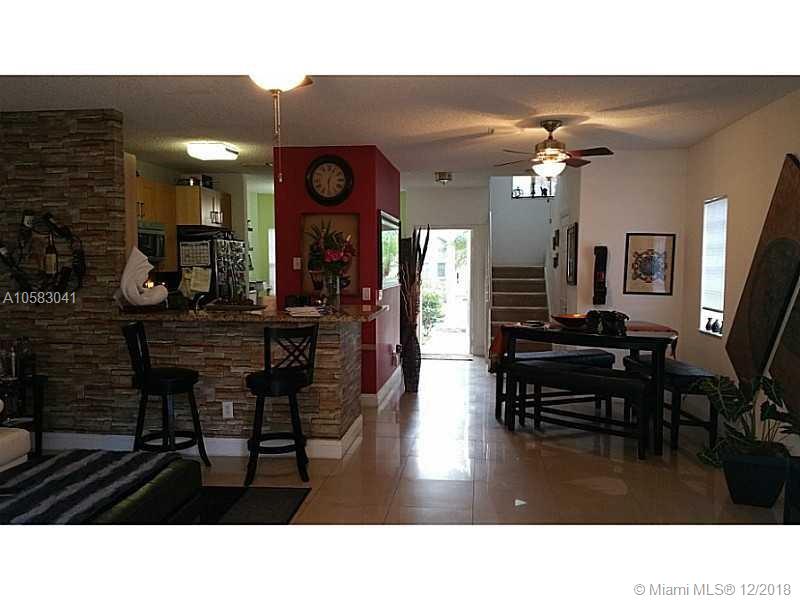 Beautiful 3 Bedr/2.5 Bathr semi-detached Town-Home in Emerald Courts at Weston, Florida, spacious layout, dining and living area, Kitchen with granite counter-tops, wood cabinets and SS appliances. Modern porcelain floors, Berber Carpet on stairs and second story, spacious master bedroom with walk-in closet, Water Heater. Washer and Dryer inside. Private patio and storage. Great Community pool with gym and kids play area. "A" Weston Schools: Everglades El., Falcon Middle and Cypress High. Great Location. Excellent community, Close to Sawgrass Mills Mall. Miami International Airport and Hollywood/Fort Lauderdale International Airport. Good restaurants. Don’t miss this opportunity for your family. Equal Housing Opportunity. AS IS.
