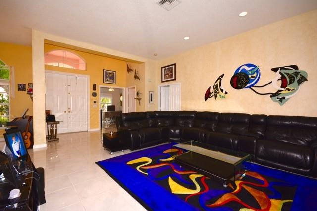 This large lovely lake home is located in The Estates of Tanglewood Lakes, a gated family community. The home sits on an oversized pie-shaped waterfront fenced lot with extended screened patio and still plenty of room for a pool. The kitchen has been updated and upgraded with granite counters and stainless appliances. The master suite has a spacious updated bathroom, also beautiful water views as do many of the rooms in this light flowing home. Three other ample-sized bedrooms are across the tiled living space. Separate living room, family and dining rooms, along with a 5th bedroom set up as an office (no closet), a large laundry room with washer,dryer & wash tub, and 2- garage complete your perfect new home. Close to schools, shopping, restaurants and highways.