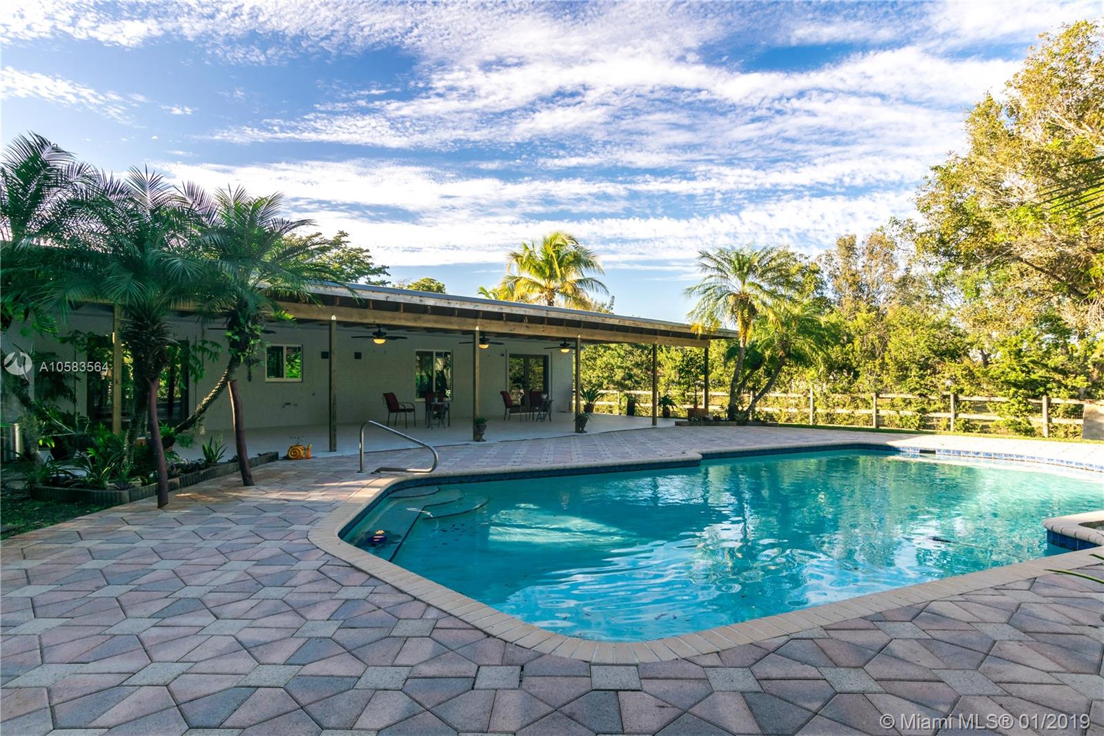 Beautiful Ranch Style Home “ NEW ROOF & HURRICANE IMPACT WINDOWS” This Ranch style home is located in a wonderful neighborhood with great schools. Close to I-75 & I-595. It is a beautifully remodeled open space 4-beds 3-baths 2,261 sqft waterfront home with an extra large NEW terrace. One bedroom can be used as In-law quarters or efficiency for extra income. This house is a Tropical Oasis with Exotic Palms, fruit trees and more. Home has an extra large pool. Sits on a 1.07 acre with a canal that runs on both sides of the property. The property has a wonderful sprinkler system, a state-of-the-art septic tank, and a reverse osmosis water purifying system. It is in ready to move-in conditions or adds your own personal touch.