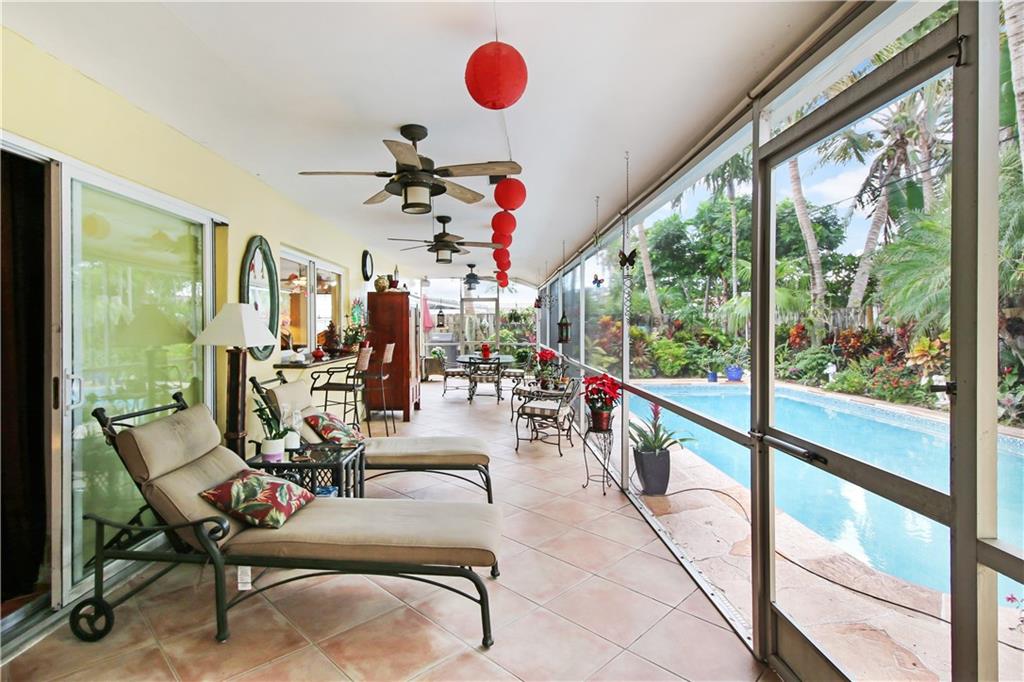 Your tropical slice of paradise has been found in the desirable and prestigious Coral Ridge Isles! (No HOA). Expansive screened in lanai stretches across the whole home and features stackable sliding doors allowing for the maximum exposure to your outdoor oasis. Oversized swimming pool recently resurfaced, glass tile accents, new pump installed and deck area redone. Beautiful landscaping and garden area completely surround this home. This 3 bedroom home has real wood Brazilian cherry in the bedrooms. Remodeled kitchen with dark cabinetry and beautiful granite. Comfortable family room located off of the kitchen as well as a formal dining and living room. Impact windows and sliders thru out the home. True 2 car garage.Driveway has pavers giving that instant curb appeal!Come and fall in love!