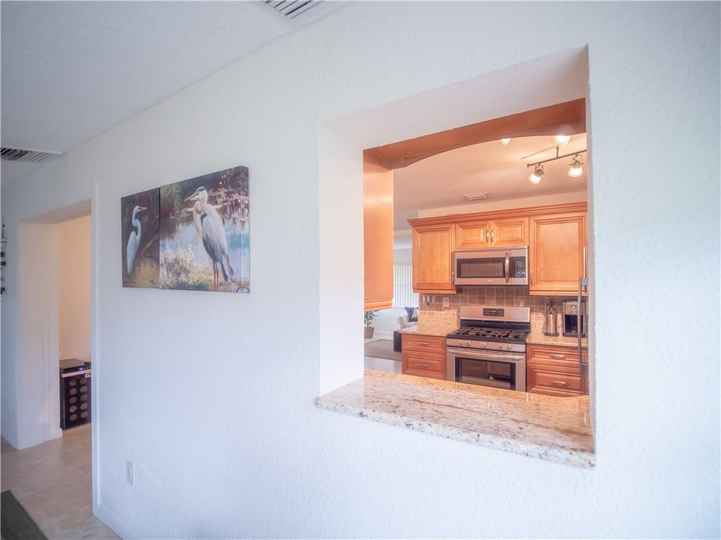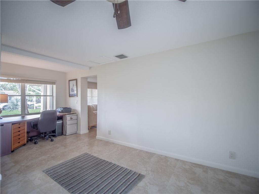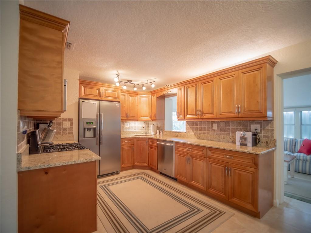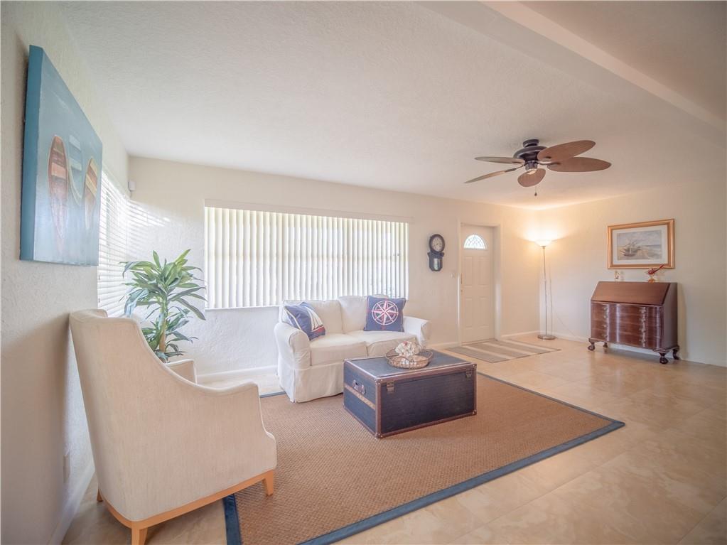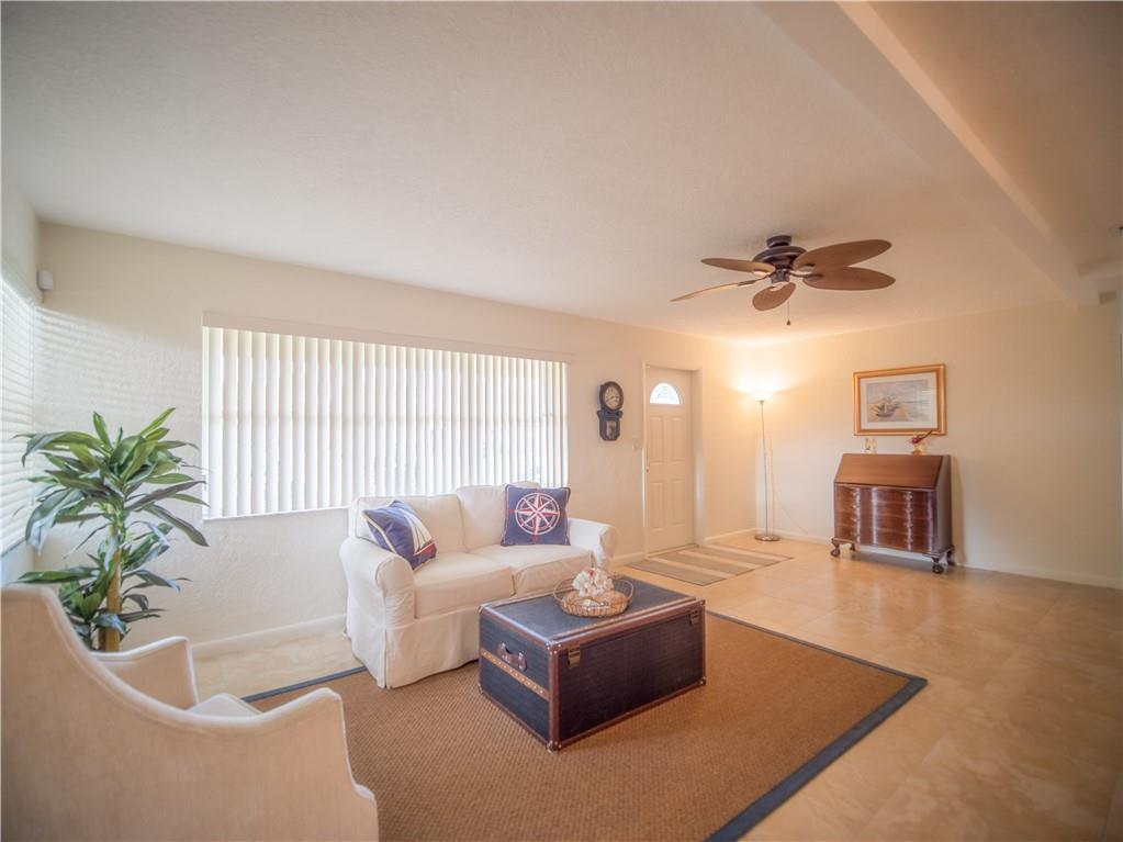 Updated, East of Federal home that's in move-in condition. 20" tile throughout. Stainless steel appliances, granite counters, and top quality cabinetry. Gas hot water heater and range. Security system, hurricane shutters, and non potable water system for your four zone sprinkler system. Full sized stacked washer & dryer. Large outside storage shed. Don't miss showing this well maintained property. One bedroom being used as an office. No HOA. 1 mile to the Beach & close to shops and restaurants.
