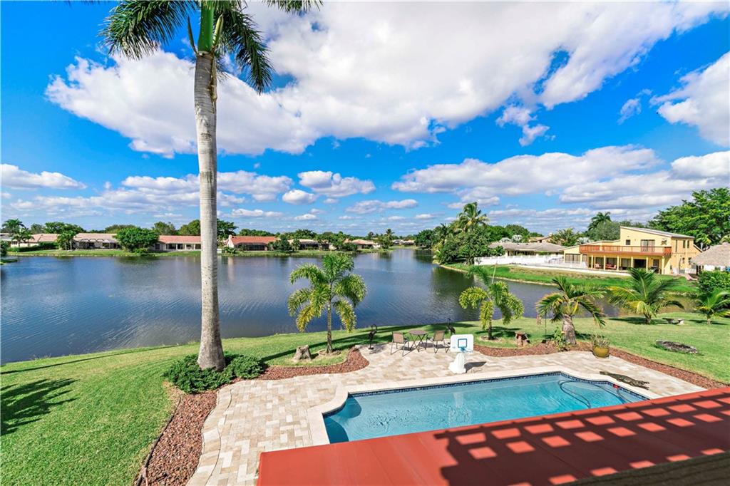 Largest lot in Cypress Run! Rare 2-story, 4-BR, pool home on lake. Major improvements incl a newer Key West-style metal roof, 2-zone A/C, impact glass windows & doors, diamond-brite pool. Remodeled EIK w/SS, lrg center island w/cook top, range hood, wine fridge, granite & butler’s pantry! Interior offers a formal DR, LR w/exposed wood volume ceiling, reading rm w/wood-burning fireplace, family rm; extra storage rm; ½ bath 1st fl; sep laundry rm. Tile, carpet; hardwood bamboo in spacious Master w/sliders to terrace for amazing wide-water views; volume ceilings, WICs. 3 lrg BRs, dual sink 2nd bath. Plantation Shutters, flat screen in EIK & all blinds stay! HUGE backyard w/pool, true cabana bath, outdoor shower, covered barbeque area, fire pit, fruit trees, tons of green space & more. NO HOA!