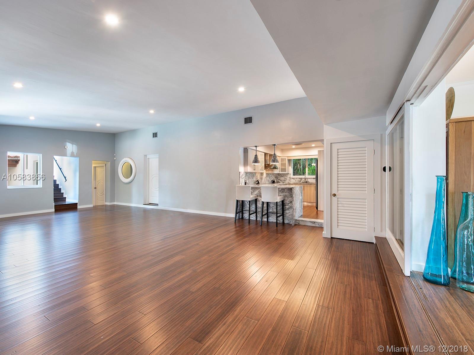 Difficult to find,this fabulous home offers an amazing lot,loads of interior space and completely updated baths.A/C,Impact windows,new Bamboo floors throughout,full house generator,new septic tank,renovated kitchen and more.Lovely living/Dining area,loaded with light and easily accessible to eat in kitchen. Over sized family room with french doors leading to exterior living area/pool area. Floor plan allows for ultimate privacy and 3 bedrooms have their own on suite bath. Deluxe master suite is upstairs with renovated bath,walk in closets and private balcony overlooking the park like setting of the 18K+lot. Do not miss this fabulous home.it will not last!!