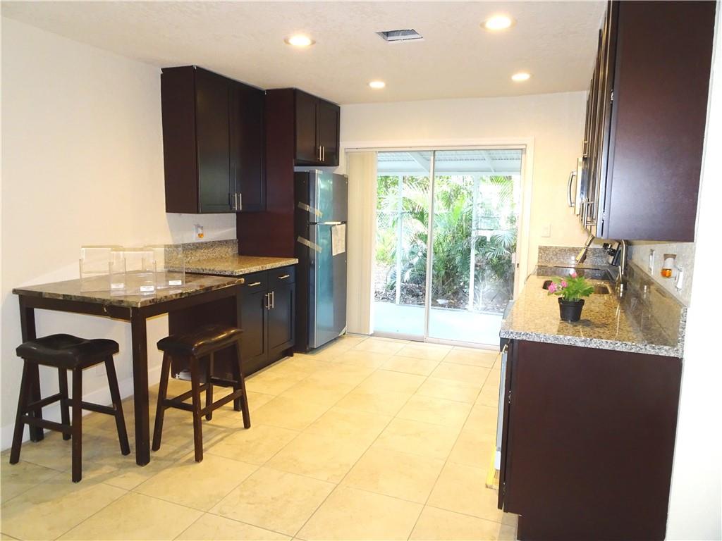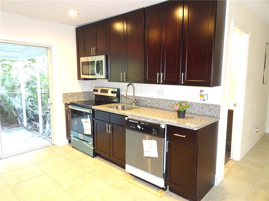 Remarkable 3 bedroom, 2 bath home with a Carport in a desirable East Pompano Beach neighborhood. This updated home features; 42 inch real wood Espresso kitchen cabinetry, Brazilian Granite counter-tops, brand new Stainless Steel GE appliances with 12 month warranty, new A/C system with 10 year warranty, new roof with 7 year warranty, modern tile flooring in the living areas, high-end dark maple wood laminate flooring in the bedrooms, carport, open floor plan concept, covered back patio, no HOA, and the bathrooms have a modern updated finish. Everything is done, and waiting for you to move in.
