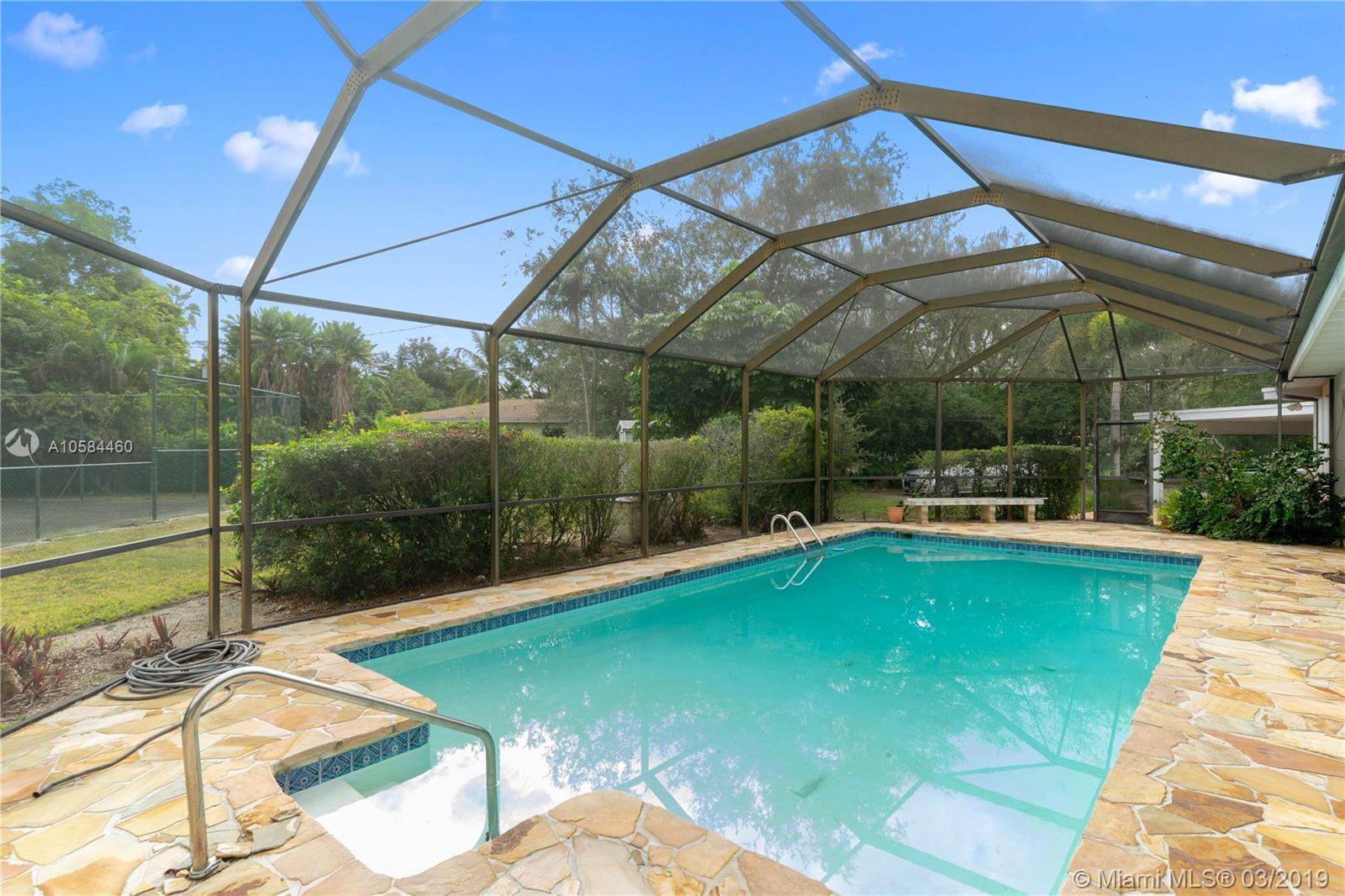 Wonderful 4/3 Pinecrest Home on a quiet oak lined street. Lots of extras such as NEW ROOF, tennis courts and huge rock patio surrounding an inviting pool that is screened in for year round enjoyment. Split plan with 3 bedrooms on one side and the 4th on the other. Large Family room is huge and very private. The house is large and spacious throughout-a Super Price too-this property is east of Ludlam.