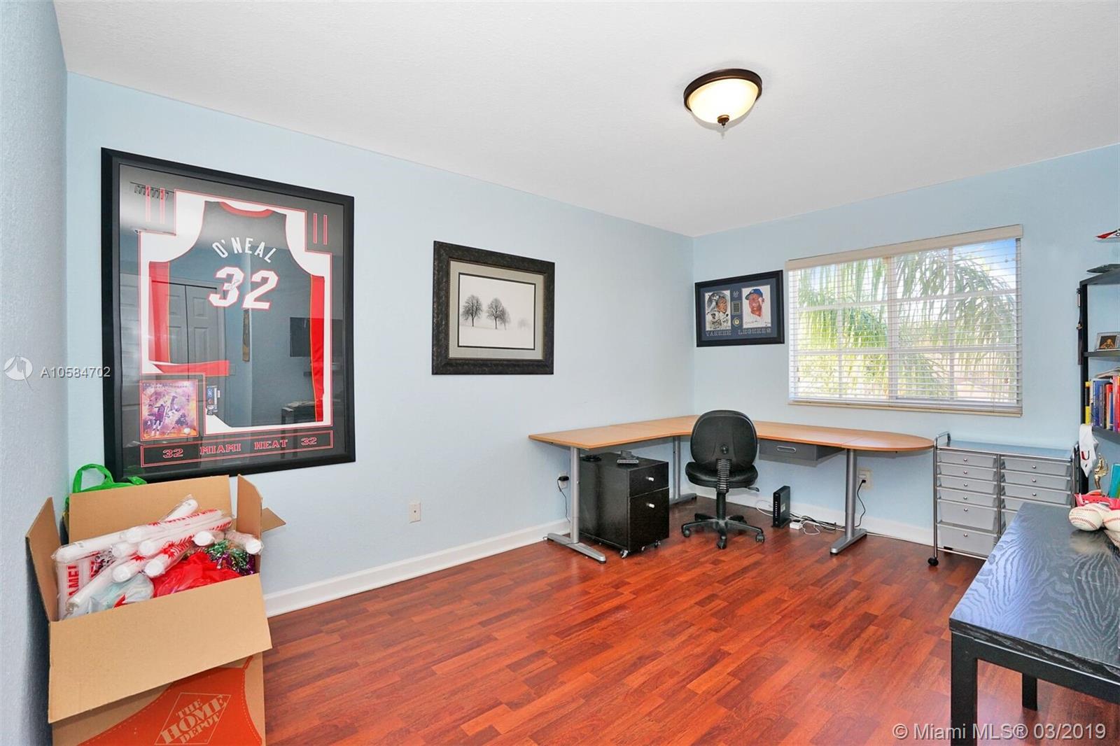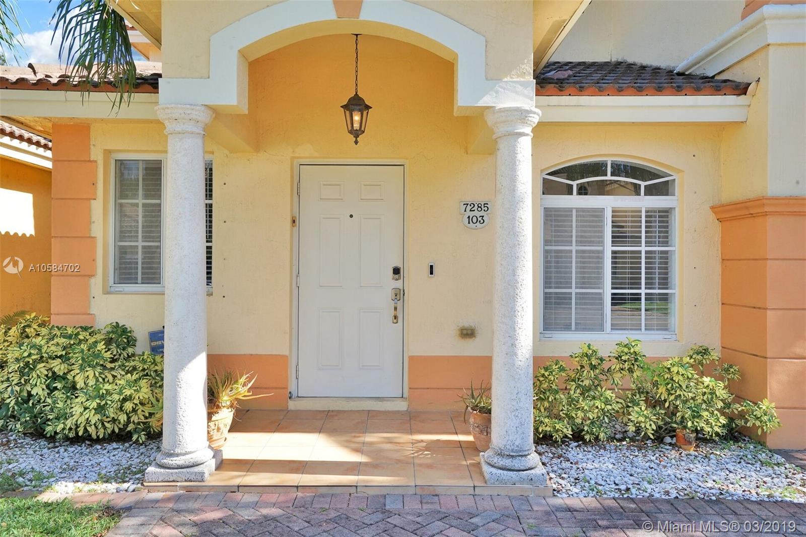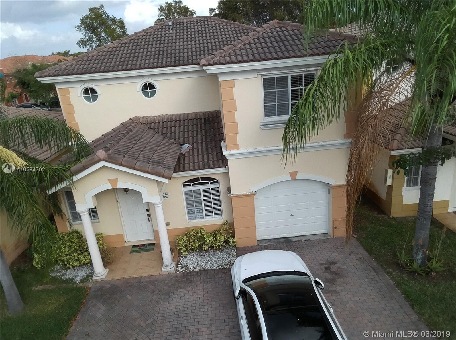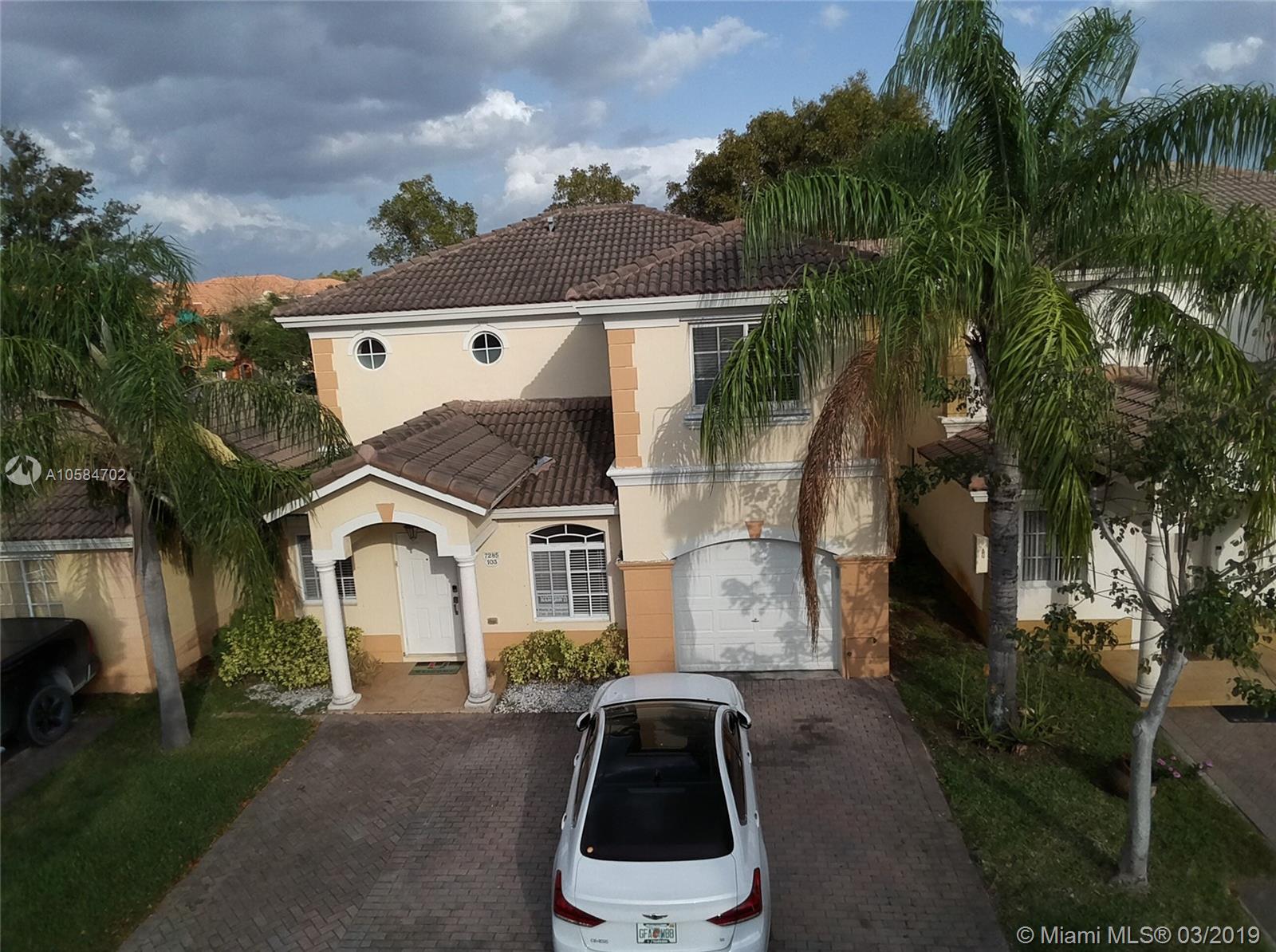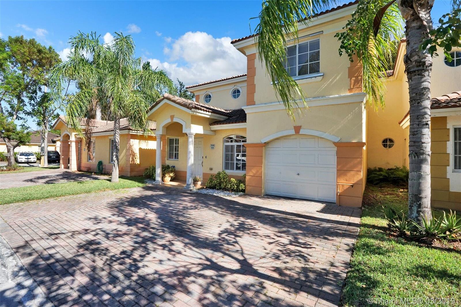 Large 1860 sq. ft., 3 bedrooms, 2 baths, 2 story townhome located at Bella Colina in Miami Lakes. Laminate floors upstairs, tile downstairs. Hide hat lighting. Stainless steel appliances except the range, washer and dryer. Walk-in closet. Tub and shower in the master bathroom. Big patio. Beautiful townhome. This one won’t last.