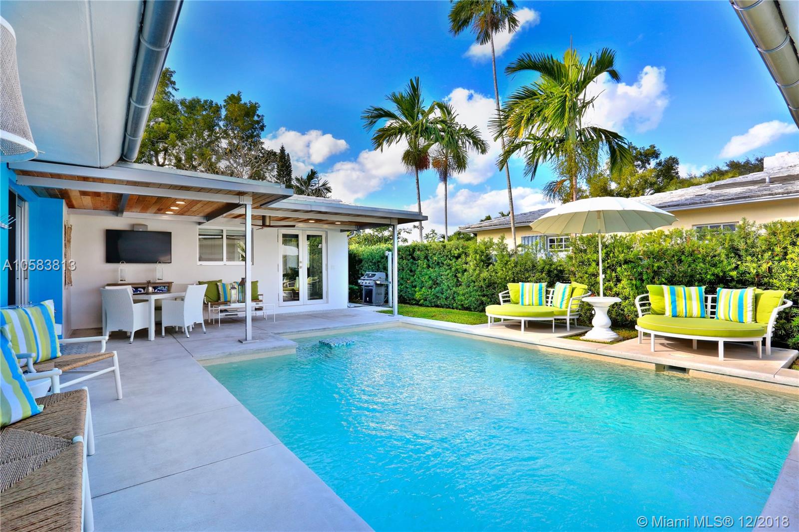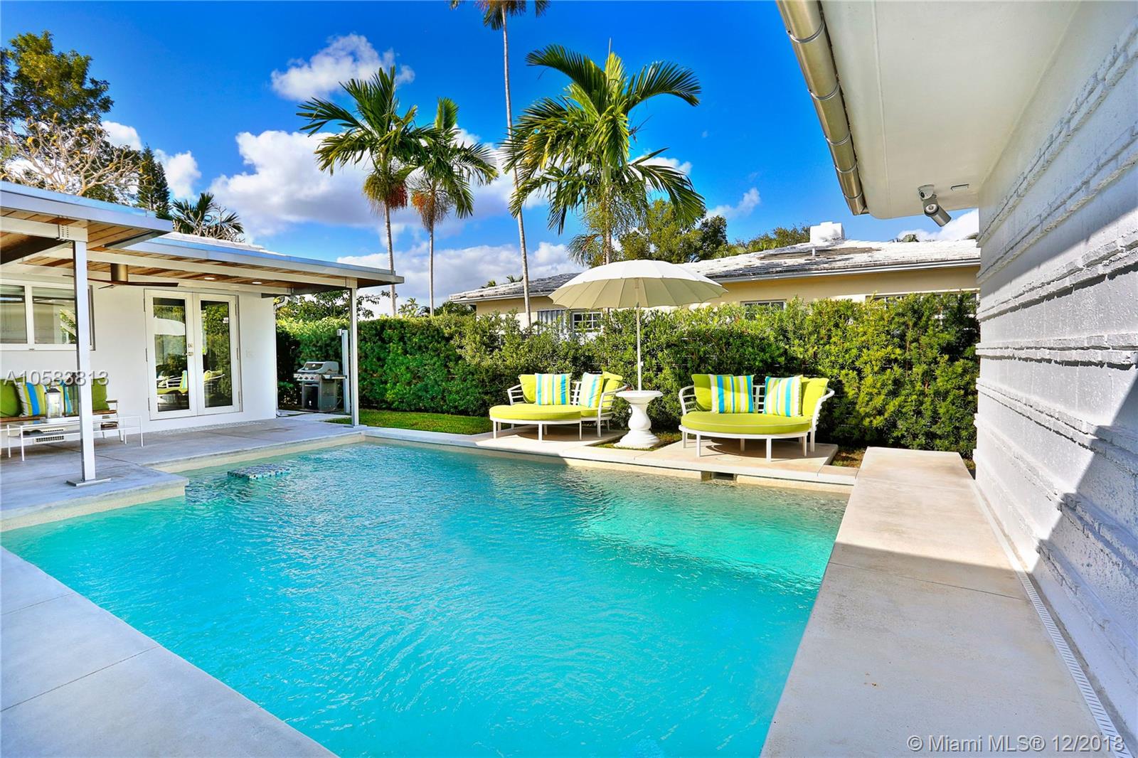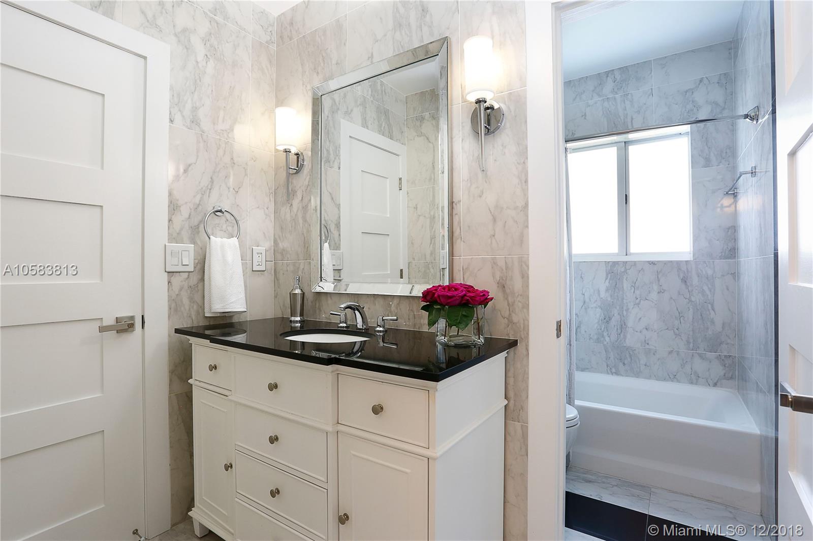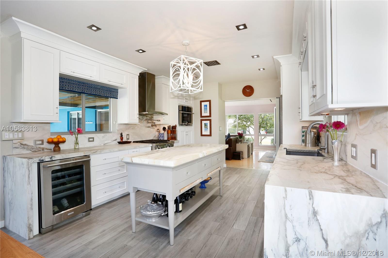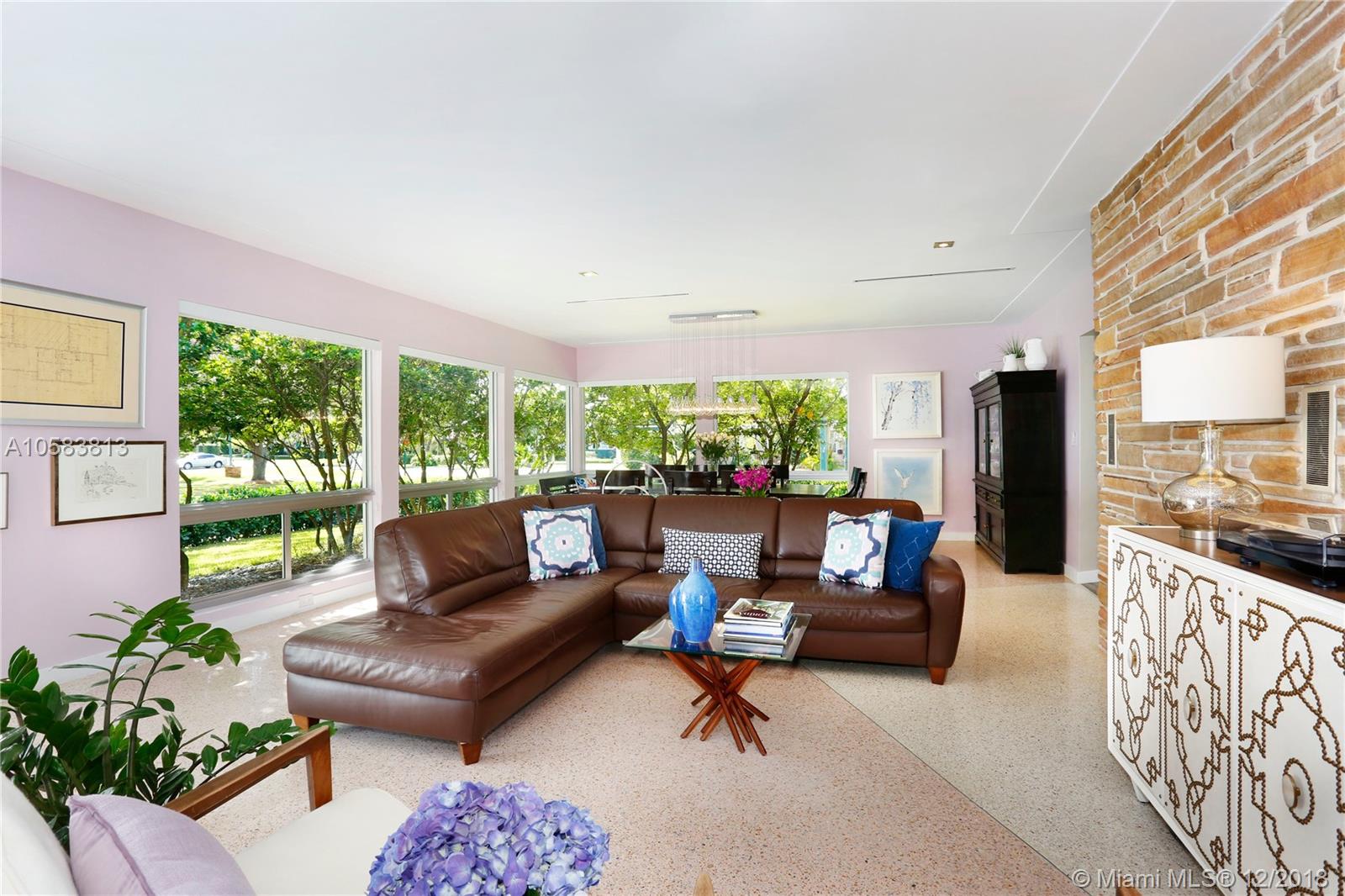 This exquisite MIMO masterpiece has been completely remodeled down to the concrete walls with no expense spared. Designed by famous Architect Percy P. Turner, and located on a large corner lot on one of Miami Shores most beautiful streets, this 3/3 has a 680 sf oversized 2 car garage! Features include all new plumbing, electric, AC & ducts, high-end gourmet kitchen (white lacquer shaker cabinets, SS appliances, honed calcutta marble counter tops), floor to ceiling impact windows and doors, 3 new in-suite bathrooms with designer tiles and quartz vanities, new septic system, new heated private courtyard swimming pool, polished terrazzo and rich wood floors and so much more. No flood insurance required! Easy to show, bring your fussiest clients.