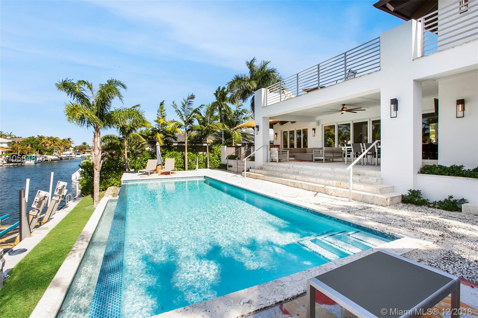 Contemporary Waterfront, No Bridges, 2 Story home built by CAD Studio. Cathedral Ceiling welcomes you to stunning great room featuring Impact glass windows & doors that offer indoor/outdoor living and view of summer kitchen, infinity pool & waterway. Priv Dock w/100' of wf and Lift. Modern finishes including Lutron lighting system, state of the art kitchen with Thermador SS appliances, Swann 4K security system and cutting edge upgrades. Private upstairs opulent master suite w/water views and private sun deck, 2 closets & spa like bath. 3 bedrooms on ground level, and 3.5 baths. Wet bar with wine cooler and ice maker. Mature Oaks, Marble Driveway, Water feature entrance, Downstairs 2 car garage w/bonus storage.