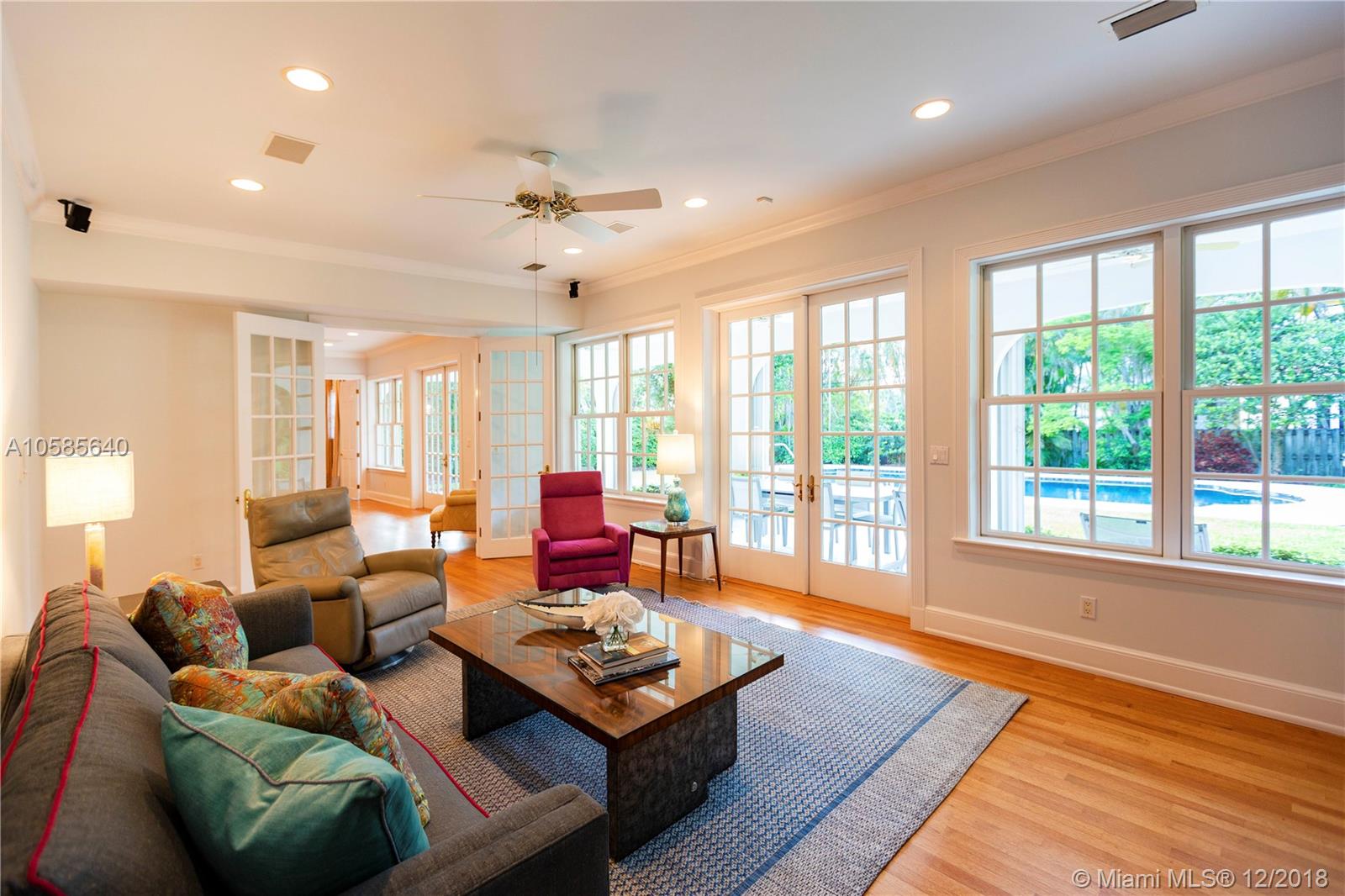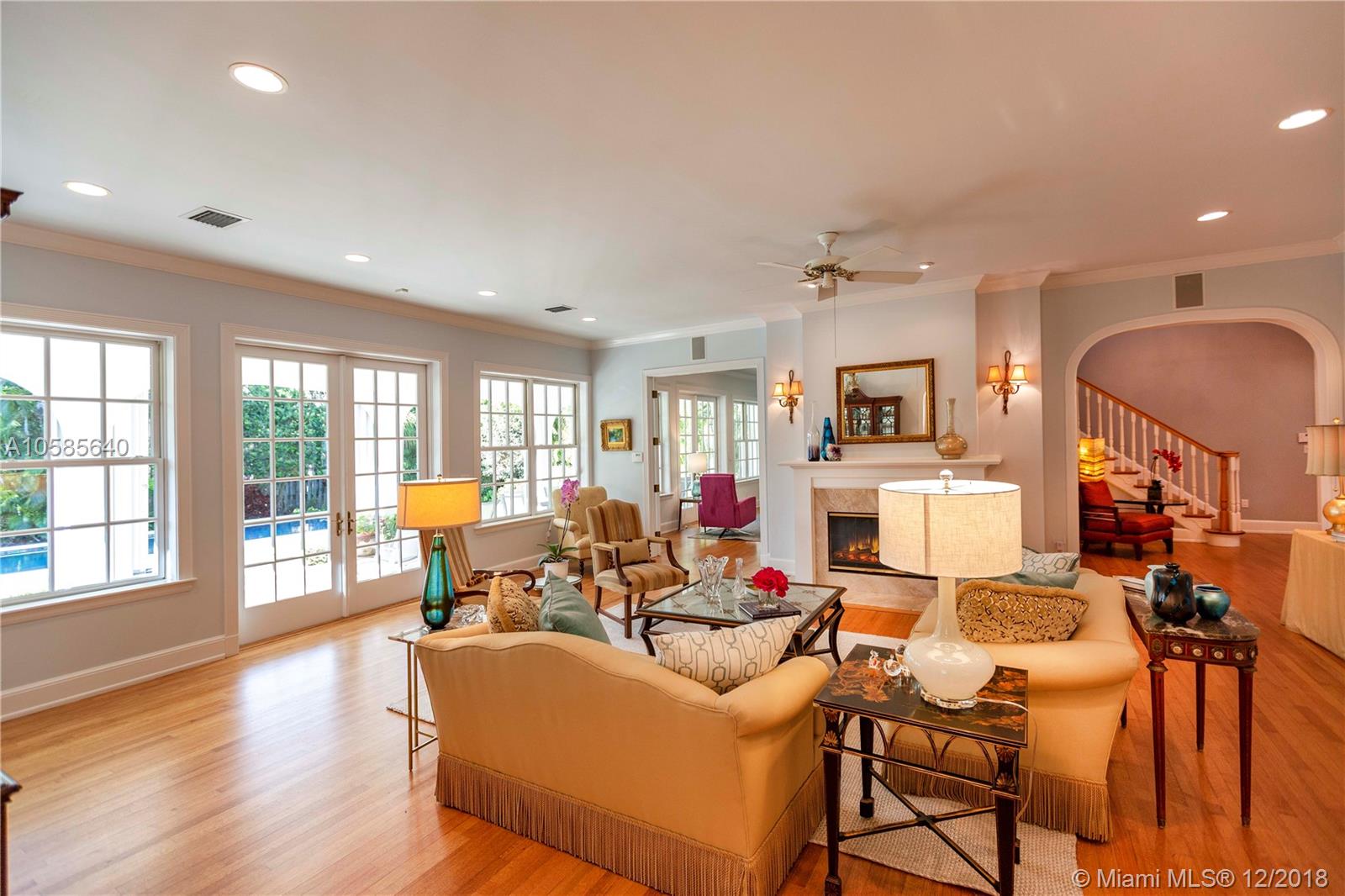 Fabulous French Tudor style home in gated community of Kings bay of Coral Gables. Two story 4903 sq. ft. of exceptional living space.4bd/3bths with formal dining & media room. 9 to 10 ft ceilings, 3/4 inch Oak floors except in the kitchen where Carrera Marble sets the stage for hard wood cabinetry and stainless steel appliances. Huge living areas and covered patio,new (2018) roof, large salt water pool, wash room and storage area & two car garage with high ceilings to accommodate a trailered boat and riparian rights with full access to King’s Bay marina and ramp which is in the backyard of Deering Bay.Wired Sonos multy-room sound and alarm system with full home lightning protection from FPL. Home sits at 12 ft. Elevation and has large covered patio. Live on the water and not pay high $$$.
