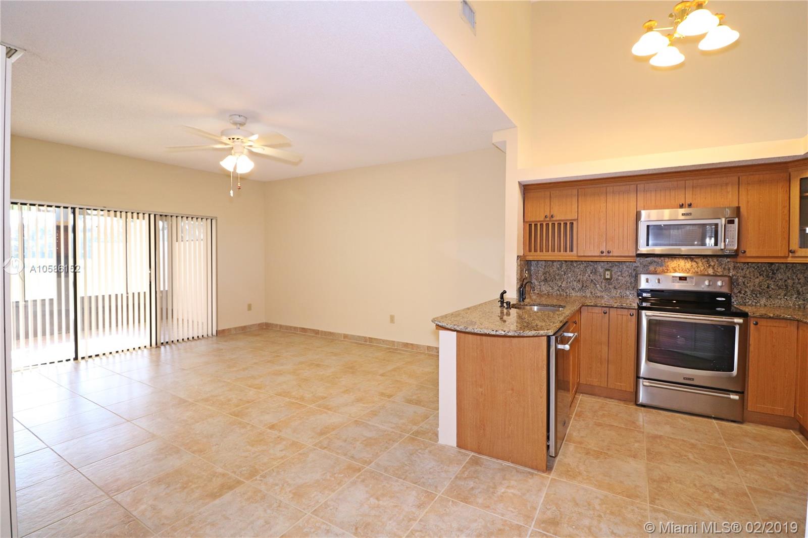 Great central location Pembroke Pines just west of I-75, impeccable townhouse in sought after golf community, 3 bedrooms, 2 1/2 bath, vaulted ceilings living dining rooms, updated kitchen stainless steel appliances and granite counters, family room, master bedroom on ground floor crown molding and plantation shutters, 1 car garage plus driveway space for two vehicles, interior freshly painted, new carpet upstairs, roof replaced, newer central air conditioner, glass enclosed back porch, open patio with pavers, on golf course with lake view, accordion shutters, courtyard, maintenance includes lawn, sprinkler, exterior paint, pressure cleaning roof driveway and sidewalk, reserves, cabana with pool and spa, 24-hour guard at the gate and rover patrol, tv cable, alarm monitoring. Must see it!