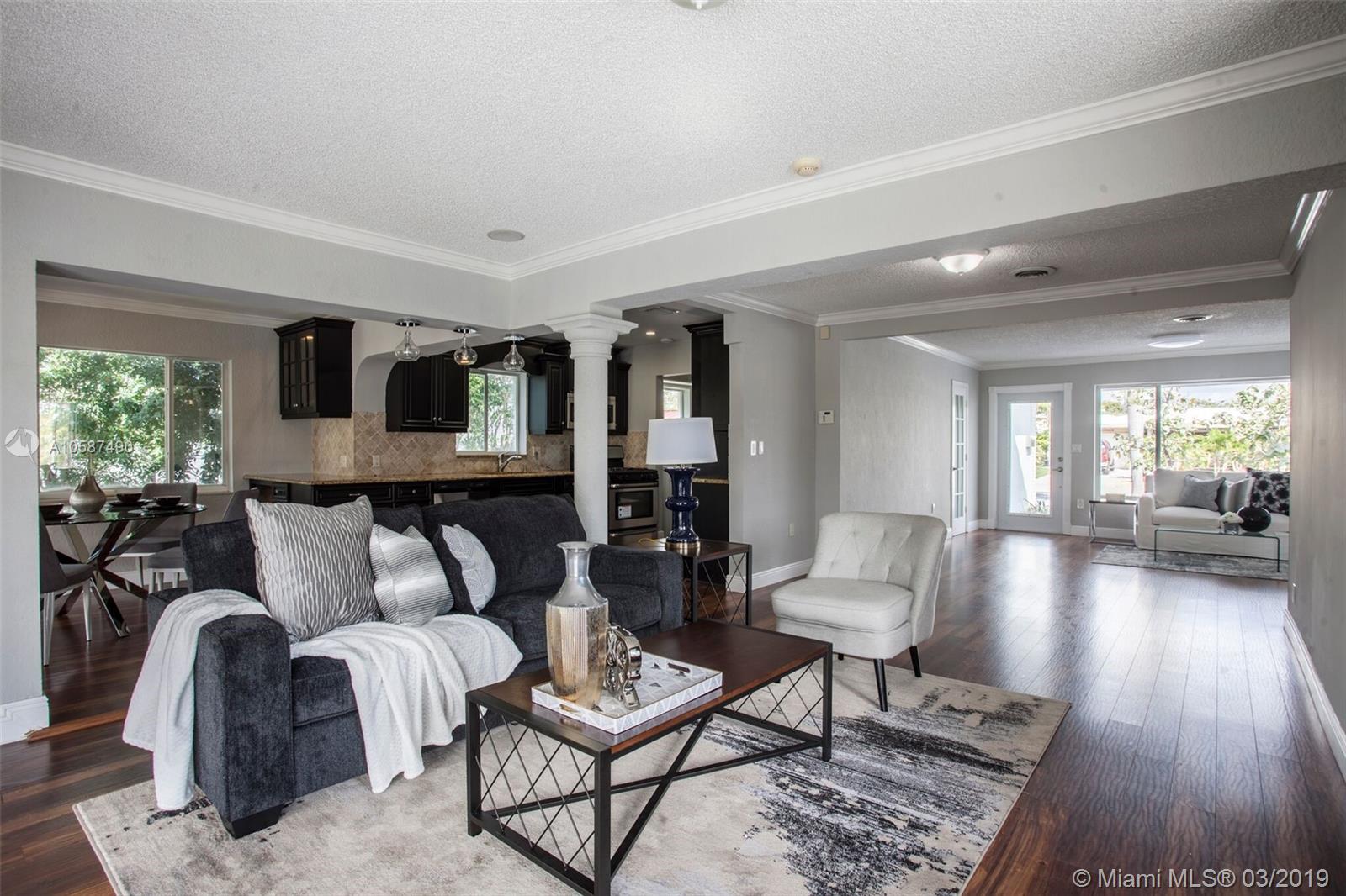 Amazing Deal for Totally Remodeled 2/2 w/ garage with Large Pool overlooking the water in Coral Rige Isles! House has beautiful top of the line kitchen w/ wood cabinets, granite countertops, and new stainless steel appliances! New Wood Floors throughout! New bathrooms with modern vanities with granite and bowl sinks! Amazing Backyard with Custom Tiki Hut with built in bbq/fridge and bar! Large Pool with Views towards the water+ canal! Directly to ocean!! Priced to SELL!!!