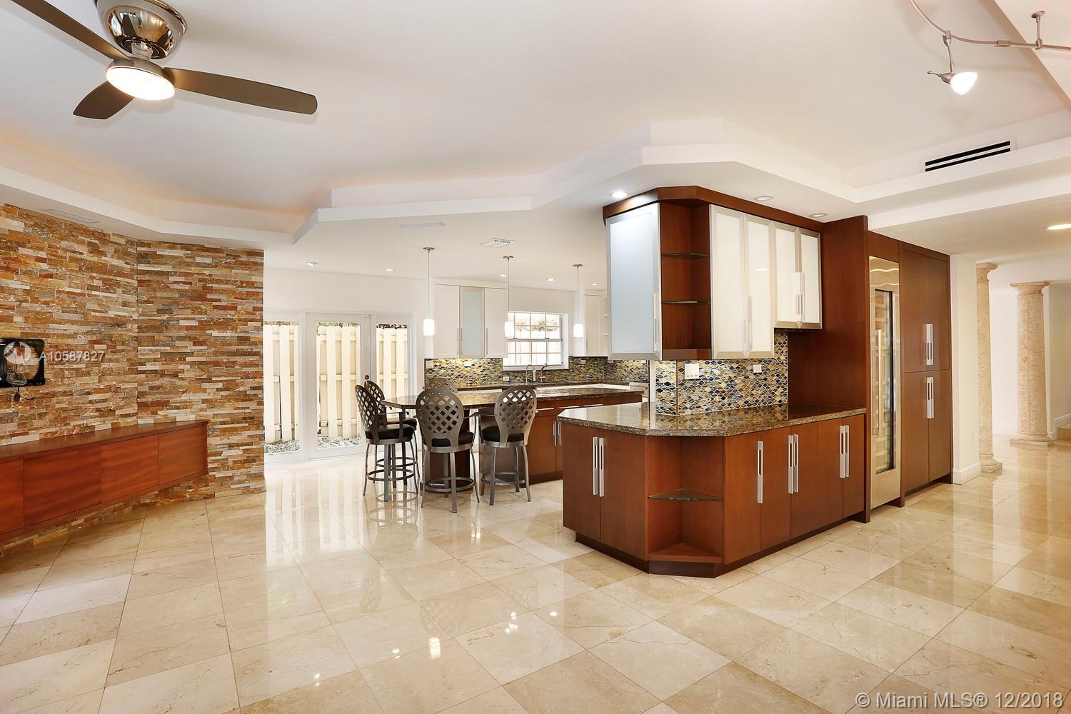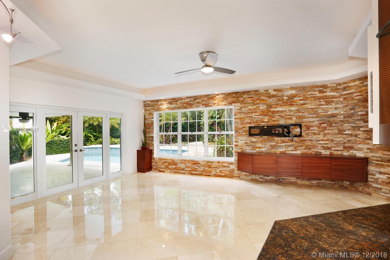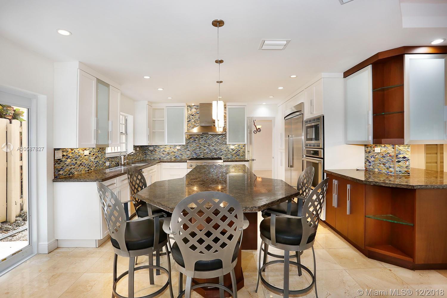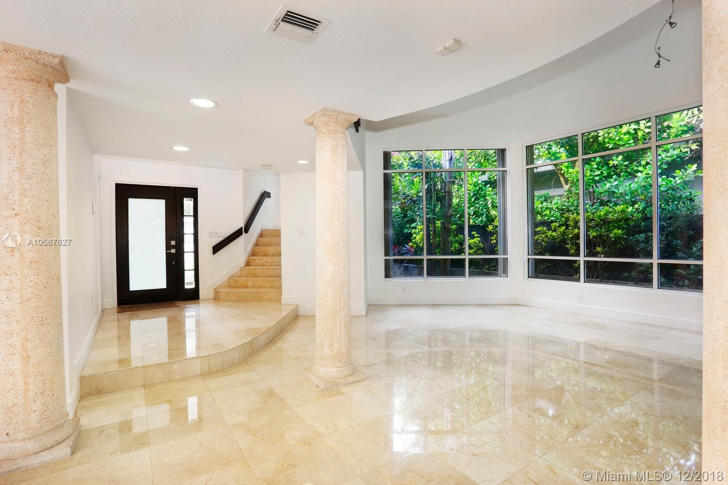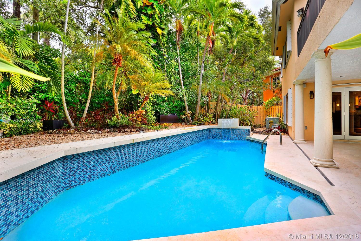 Live the Grove lifestyle in this lovely, gated home located at one of the highest elevations in Miami (not in a flood zone) yet just a short walk to bayfront parks & marinas. Light-filled living spaces w/ volume ceilings, stone & wood floors, custom built-ins and impact doors throughout. Expansive euro-style kitchen (updated/2012) features wood cabinetry, granite countertops, gas range, stainless appliances (including wine refrigeration) & large center island w/seating. Adjacent family room opens to recently renovated patio & tropical pool w/waterfall. Downstairs guest suite & 2nd level: 3 BR’s, including luxurious master suite that features sitting area, marble bath & large private terrace. Minutes to the Grove village and close to downtown, Coral Gables, Key Biscayne, MIA & the Beaches.