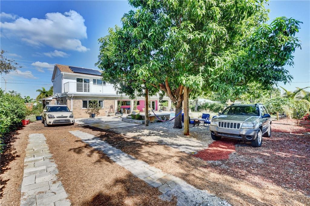 East Boca solar estate no assn in desirable Boca Hills community, just 1.5 mi from the beach! This spacious, totally renovated home with automatic gate for back yard car parking plus room for RV or boat opens onto a quiet cul-de-sac. Walk to schools and worship centers. Also miles of bike/hike paths accessible nearby. Impact windows lead to pin drop silence within, perfect for a hurricane party. The covered veranda is awesome for parties otherwise. Heated salt water pool extends summer through the year. Enjoy chlorine free showers and drinking water everywhere at home with central filtration. This green estate lawn and tropical fruit trees (14) are irrigated by well water. Bring your family and friends for mango tree festival in the summer and for everyday, spa resort style backyard.