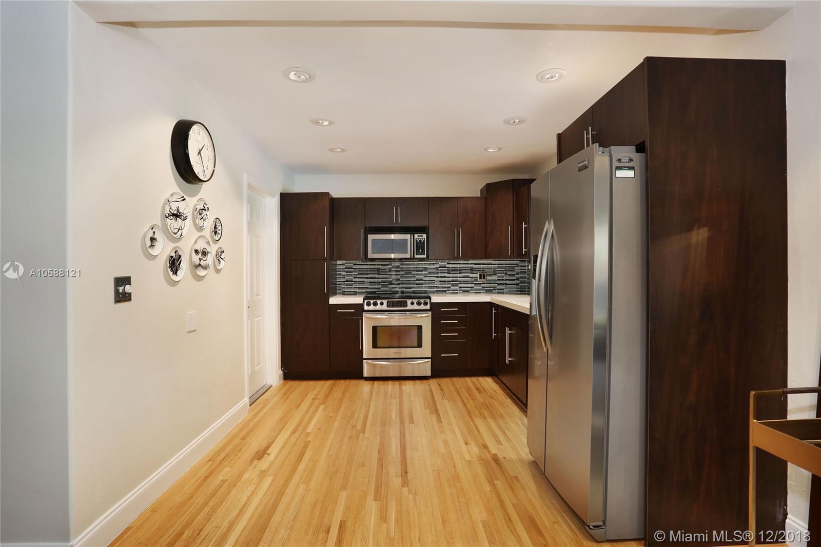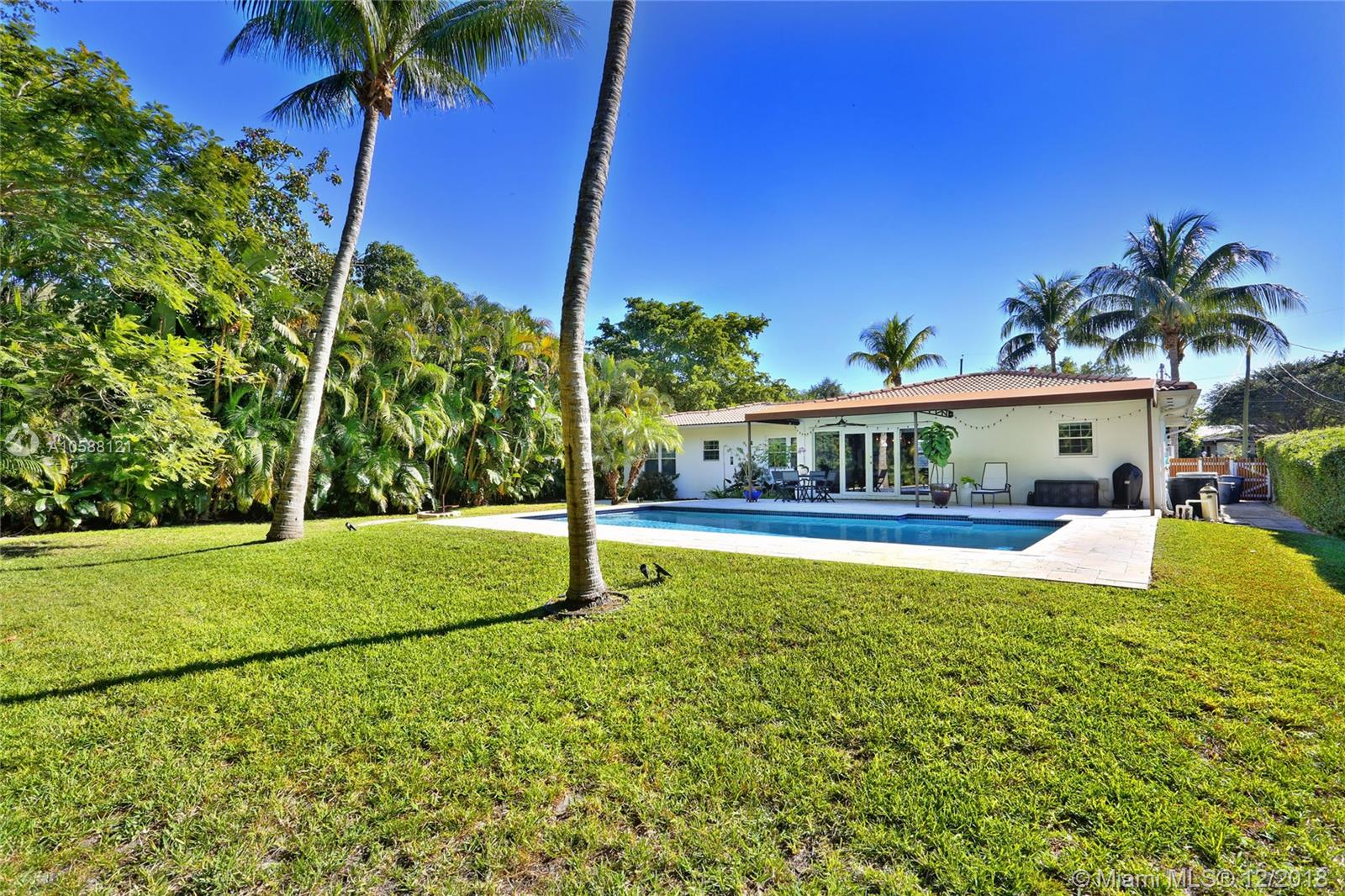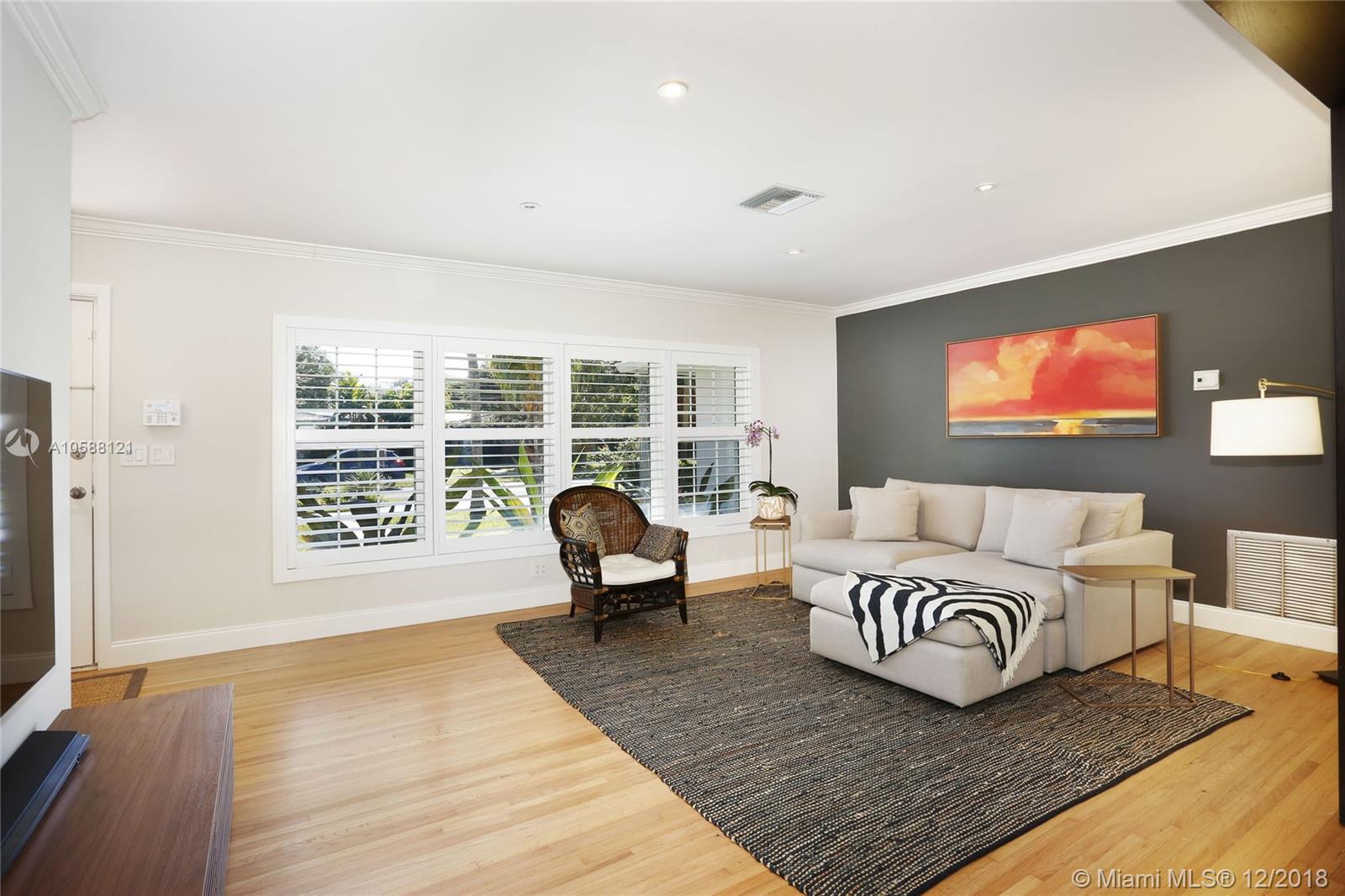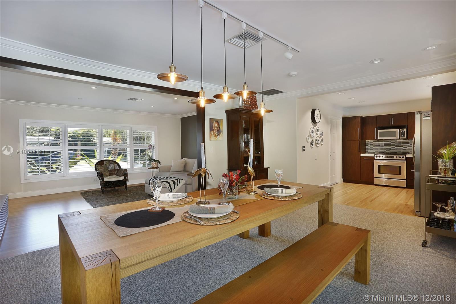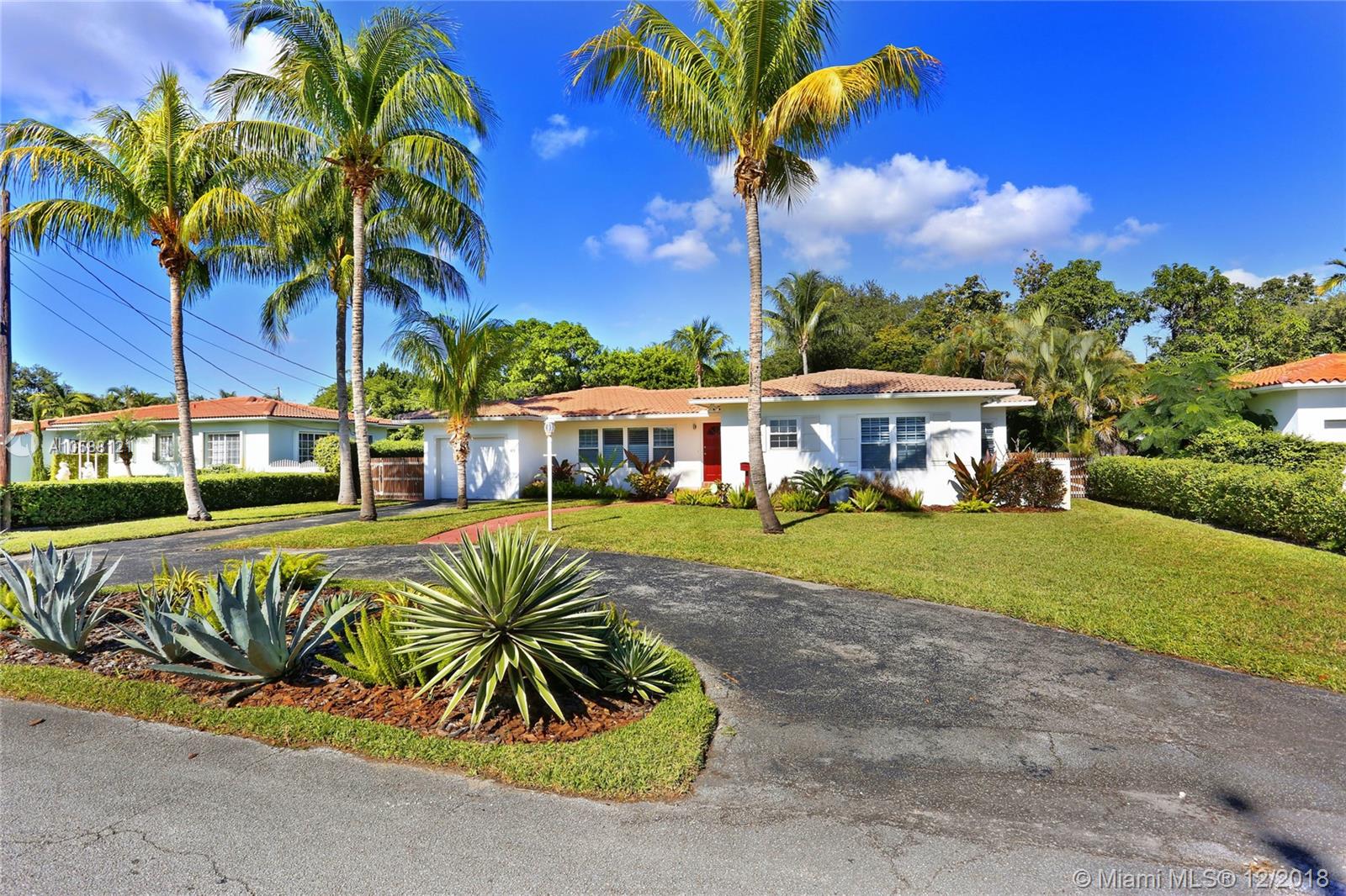 CHARMING & TURN KEY! Nestled on a quiet block in Miami Shores, this adorable Mid Century 3 bedrooms & 2 bathrooms features a beautifully remodeled kitchen with quartz countertops and SS appliances, many impact windows, spacious living & dining areas, master suite with a remodeled bathroom & spacious closet, refinished rich hard wood floors and much more. Dining room opens to a wonderful backyard with a pool which is perfect for entertaining or to have a wonderful afternoon with your family! Property is located on a 12,000 + Sq. Ft. lot with lush landscaping and lots of space. Come enjoy the charm of Miami Shores on this beautiful & cozy piece of heaven! Within walking distance to local shops, restaurants, the theater and much more. Easy to show.