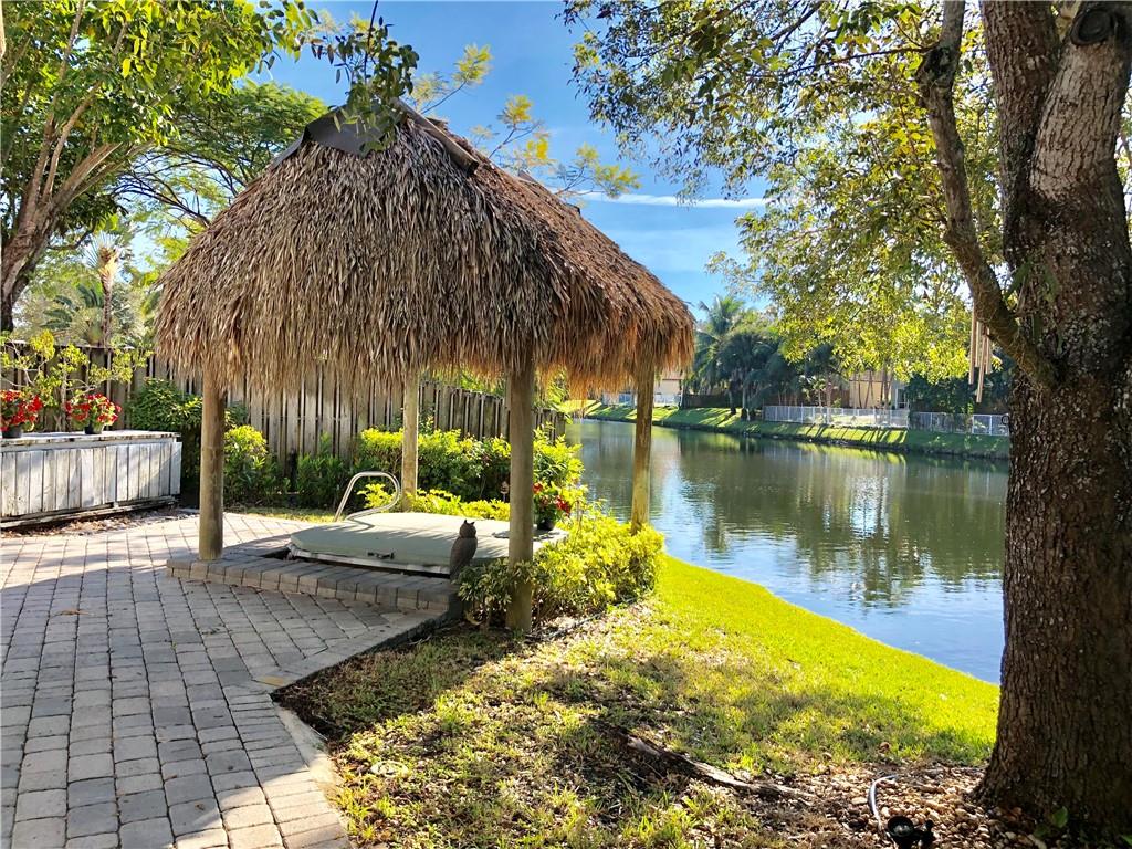 THIS MARVELOUS HOME IS LOCATED IN PRIVATE CUL-DE-SAC SURROUNDED BY TREES AND BACKING ONTO LOVELY LAKE. WINDING PATHWAY FROM DRIVEWAY LEADS TO LARGE PAVER PATIO, COMPLETE WITH TIKI HUT & CUSTOM IN-GROUND JACUZZI, JUST RIGHT FOR RELAXING AT END OF THE DAY. ENTER THE HOUSE & EXPERIENCE THE CALM & SERNITY OF COOL COLORS, & OPEN PLAN LIVING & DINING AREA. KITCHEN HAS BEEN UPDATED WITH GLEAMING CORIAN COUNTERTOPS & STAINLES STEEL APPLIANCES. MASTERBATH HAS BEEN UPDATED WITH FRAMELESS SHOWER AND DOUBLE SINKS. THERE IS A LARGE WALK-IN CLOSET AND WALK-OUT TO PATIO AND LAKE. 2ND BATHROOM HAS ALSO BEEN REMODELED. ROOF (2006) AIR CONDITIONING (2014), NEW ELECTRICAL PANEL, PLUS ACCORDIAN SHUTTERS. COMMUNITY HAS POOL & IS LOCATED BESIDE GREAT NEIGHBORHOOD PARK. PLEASE USE FARBAR AS IS CONTRACT