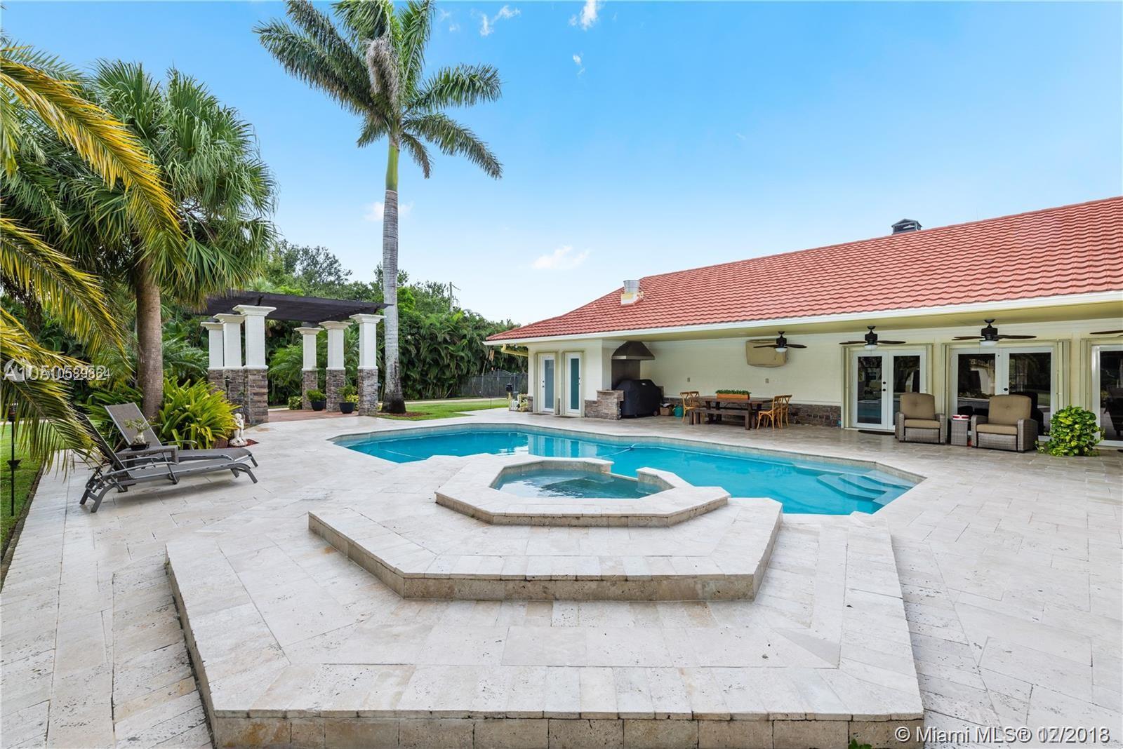 Inspired by the glorious chateaus of France, this one of a kind home is a sophisticated and luxurious retreat that reflects that magical merging of inspiration and architecture. From the moment you arrive, you will be enveloped by a sense of familial warmth. The living areas are appointed with neutral tile floors, volume ceilings, wood-like beams, a working fireplace, intricate woodwork, chandeliers with an updated eat-in chef's kitchen which overlooks the lanai, pool and grounds. A beautiful master suite with plenty of sitting room and large en-suite is sure to please. The property features an in-law/caretaker cottage in rear, an additional standalone guest suite with additional storage space and a modern car lover’s dream garage with wall to wall storage. *sq ft as per sellers appraisal