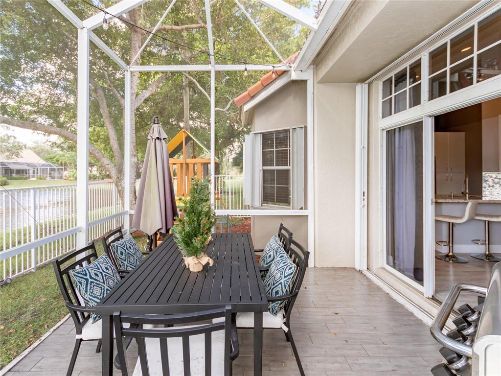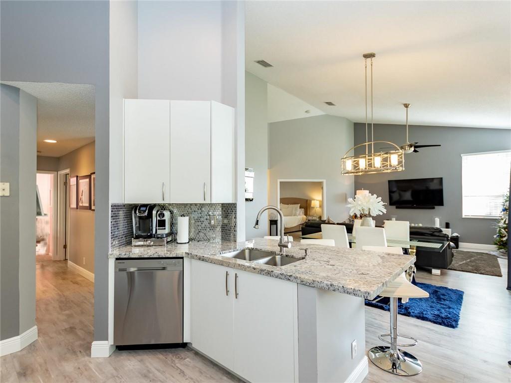 STUNNING AND TASTEFULLY UPGRADED THRU OUT. TILED ENTRY AND SERENE LANDSCAPING WELCOMES YOU TO THIS WARM AND INVITING HOME FEATURING CUSTOM KITCHEN, CUSTOM BATHROOMS FEATURES QUARTZ AND PORCELAIN FINISHES, WOOD LIKE FLOORING, VAULTED CEILINGS WITH DESIGNER LIGHTING. ENJOY BEAUTIFUL SUNSETS FROM YOUR SCREENED AND TILED PATIO WHICH SITS ON FENCED LAKEFRONT LOT. KITCHEN FEATURING GRANITE AND STAINLESS WITH CUSTOM CABINETRY. STONE THROW AWAY FROM COMMUNITY POOL AND PLAYGROUND, ACCORDIAN SHUTTERS AND MORE..A MUST SEE TO APPRECITATE!!! PLEASE NOTE..(ROOF IS ORIGINAL) OWNER RELOCATING AND WILL ENTERTAIN ALL OFFERS.