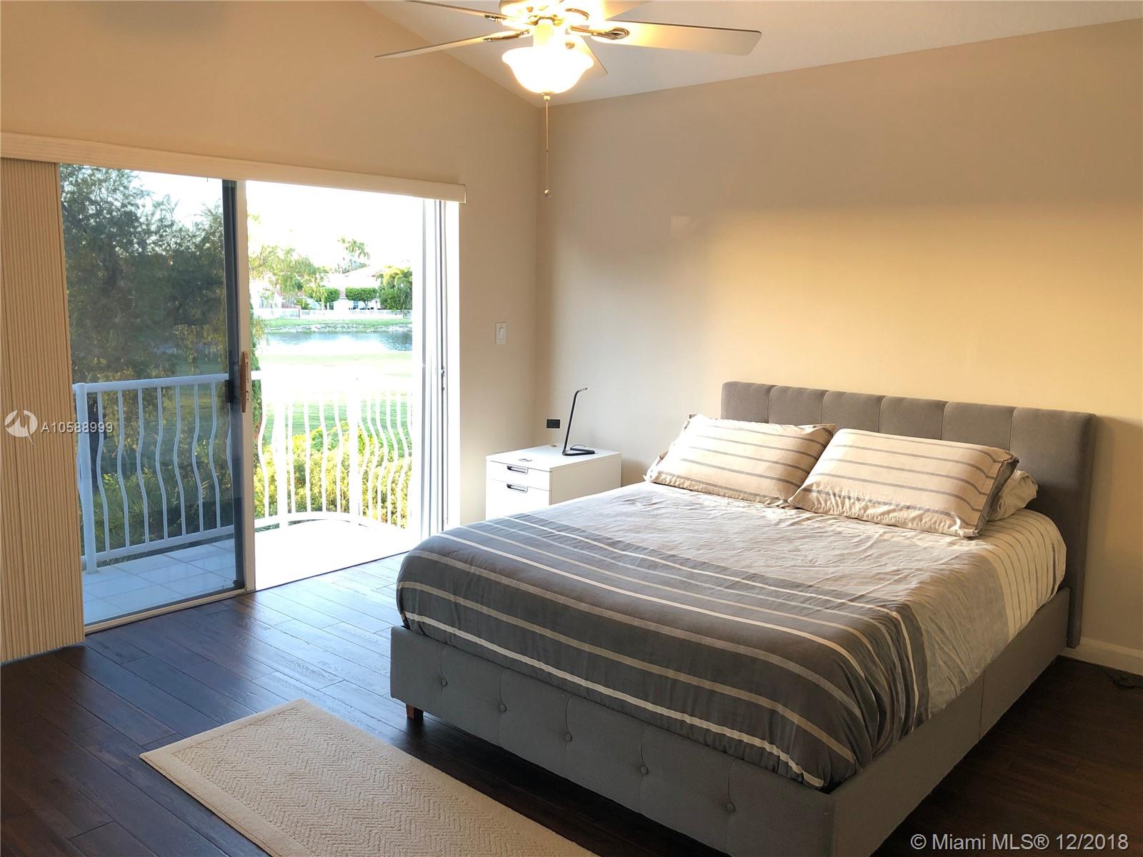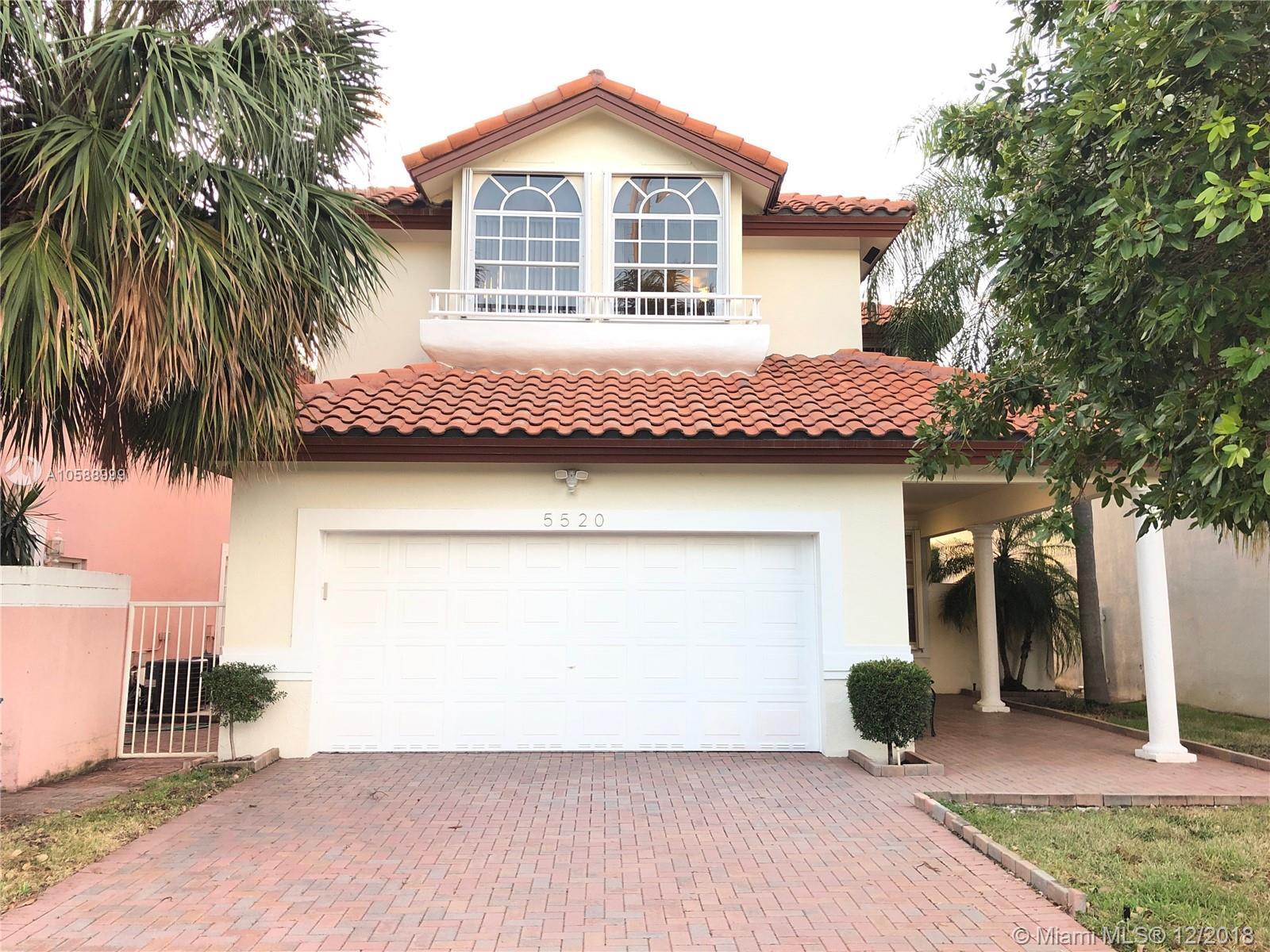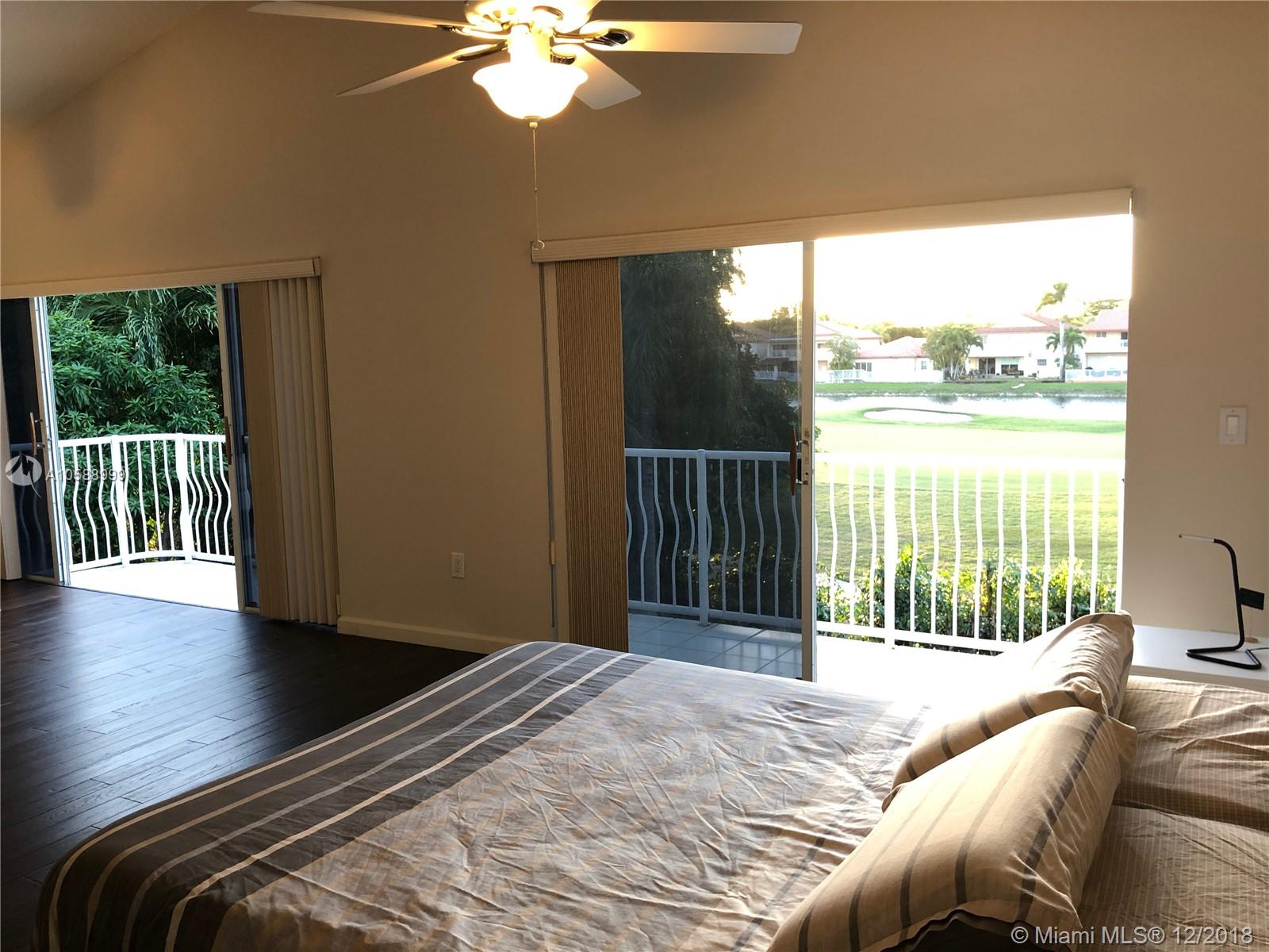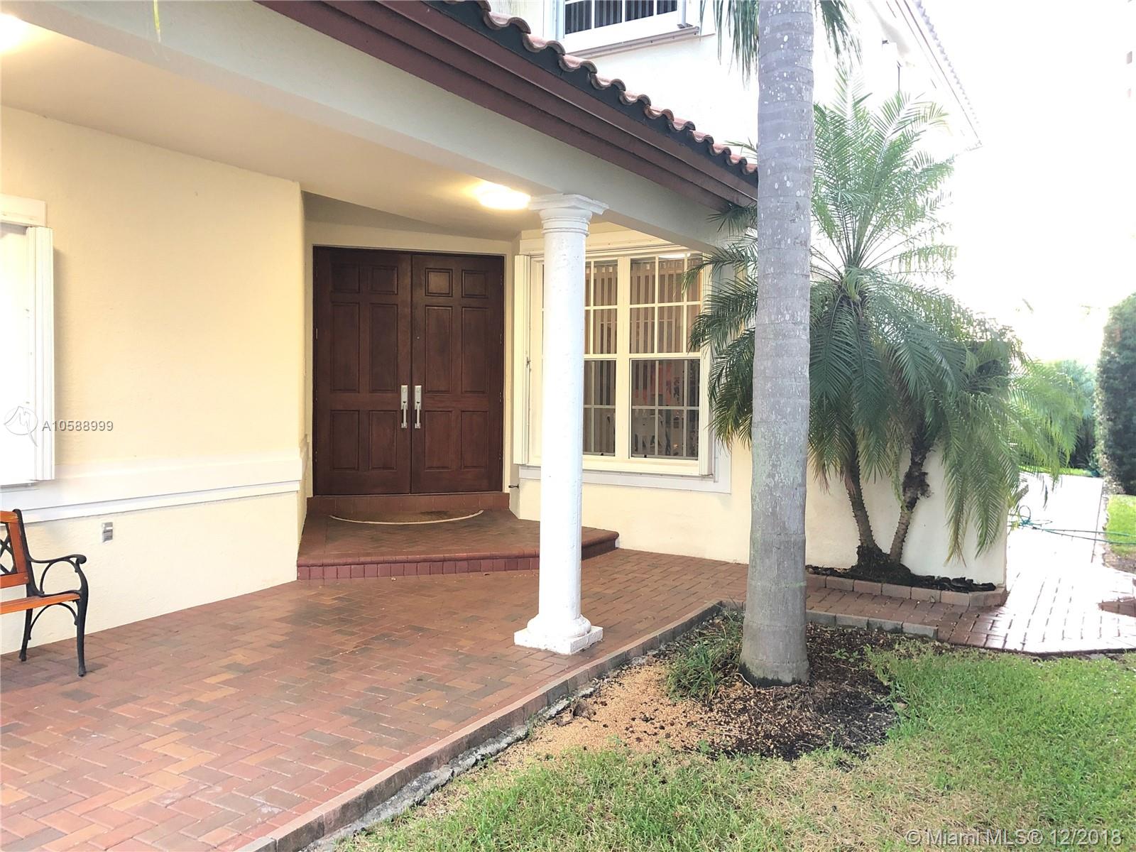 Beautiful single house in Doral Palm Estates. Quiet street with no neighbors in front and back of the property. Amazing view of Trump Golf Course and lake from the master bedroom balcony. Extra big master bedroom. Extra big driveway for parking spaces. Custom hurricane shutters already installed in windows and doors. Wide and comfortable entrance-way. Very well maintained house. A+ schools and public park are located within walking distance from the property. Close to major highways. Private Security 24/7. Association fee $238.95 monthly and Doral Park Country Club Association $94.50 monthly. Client motivated.