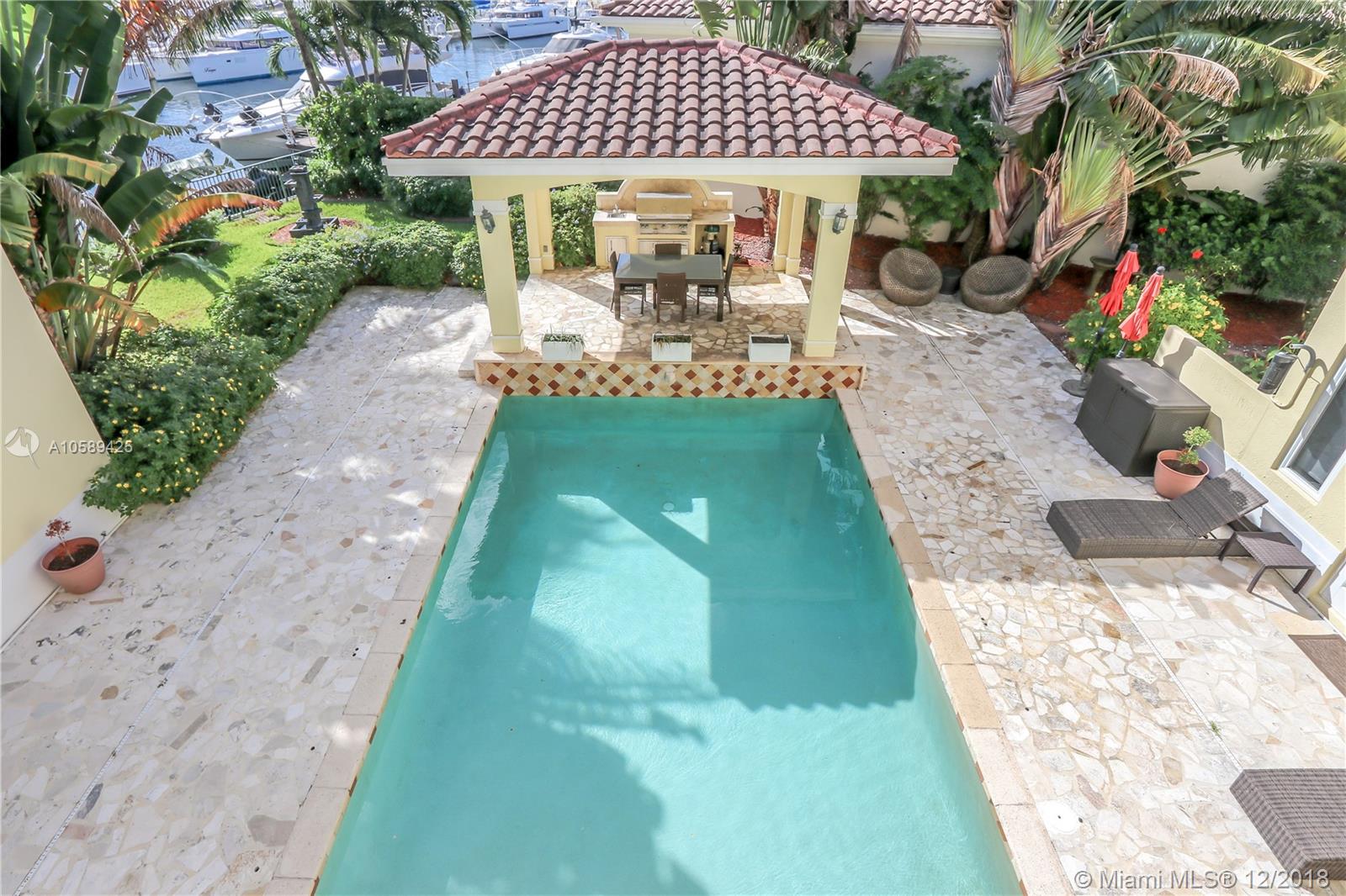 Incredible Mediterranean style home located in the gated Hollywood Harbor Islands with stunning views and ocean access. This beautiful home features a chef’s kitchen, butlers pantry living and formal dining room, and a family room overlooking the marina and courtyard that includes a pool and bbq area. The spacious master bedroom with luxurious en-suite bathroom and walk in closet also has views into the marina. This home also includes an office, den, 2 additional bedrooms with en-suite bathrooms, and pool house with an en-suite bathroom as well. This home also includes a large driveway, 2 car garage, a dock for boats and jet skis, and tropical landscaping. The community features a mommy and me park, clubhouse, gym, and walking path. Live everyday like it’s a vacation in this home.