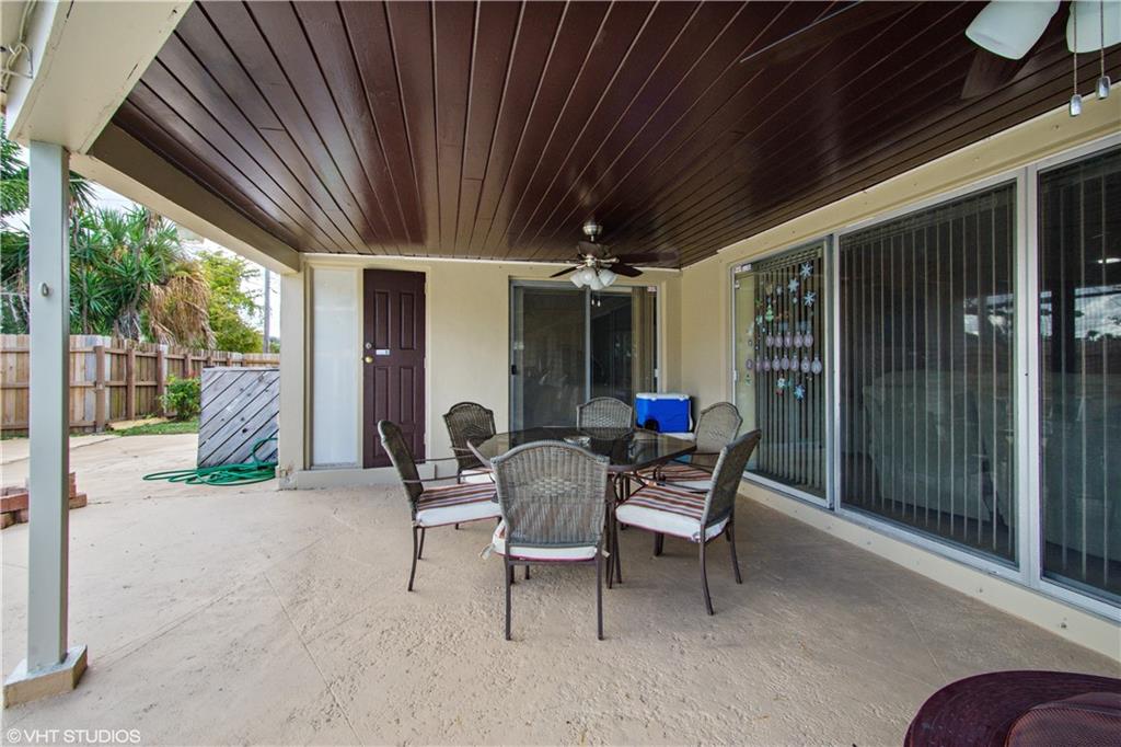 Lovely 3/2 pool home on oversized corner lot with circular drive. You'll love the open plan dining room & living areas with sliders providing access & views to the rear yard & pool. Just off the dining room is a separate den/family room. The kitchen has wood cabinets, white appliances and room for a table & chairs. With sliders to the pool area the private master bedroom has it's own en-suite shower room. On the opposite side of the house are two further spacious guest bedrooms & guest bathroom. Convenient hall cupboards & laundry room with washer-dryer hookups, laundry sink & room for extra storage. Outside is a huge covered porch perfect for entertaining & enjoying the free form pool or bring your games to play in the fenced yard. Roof is 8 years old.