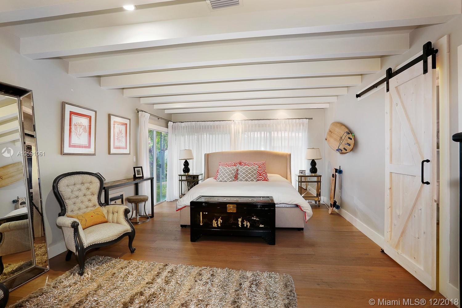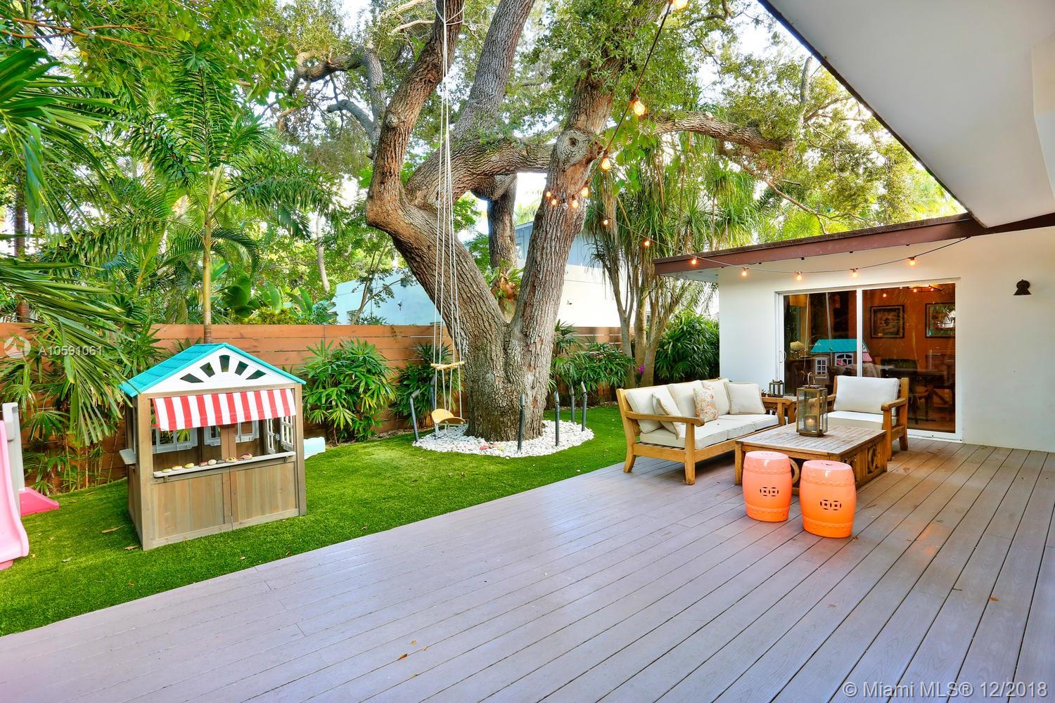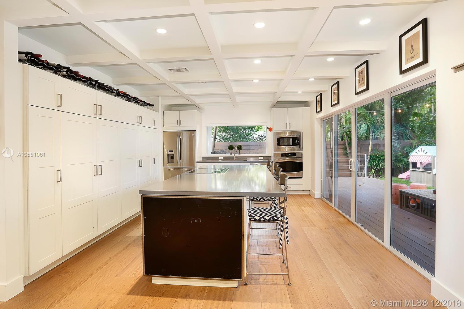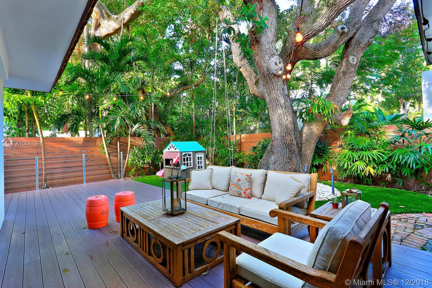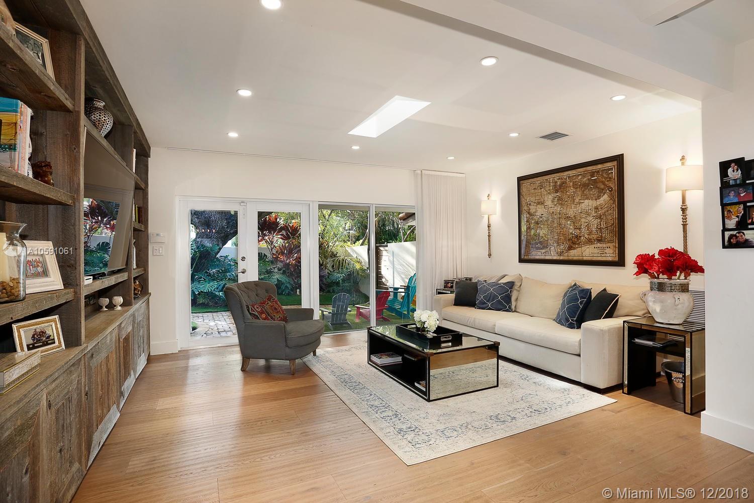 Stunning & ultra-private, walled North Grove home. Total designer renovation completed in 2013 w/ top-of-the-line fixtures & finishes throughout. Light-filled living spaces feature wood floors, custom millwork/ built-ins and walls of glass overlooking the lush garden that surrounds the home. Open kitchen w/classic white wood cabinetry, stainless appliances, quartz countertops, large island w/seating & adjacent breakfast area. The expansive master suite features a sitting area, 7’x14’ walk-in closet & sleek euro-style bath. Enjoy outdoor living & entertaining on the oak canopied wood deck. Located at one of the highest elevations in Miami (not in a flood zone), yet close to the Grove village center’s boutiques, cafes and bayfront parks & marinas. Minutes to downtown, MIA & the Beaches.