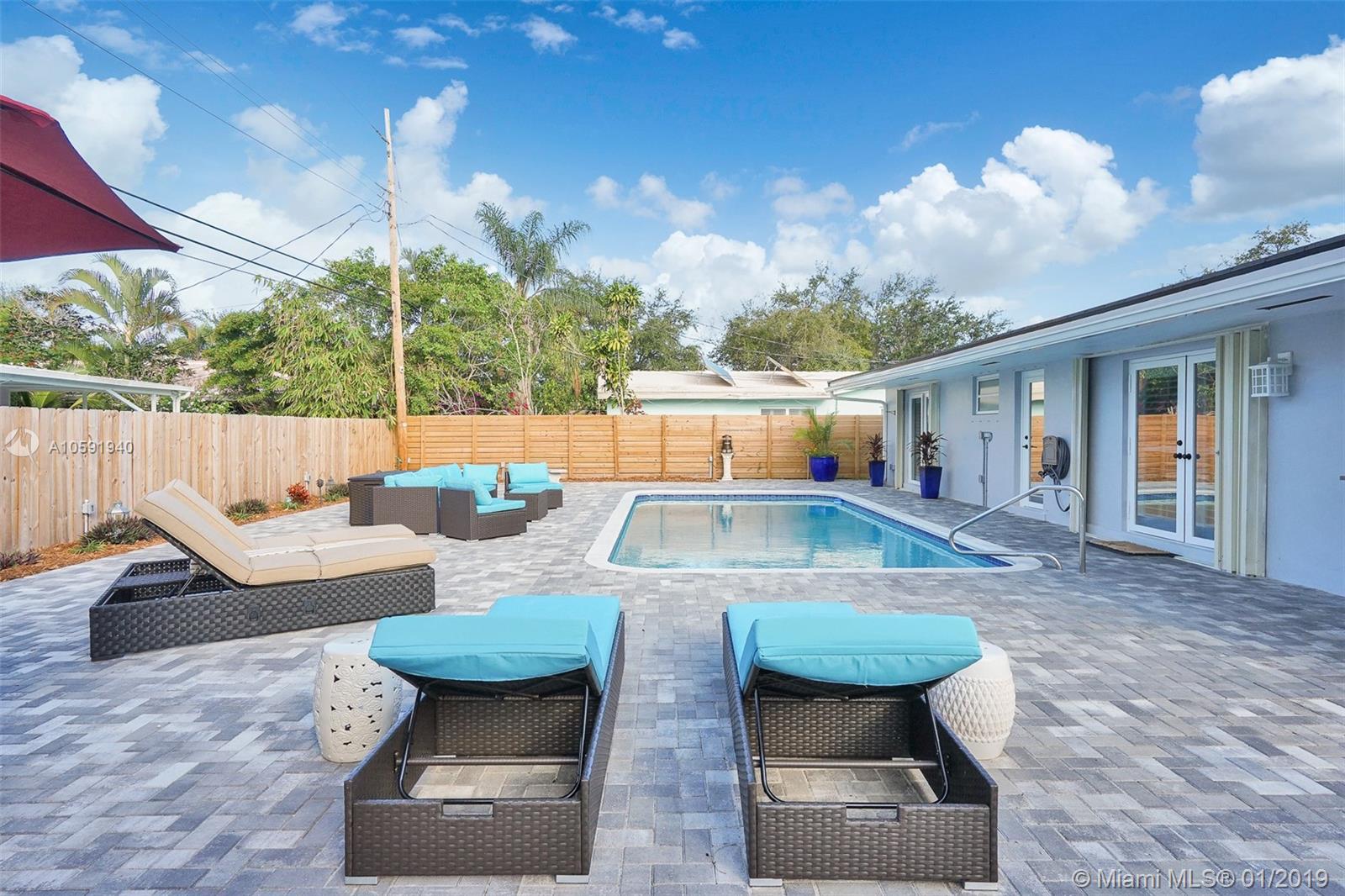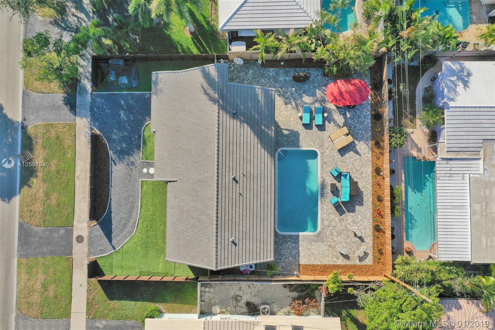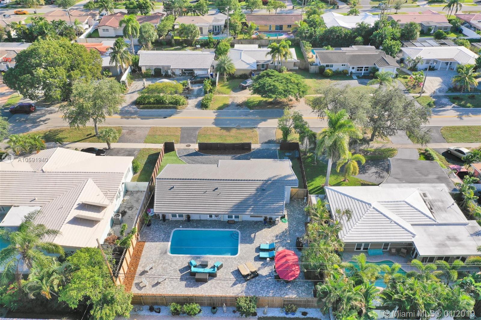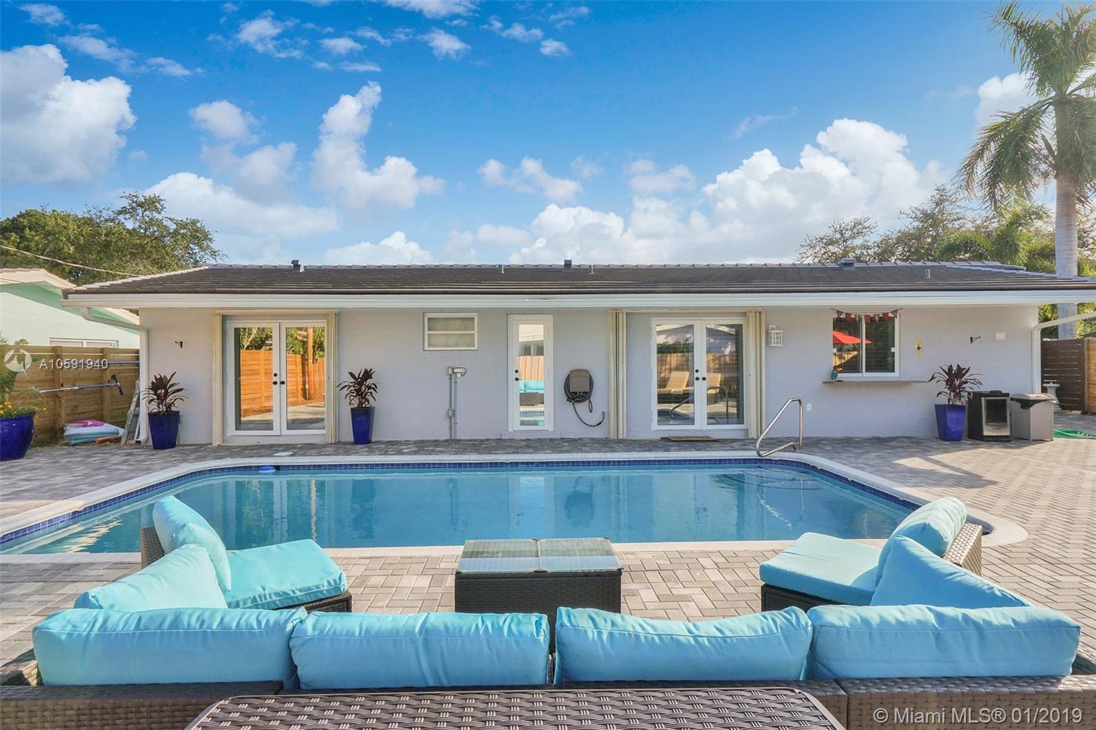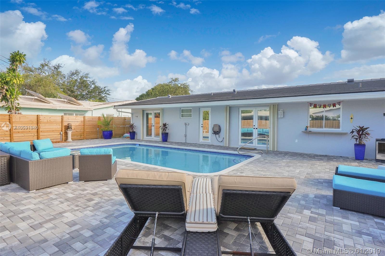 Beautifully renovated 3 Bedroom/2 Bathroom Pool Home located in desirable Imperial Point. This home boasts upgraded finishes, quartz countertops, stainless steel appliances, custom wood cabinets and porcelain tile throughout. This open concept home is perfect for entertaining family and friends. Relax outside by the pool and enjoy meals poolside on the oversized patio in the backyard. Brand new roof, plantation shutters, Ring integrated security system and window tinting treatment. Walking distance to shops and restaurants. Come check out this amazing property!
