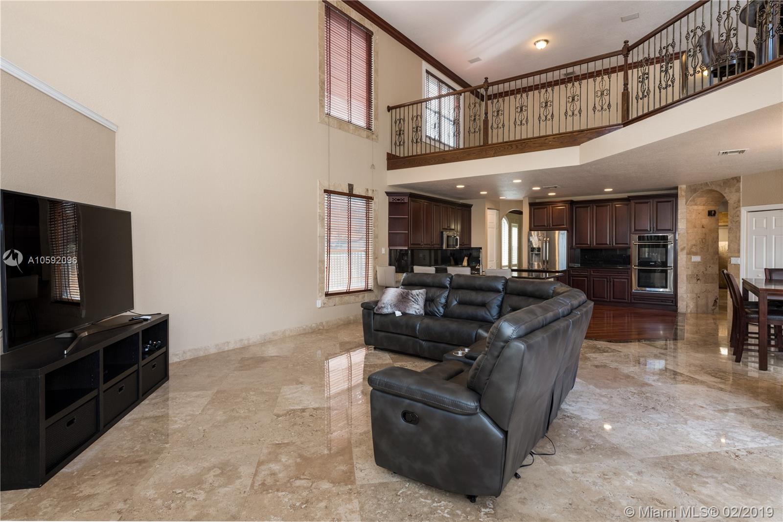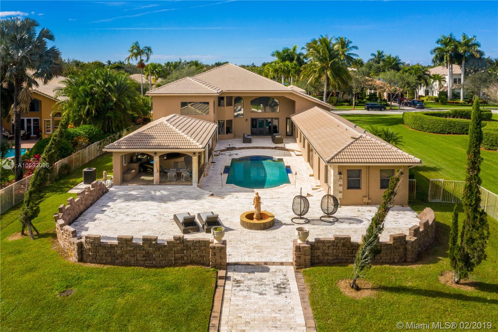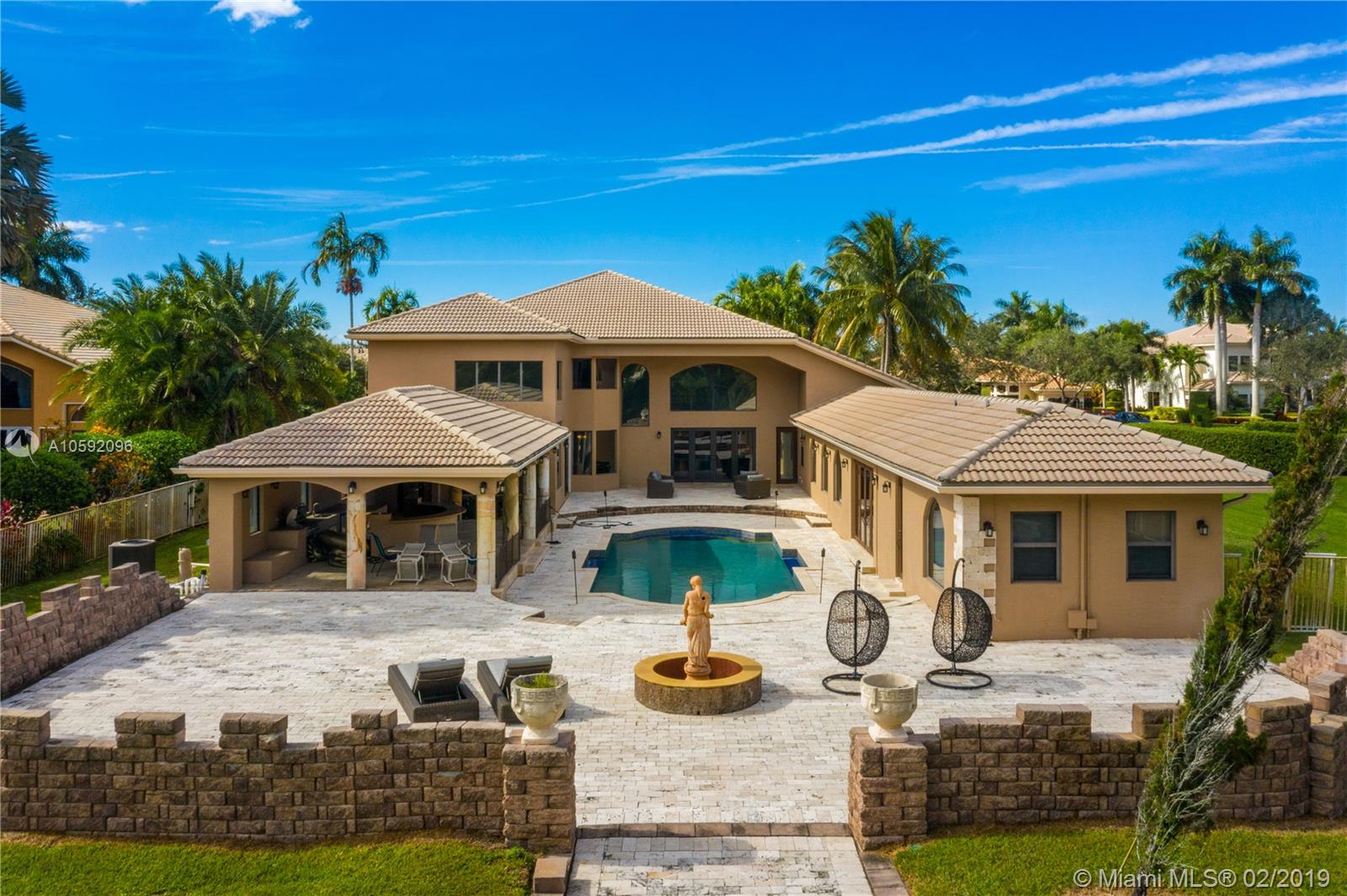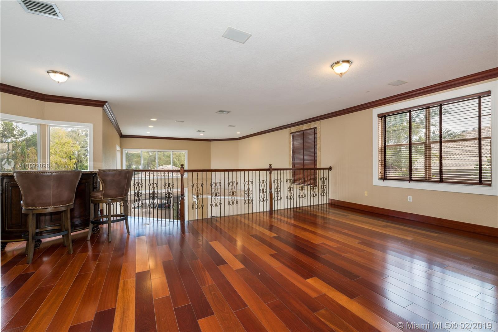 Spectacular Renoir model with 6 beds, 5.5 bath. This home has been customized with an extra wing with an in-law's suite, gym, sauna, hot tub and covered terrace with BBQ/summer kitchen. This home has all the bells and whistles; marble and cherry wood floors, european kitchen with stainless steel appliances and granite counter tops, huge loft upstairs, 3-car garage, community tennis/basketball courts adjacent to home, new airs (2018) and new pool heater. Most east facing windows and doors are hurricane impact glass. A-rated school district, 24 hour security and so much more!!