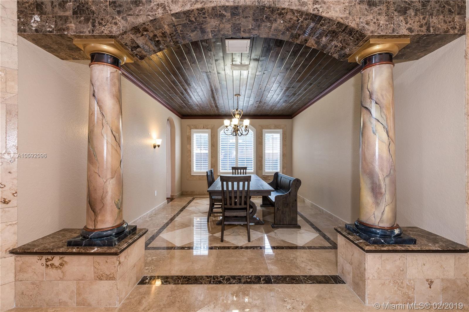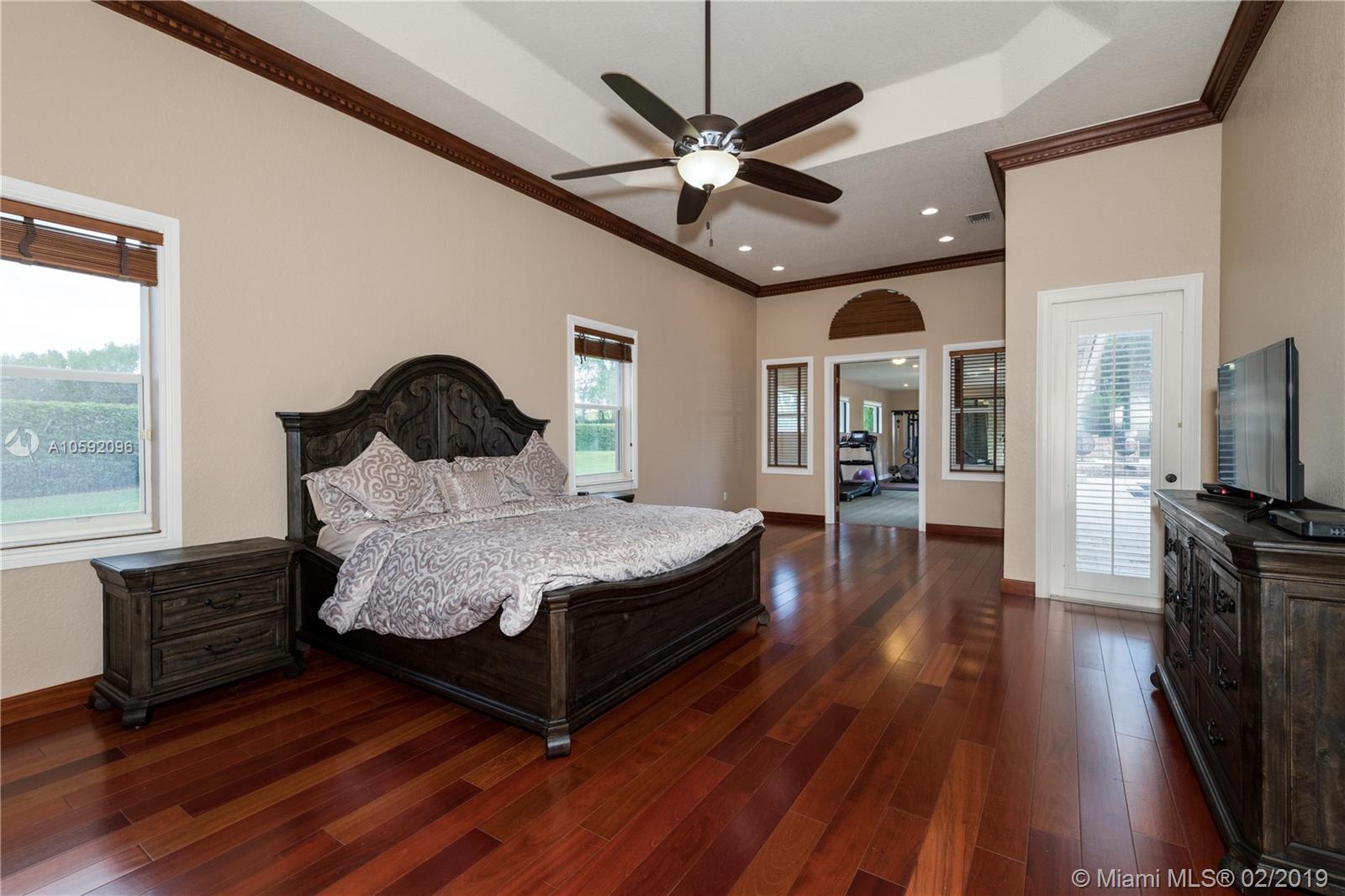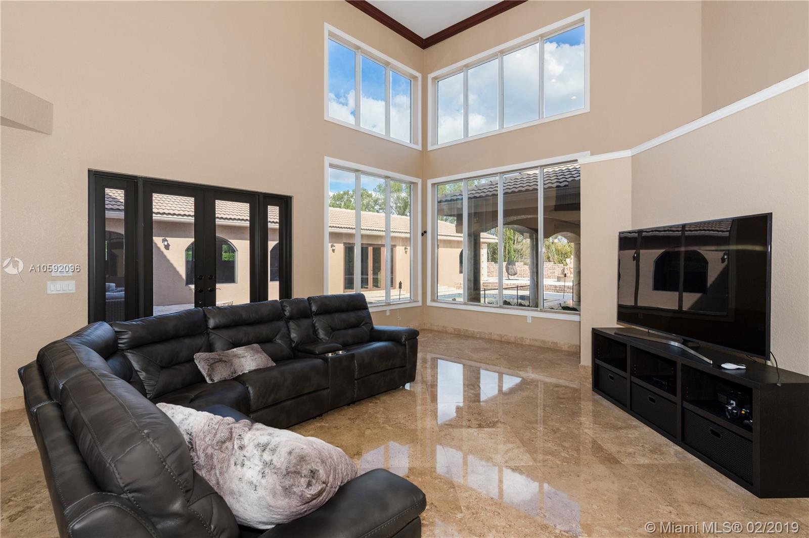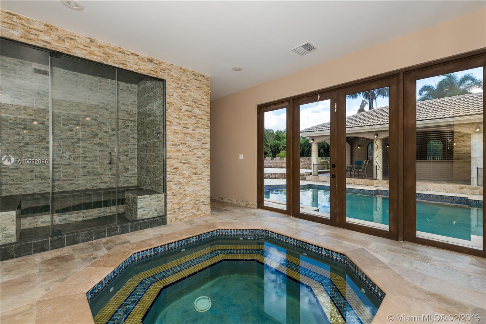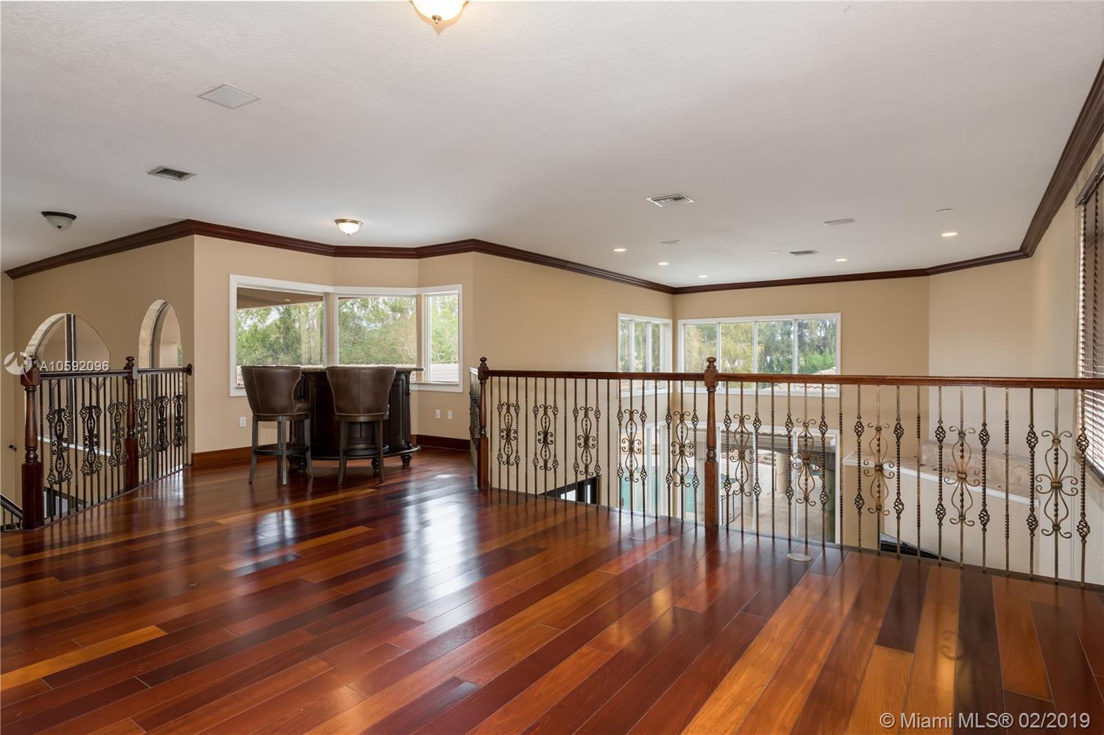 Spectacular Renoir model with 6 beds, 5.5 bath. This home has been customized with an extra wing with an in-law's suite, gym, sauna, hot tub and covered terrace with BBQ/summer kitchen. This home has all the bells and whistles; marble and cherry wood floors, european kitchen with stainless steel appliances and granite counter tops, huge loft upstairs, 3-car garage, community tennis/basketball courts adjacent to home, new airs (2018) and new pool heater. Most east facing windows and doors are hurricane impact glass. A-rated school district, 24 hour security and so much more!!