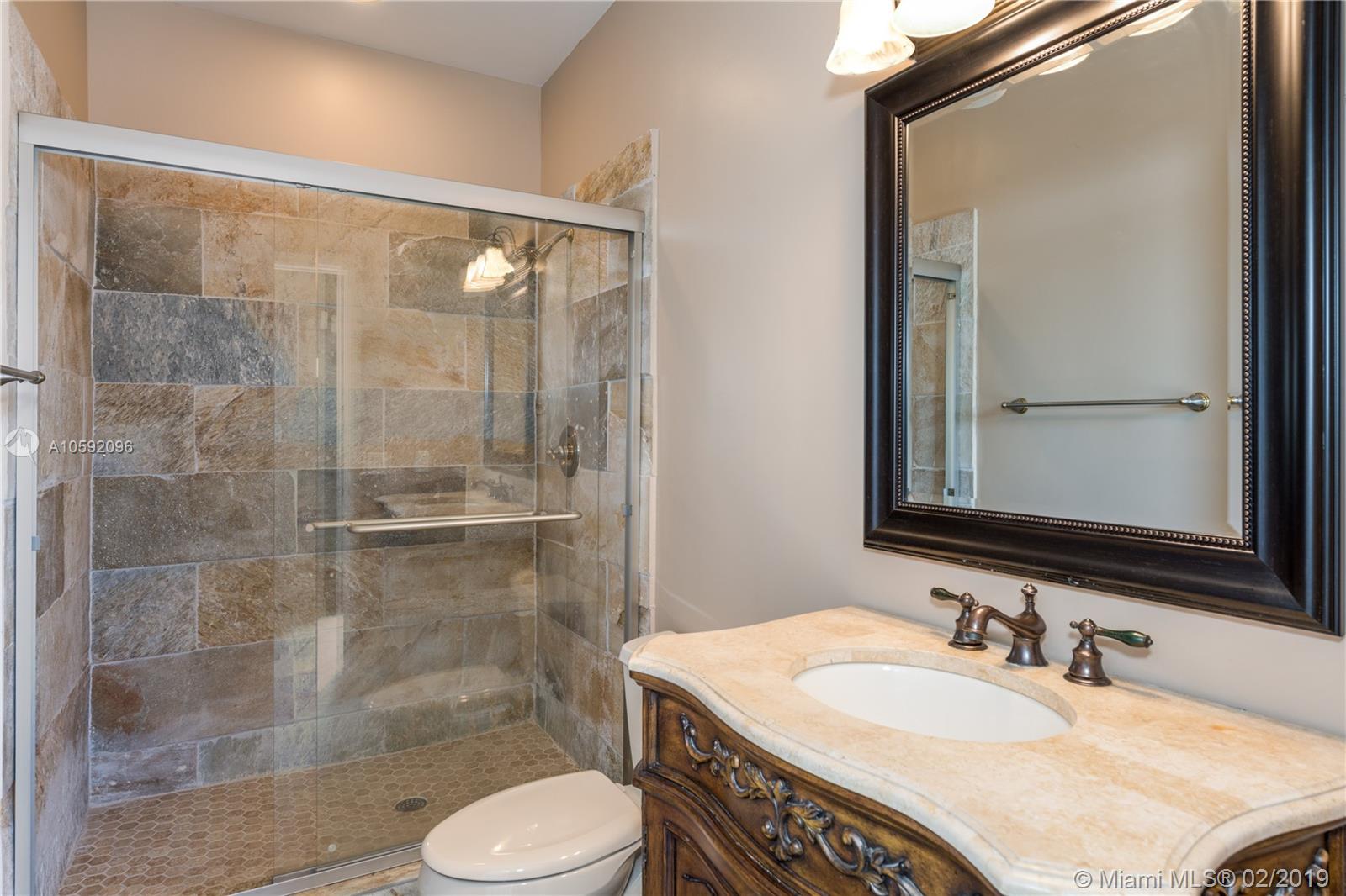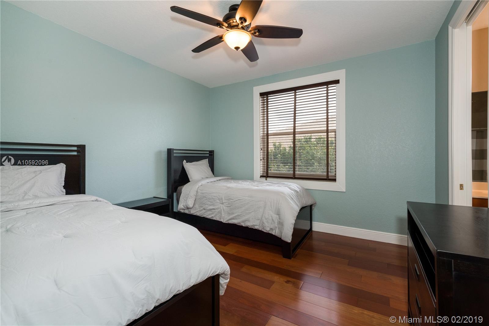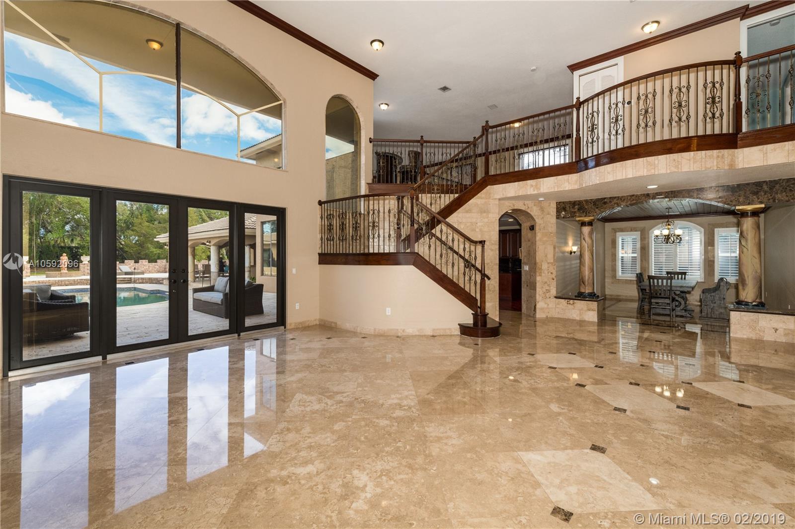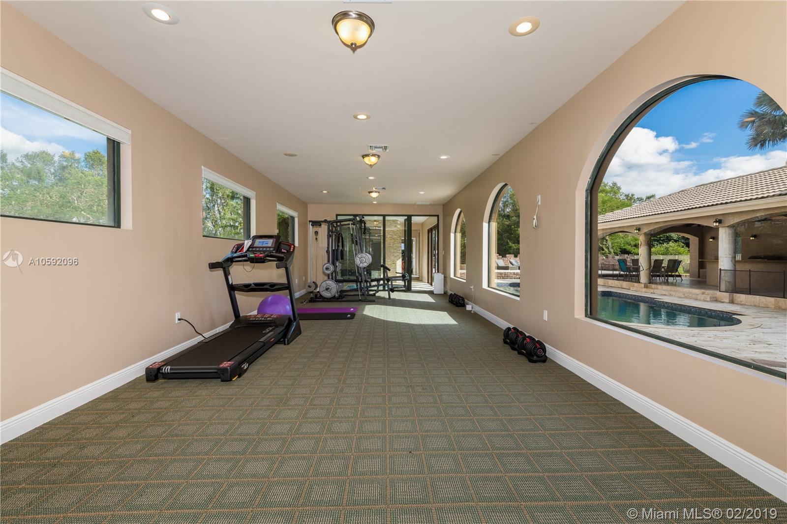 Spectacular Renoir model with 6 beds, 5.5 bath. This home has been customized with an extra wing with an in-law's suite, gym, sauna, hot tub and covered terrace with BBQ/summer kitchen. This home has all the bells and whistles; marble and cherry wood floors, european kitchen with stainless steel appliances and granite counter tops, huge loft upstairs, 3-car garage, community tennis/basketball courts adjacent to home, new airs (2018) and new pool heater. Most east facing windows and doors are hurricane impact glass. A-rated school district, 24 hour security and so much more!!