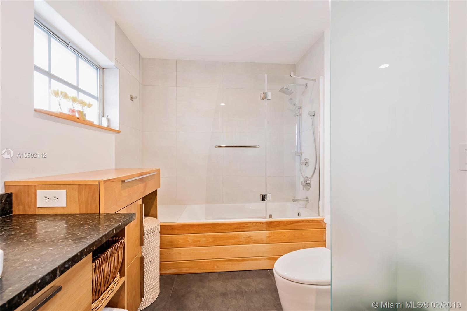 Gorgeous beach home nestled in Boca's most sought after neighborhood. This luxurious home features high end finishes throughout w/ wide plank hardwood floors, Calacatta marble island, Miele appliances, glass door Sub Zero fridge & Jenn-Air induction cooktop. 16 ft floor to ceiling window in the living room gives this unit all the light it needs. Features include custom walk in closets, accordion hurricane shutters throughout, motorized window treatments, 2 large patios, tankless water heater, subway tile, custom bar w/ sub zero wine cooler & a magnificent 16ft high marble stone wall with built in electric fireplace. Beautiful community pool w/ BBQ area & spacious clubhouse. This perfect beach home has all the bells & whistles already included. Do not miss this great opportunity!